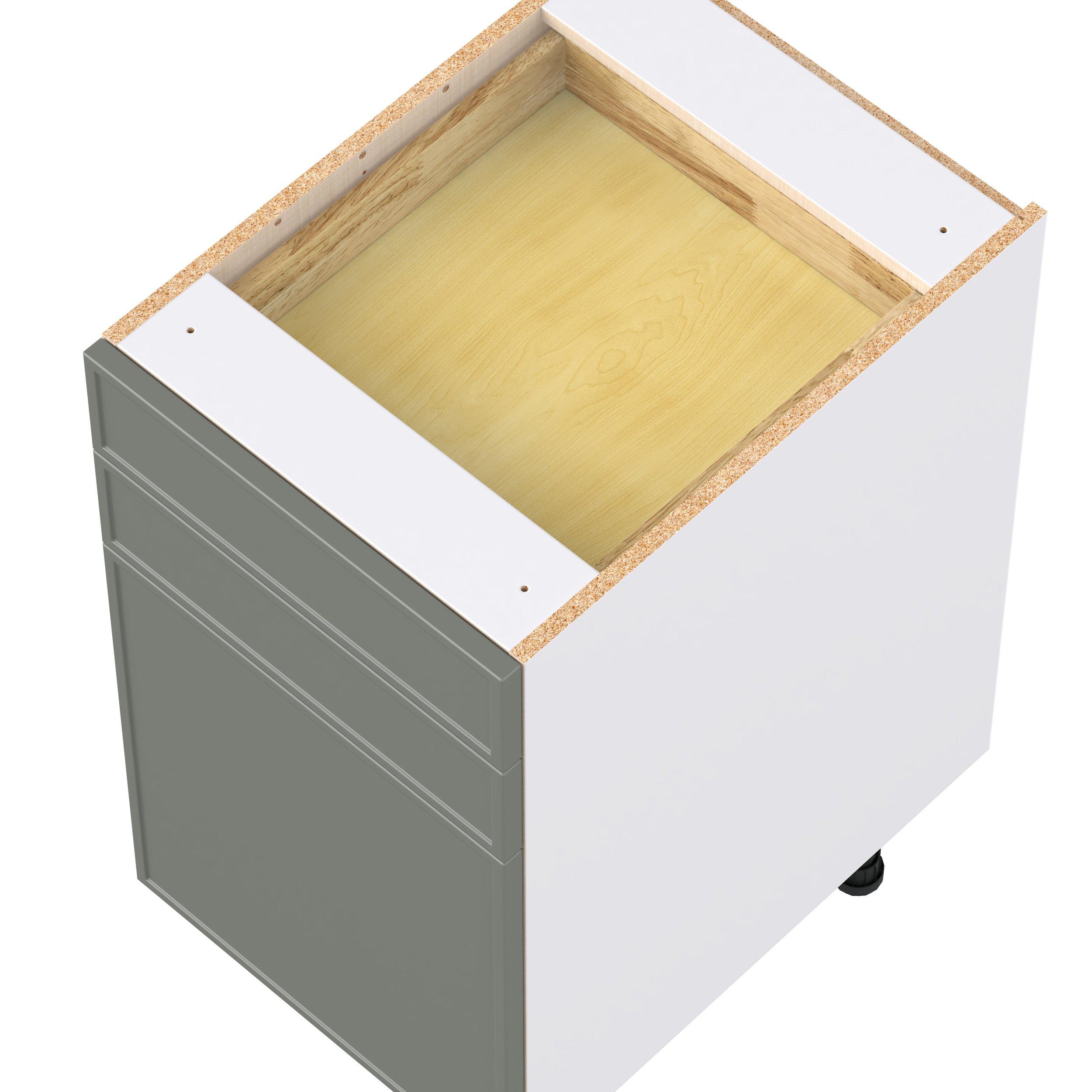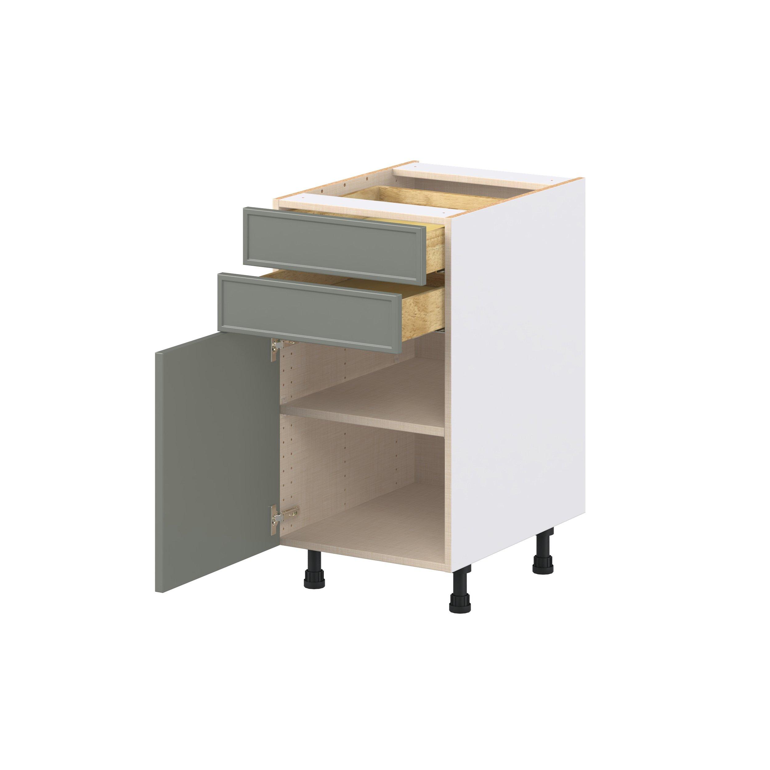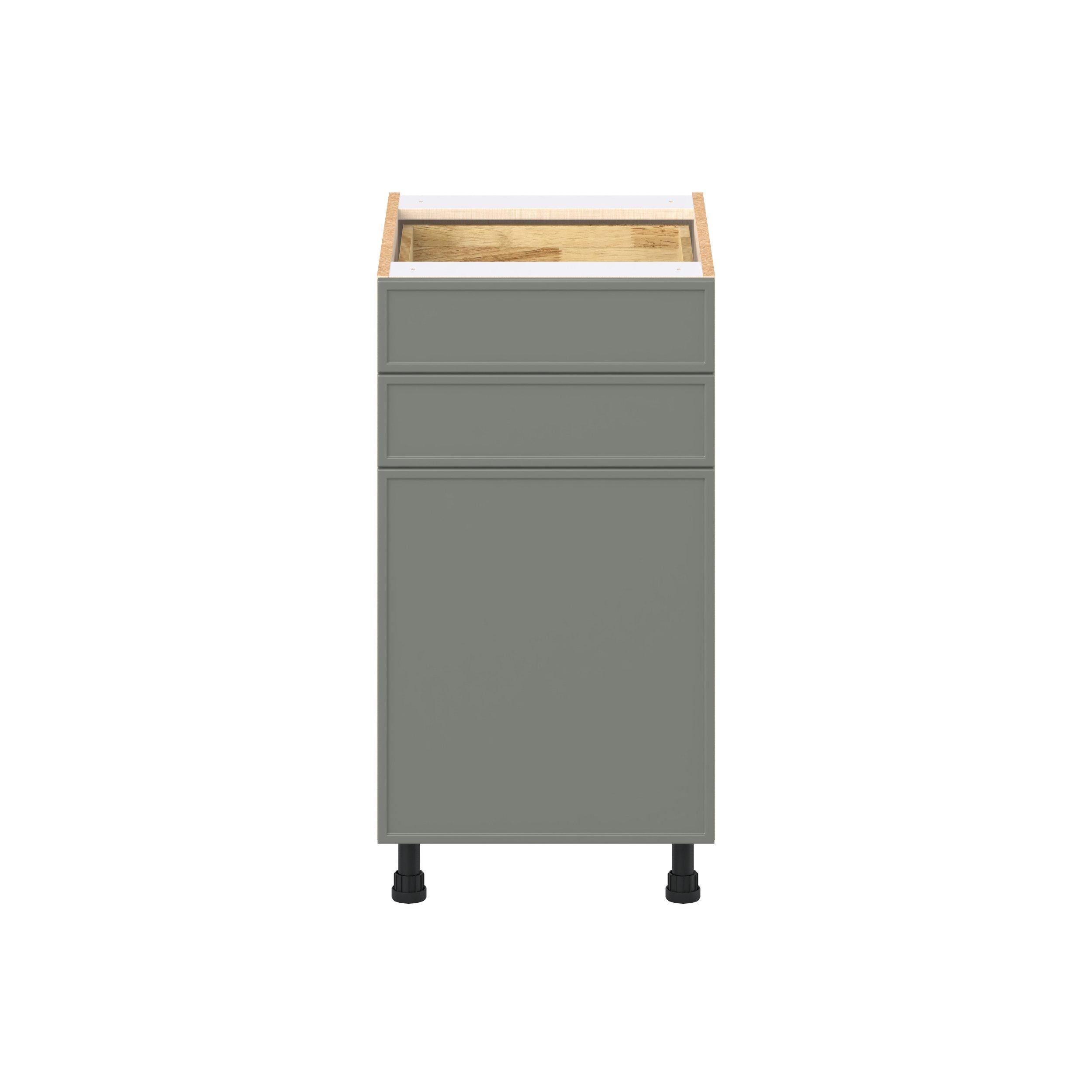 Enjoy a modern twist on a classic with Linden slim shaker cabinets. Available in premium-painted fresh washed linen and earthy moss green finishes, this collection exudes warmth and creates an inviting atmosphere Crafted from one-piece MDF Studio Design Collection Linden 18 in. Painted Moss Green Door and Drawer Base Cabinet is designed to resist hairline cracks while the easy-to-clean finish stands up to stains and moisture. Featuring 5-piece doors and dovetail drawer joints, these cabinets offer durability and elegance. This collection combines style with everyday storage solutions.