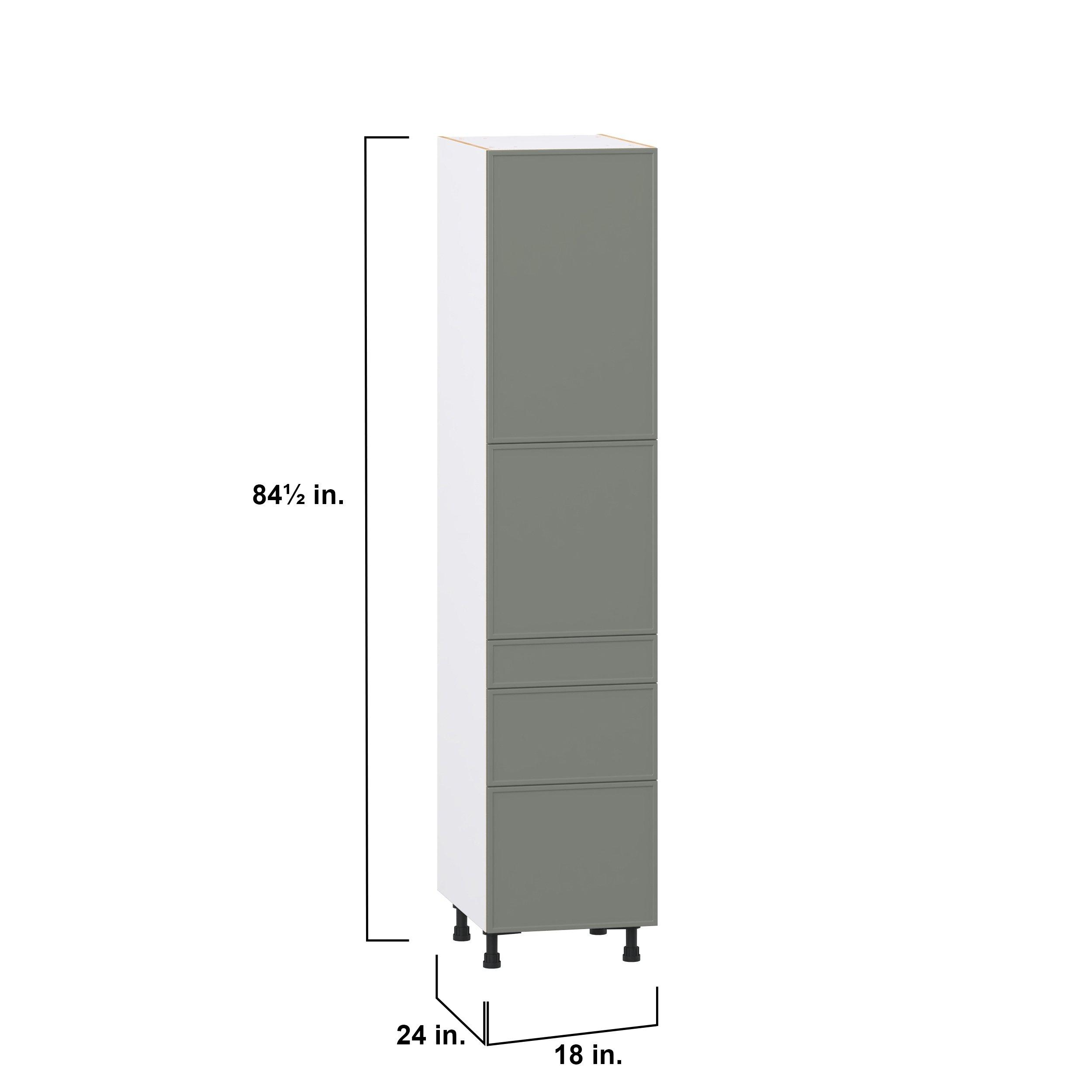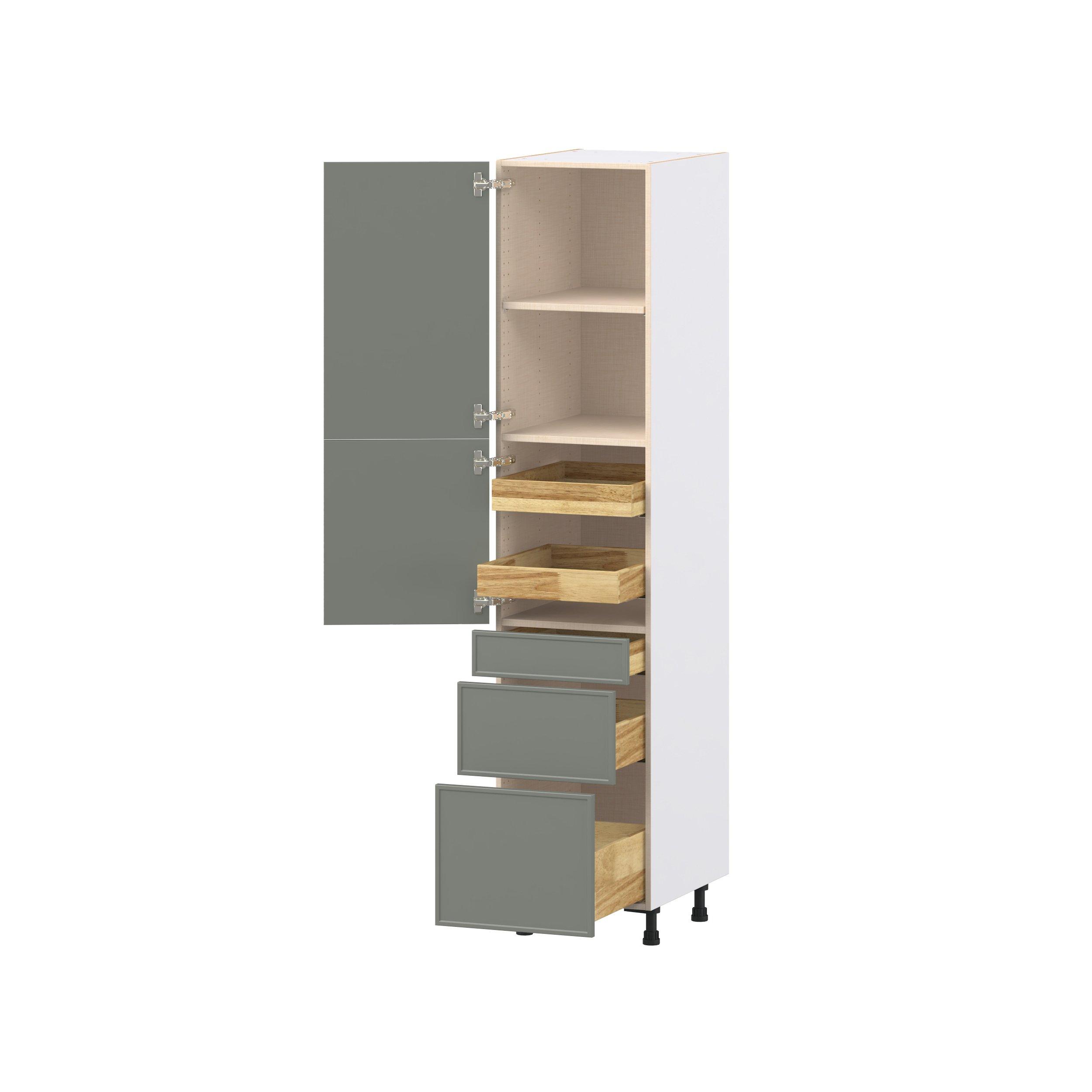 Enjoy a modern twist on a classic with Linden slim shaker cabinets. Available in premium-painted fresh washed linen and earthy moss green finishes, this collection exudes warmth and creates an inviting atmosphere Crafted from one-piece MDF Studio Design Collection Linden 18 in. Painted Moss Green Door and Drawer Pantry Cabinet with Inner Pull-Out is designed to resist hairline cracks while the easy-to-clean finish stands up to stains and moisture. Featuring 5-piece doors and dovetail drawer joints, these cabinets offer durability and elegance. This collection combines style with everyday storage solutions.