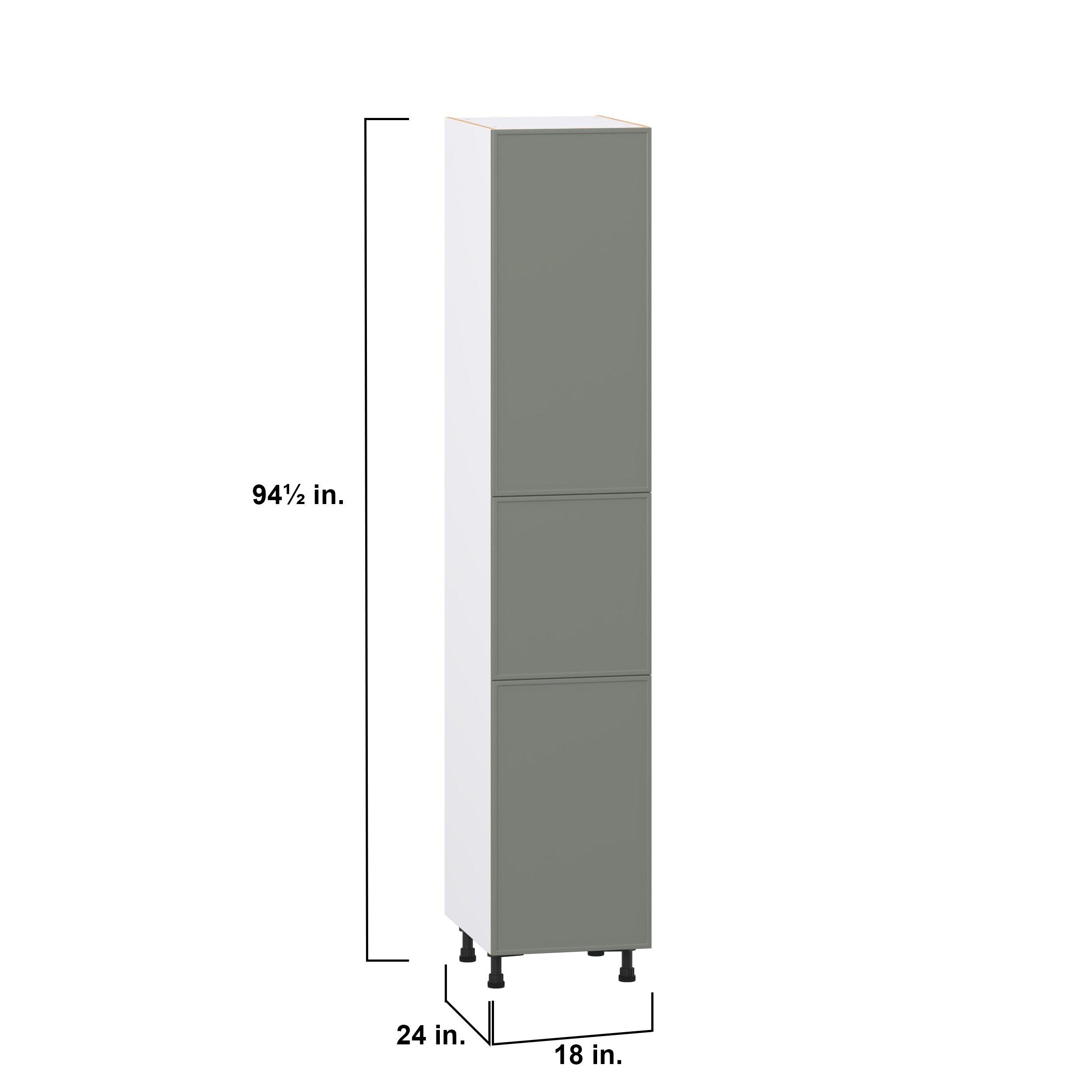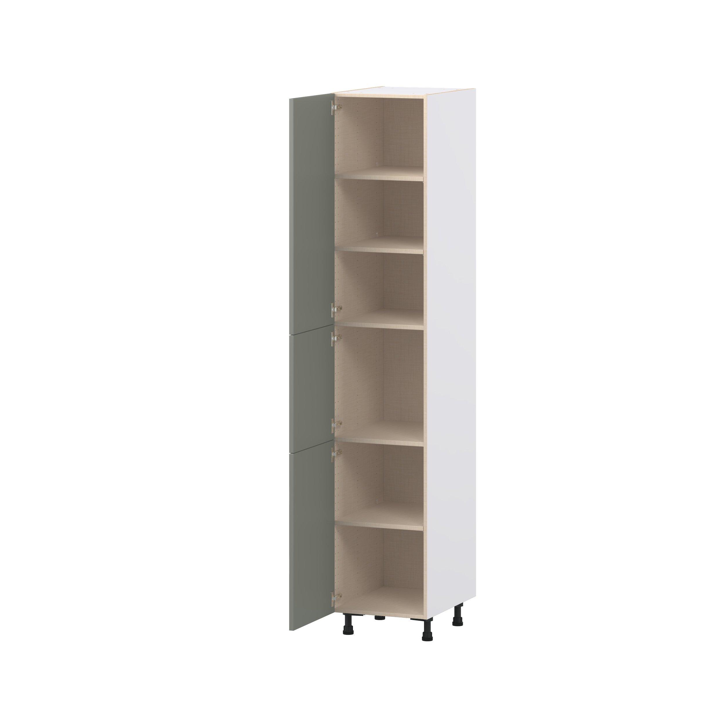 Enjoy a modern twist on a classic with Linden slim shaker cabinets. Available in premium-painted fresh washed linen and earthy moss green finishes, this collection exudes warmth and creates an inviting atmosphere Crafted from one-piece MDF Studio Design Collection Linden 18 in. Painted Moss Green Door Pantry Cabinet is designed to resist hairline cracks while the easy-to-clean finish stands up to stains and moisture. Featuring 5-piece doors and dovetail drawer joints, these cabinets offer durability and elegance. This collection combines style with everyday storage solutions.