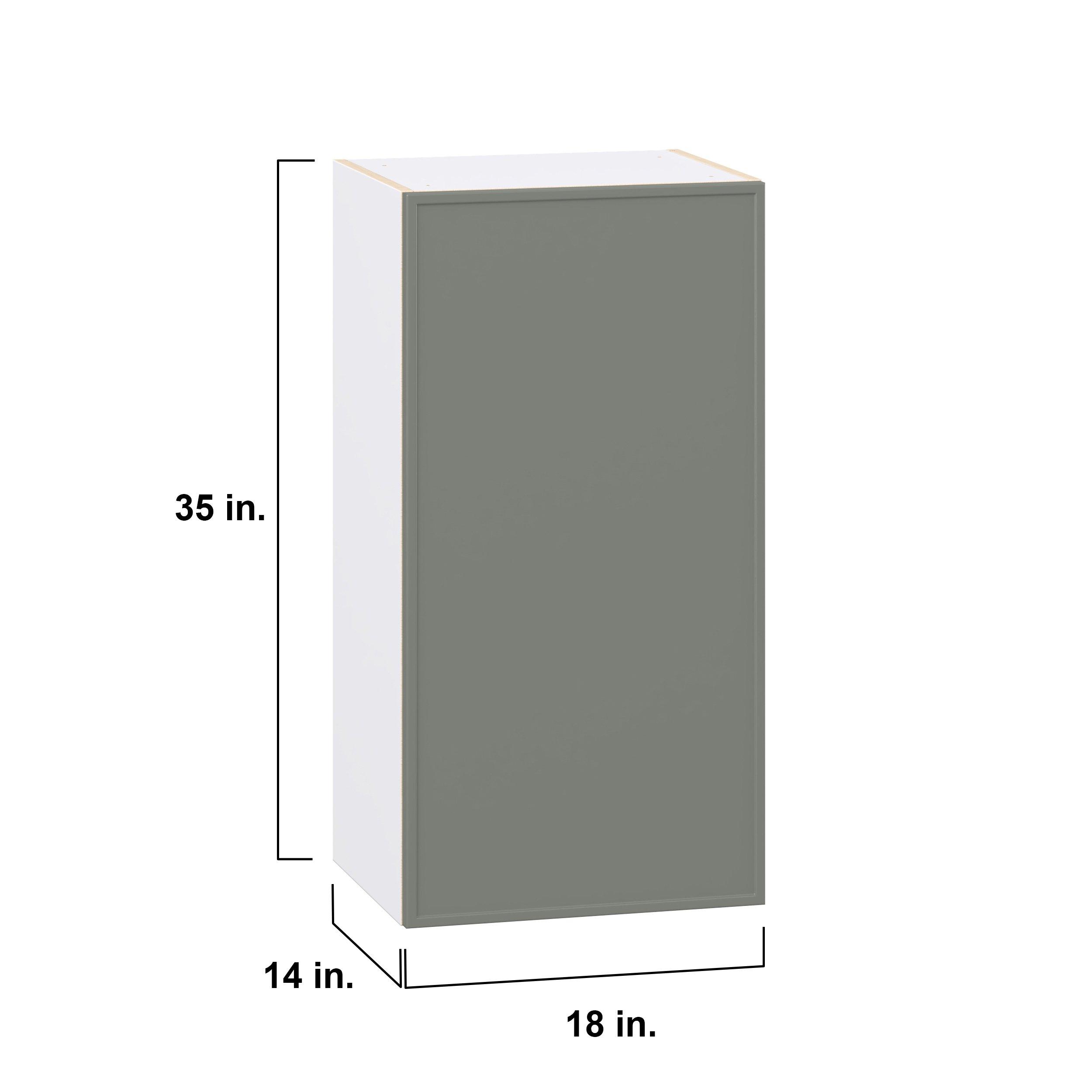 Enjoy a modern twist on a classic with Linden slim shaker cabinets. Available in premium-painted fresh washed linen and earthy moss green finishes, this collection exudes warmth and creates an inviting atmosphere Crafted from one-piece MDF Studio Design Collection Linden 18 in. Painted Moss Green Door Wall Cabinet is designed to resist hairline cracks while the easy-to-clean finish stands up to stains and moisture. Featuring 5-piece doors and dovetail drawer joints, these cabinets offer durability and elegance. This collection combines style with everyday storage solutions.
