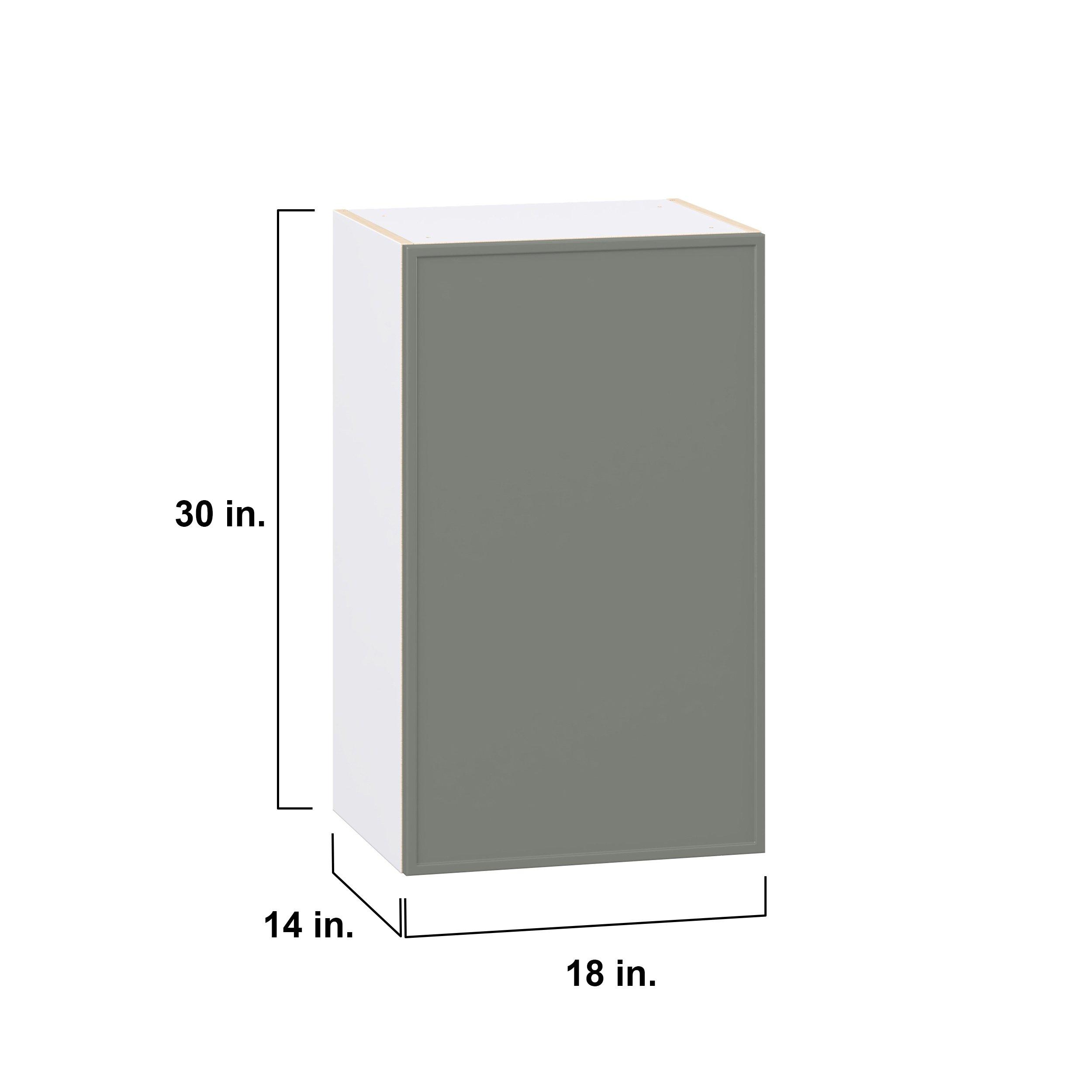 Enjoy a modern twist on a classic with Linden slim shaker cabinets. Available in premium-painted fresh washed linen and earthy moss green finishes, this collection exudes warmth and creates an inviting atmosphere Crafted from one-piece MDF Studio Design Collection Linden 18 in. Painted Moss Green Door Wall Cabinet is designed to resist hairline cracks while the easy-to-clean finish stands up to stains and moisture. Featuring 5-piece doors and dovetail drawer joints, these cabinets offer durability and elegance. This collection combines style with everyday storage solutions.