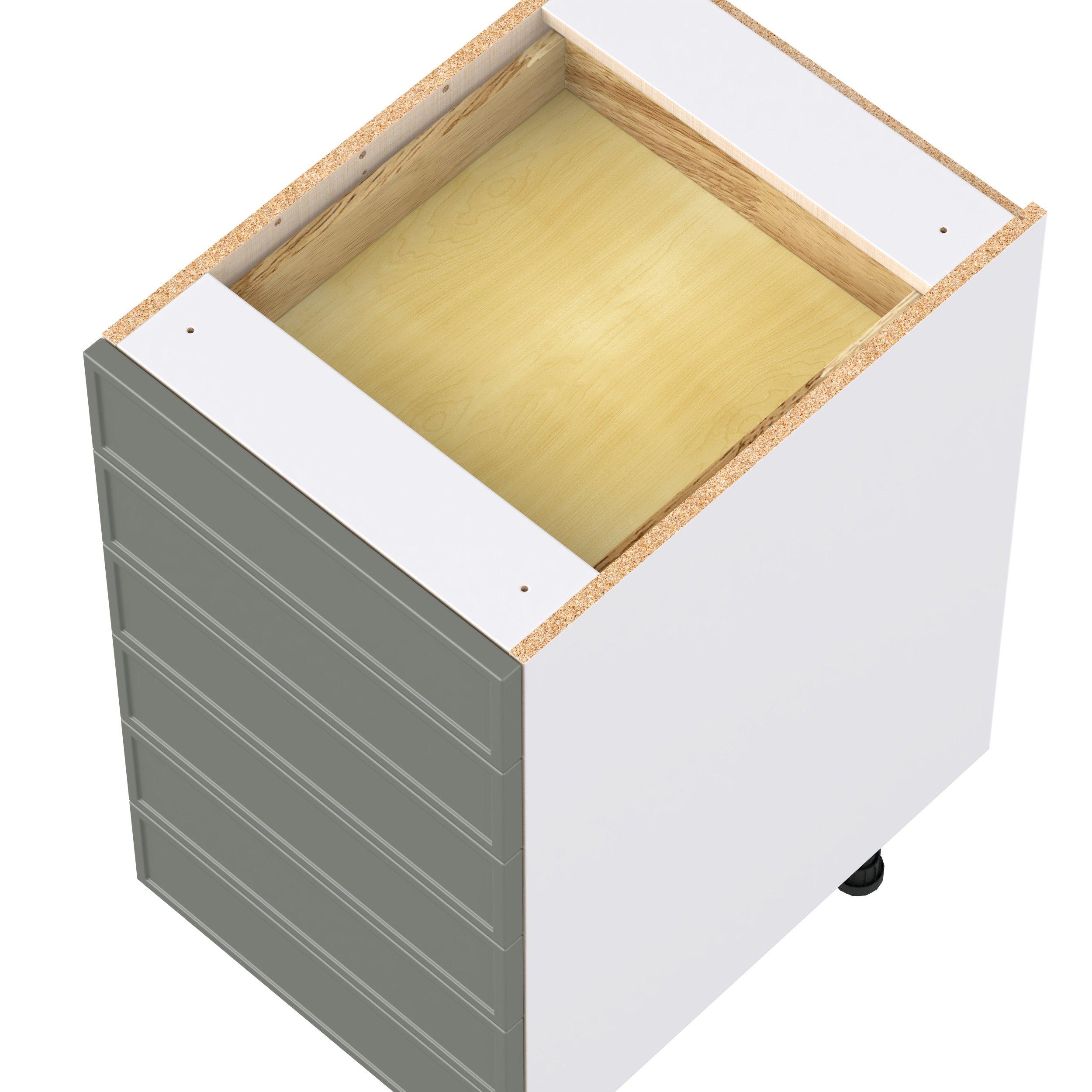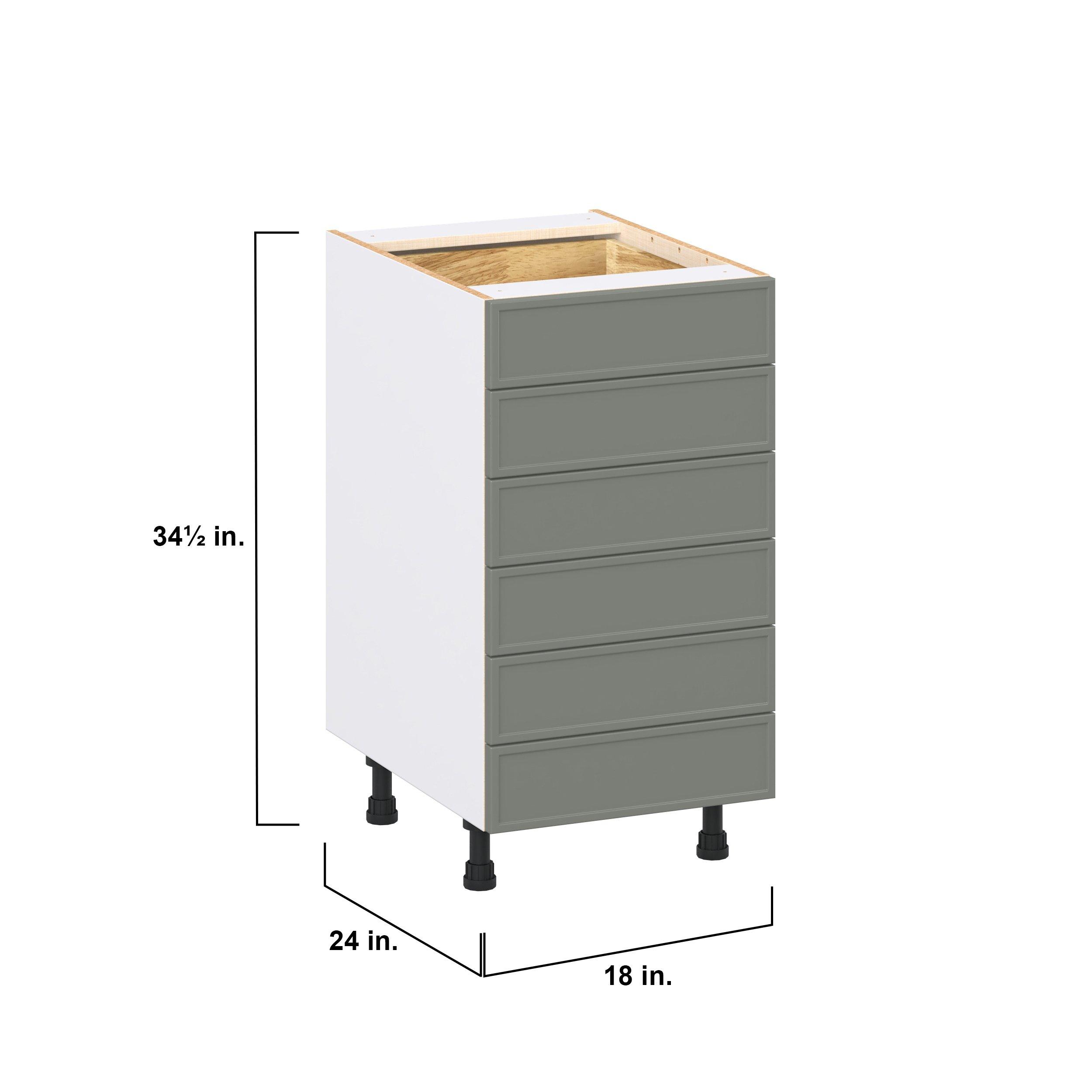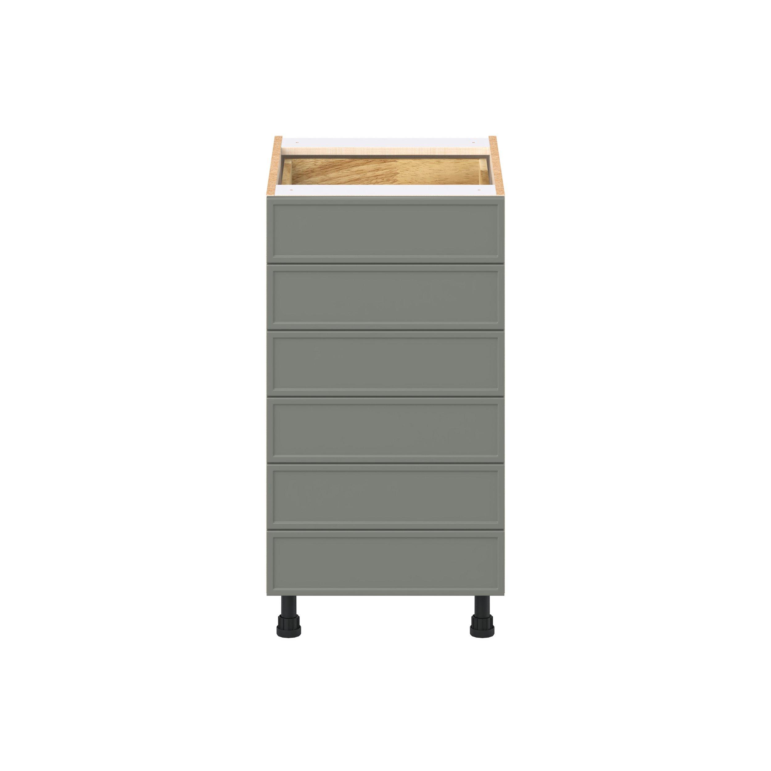 Enjoy a modern twist on a classic with Linden slim shaker cabinets. Available in premium-painted fresh washed linen and earthy moss green finishes, this collection exudes warmth and creates an inviting atmosphere Crafted from one-piece MDF Studio Design Collection Linden 18 in. Painted Moss Green Drawer Base Cabinet is designed to resist hairline cracks while the easy-to-clean finish stands up to stains and moisture. Featuring 5-piece doors and dovetail drawer joints, these cabinets offer durability and elegance. This collection combines style with everyday storage solutions.