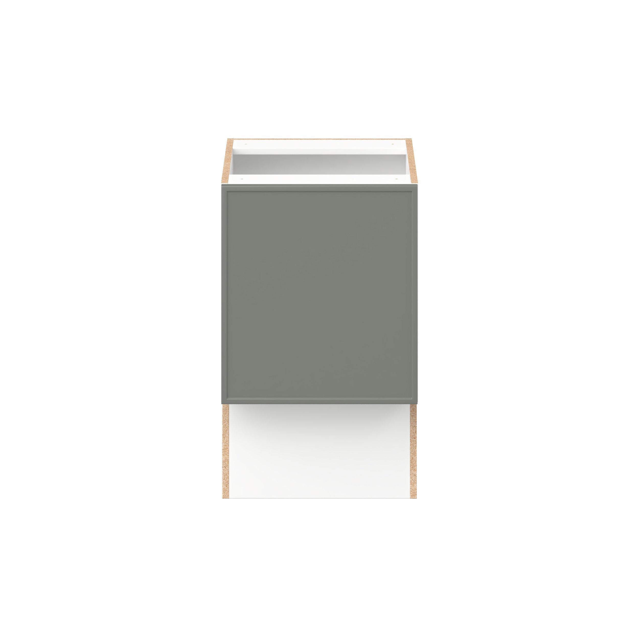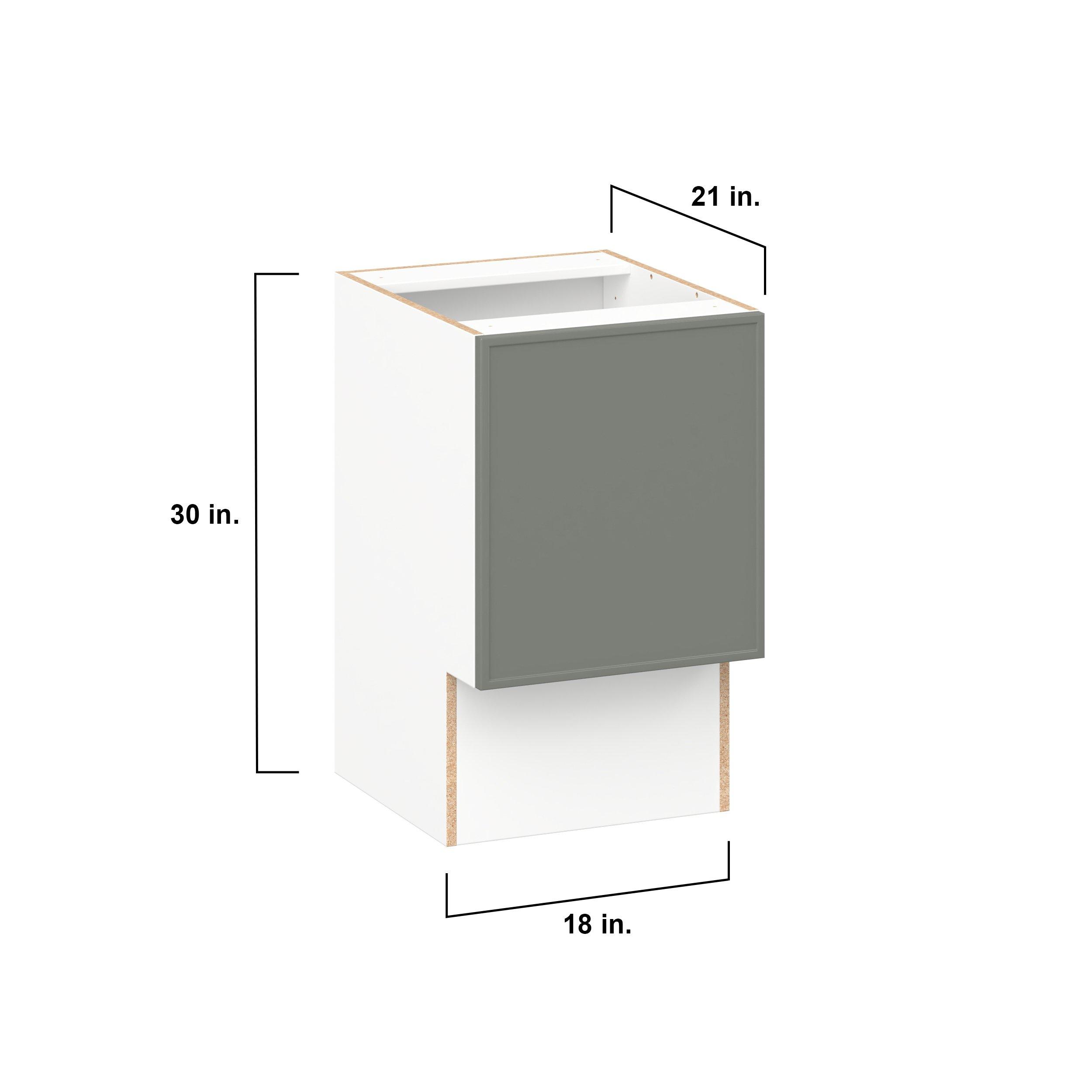 Enjoy a modern twist on a classic with Linden slim shaker cabinets. Available in premium-painted fresh washed linen and earthy moss green finishes, this collection exudes warmth and creates an inviting atmosphere Crafted from one-piece MDF Studio Design Collection Linden 18 in. Painted Moss Green Vanity Base Cabinet is designed to resist hairline cracks while the easy-to-clean finish stands up to stains and moisture. Featuring 5-piece doors and dovetail drawer joints, these cabinets offer durability and elegance. This collection combines style with everyday storage solutions.