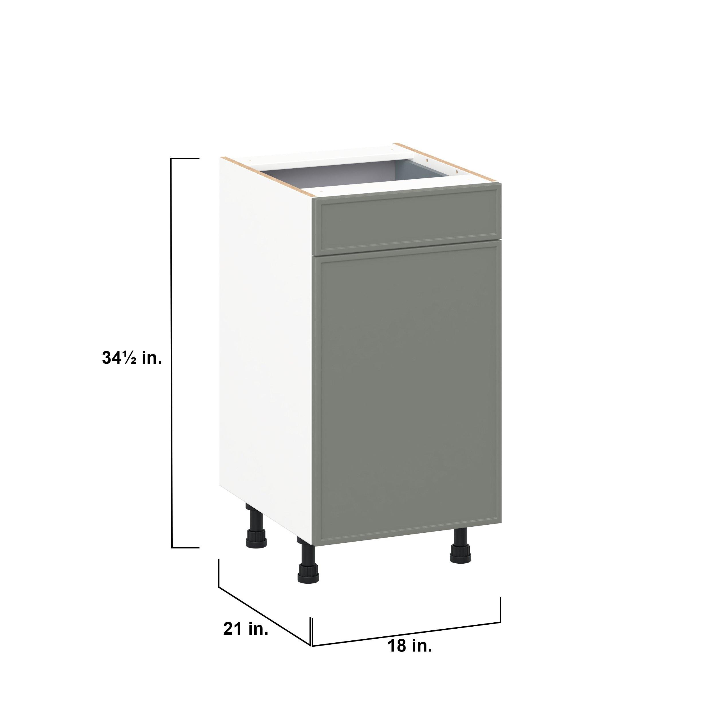 Enjoy a modern twist on a classic with Linden slim shaker cabinets. Available in premium-painted fresh washed linen and earthy moss green finishes, this collection exudes warmth and creates an inviting atmosphere Crafted from one-piece MDF Studio Design Collection Linden 18 in. Painted Moss Green Vanity Door and Drawer Base Cabinet is designed to resist hairline cracks while the easy-to-clean finish stands up to stains and moisture. Featuring 5-piece doors and dovetail drawer joints, these cabinets offer durability and elegance. This collection combines style with everyday storage solutions.