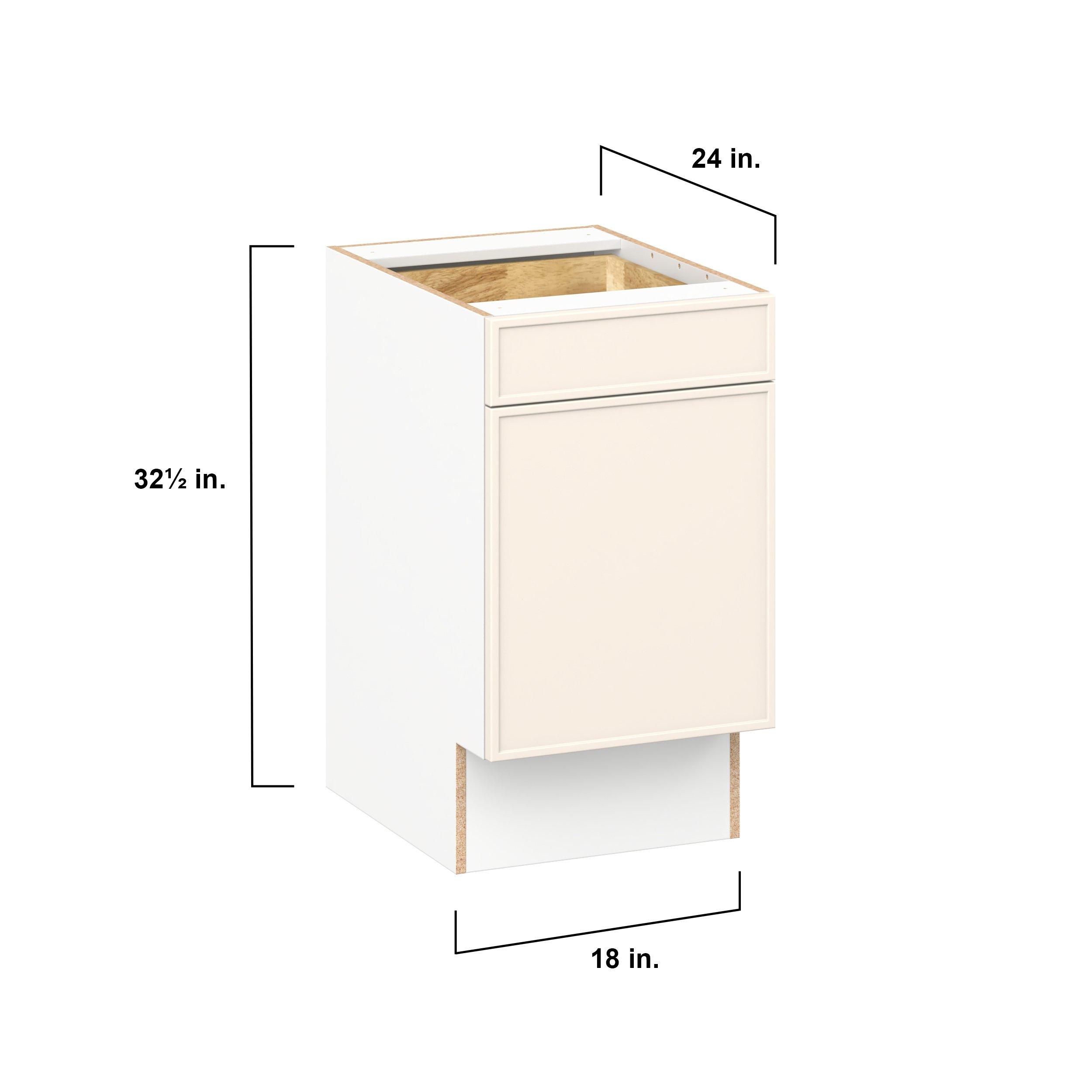 Enjoy a modern twist on a classic with Linden slim shaker cabinets. Available in premium-painted fresh washed linen and earthy moss green finishes, this collection exudes warmth and creates an inviting atmosphere Crafted from one-piece MDF Studio Design Collection Linden 18 in. Painted Washed Linen Door and Drawer Base Cabinet is designed to resist hairline cracks while the easy-to-clean finish stands up to stains and moisture. Featuring 5-piece doors and dovetail drawer joints, these cabinets offer durability and elegance. This collection combines style with everyday storage solutions.