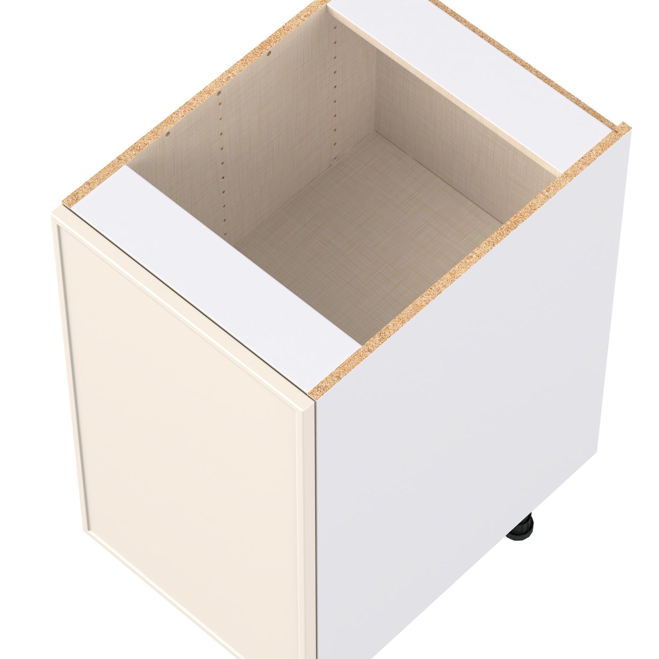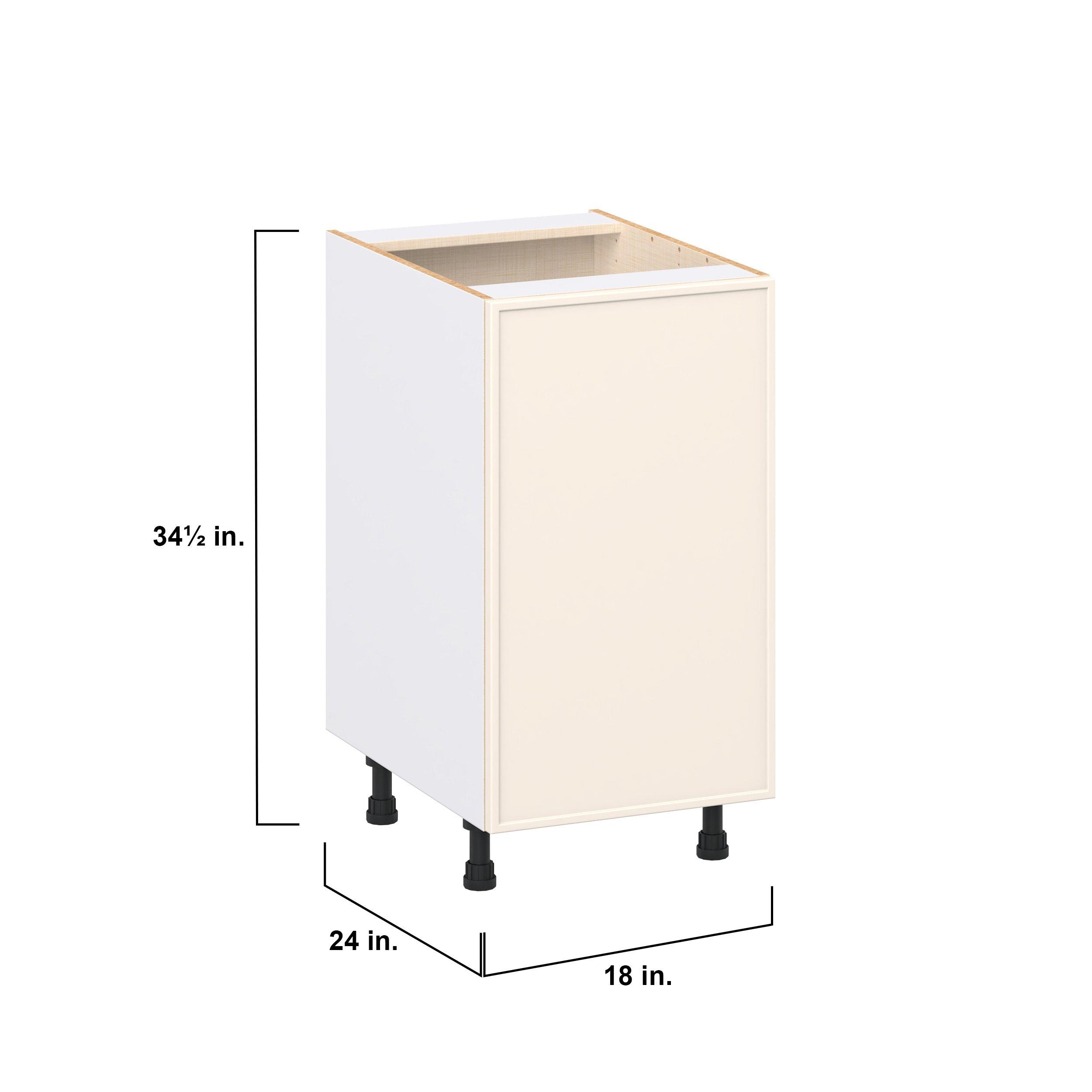 Enjoy a modern twist on a classic with Linden slim shaker cabinets. Available in premium-painted fresh washed linen and earthy moss green finishes, this collection exudes warmth and creates an inviting atmosphere Crafted from one-piece MDF Studio Design Collection Linden 18 in. Painted Washed Linen Door Base Cabinet is designed to resist hairline cracks while the easy-to-clean finish stands up to stains and moisture. Featuring 5-piece doors and dovetail drawer joints, these cabinets offer durability and elegance. This collection combines style with everyday storage solutions.