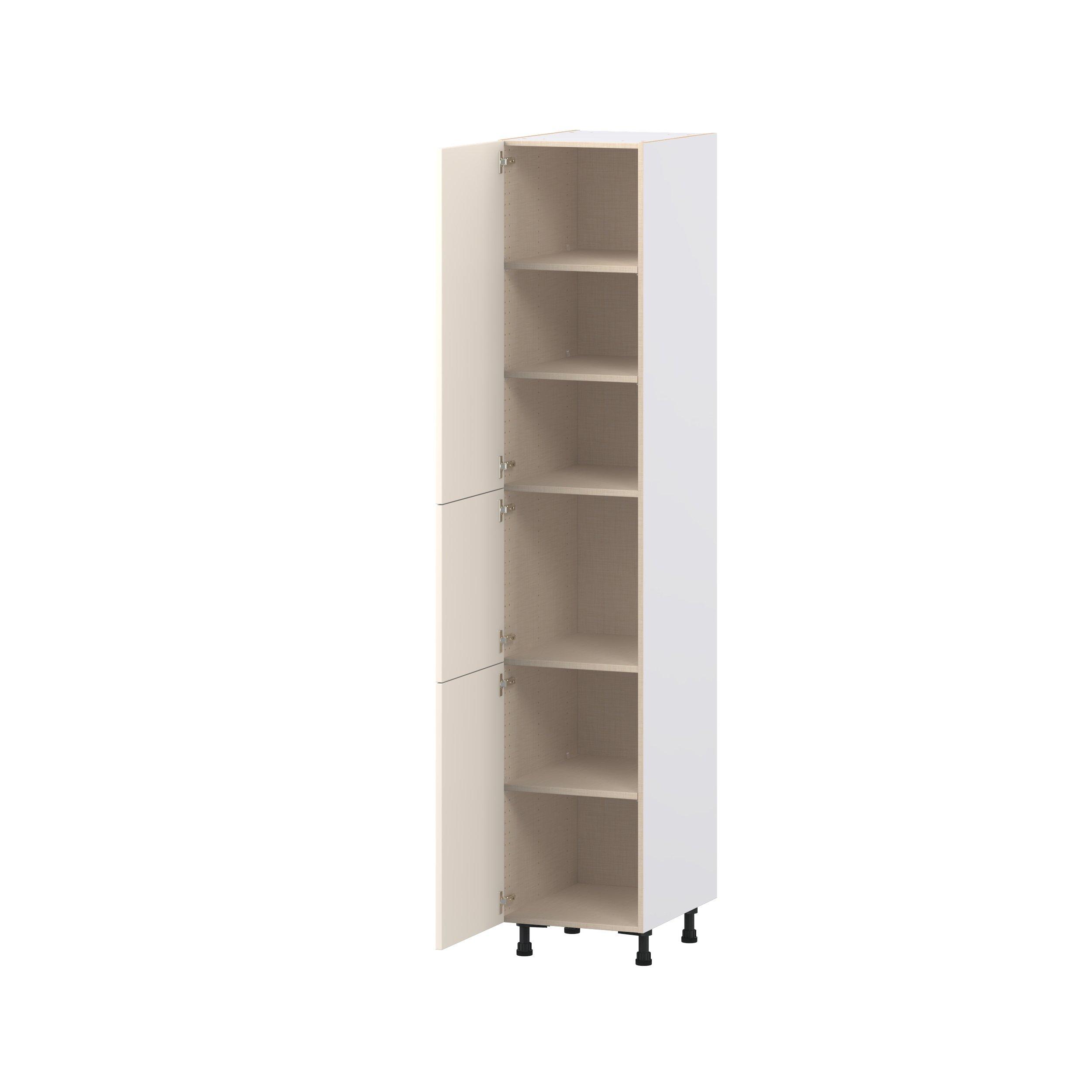 Enjoy a modern twist on a classic with Linden slim shaker cabinets. Available in premium-painted fresh washed linen and earthy moss green finishes, this collection exudes warmth and creates an inviting atmosphere Crafted from one-piece MDF Studio Design Collection Linden 18 in. Painted Washed Linen Door Pantry Cabinet is designed to resist hairline cracks while the easy-to-clean finish stands up to stains and moisture. Featuring 5-piece doors and dovetail drawer joints, these cabinets offer durability and elegance. This collection combines style with everyday storage solutions.