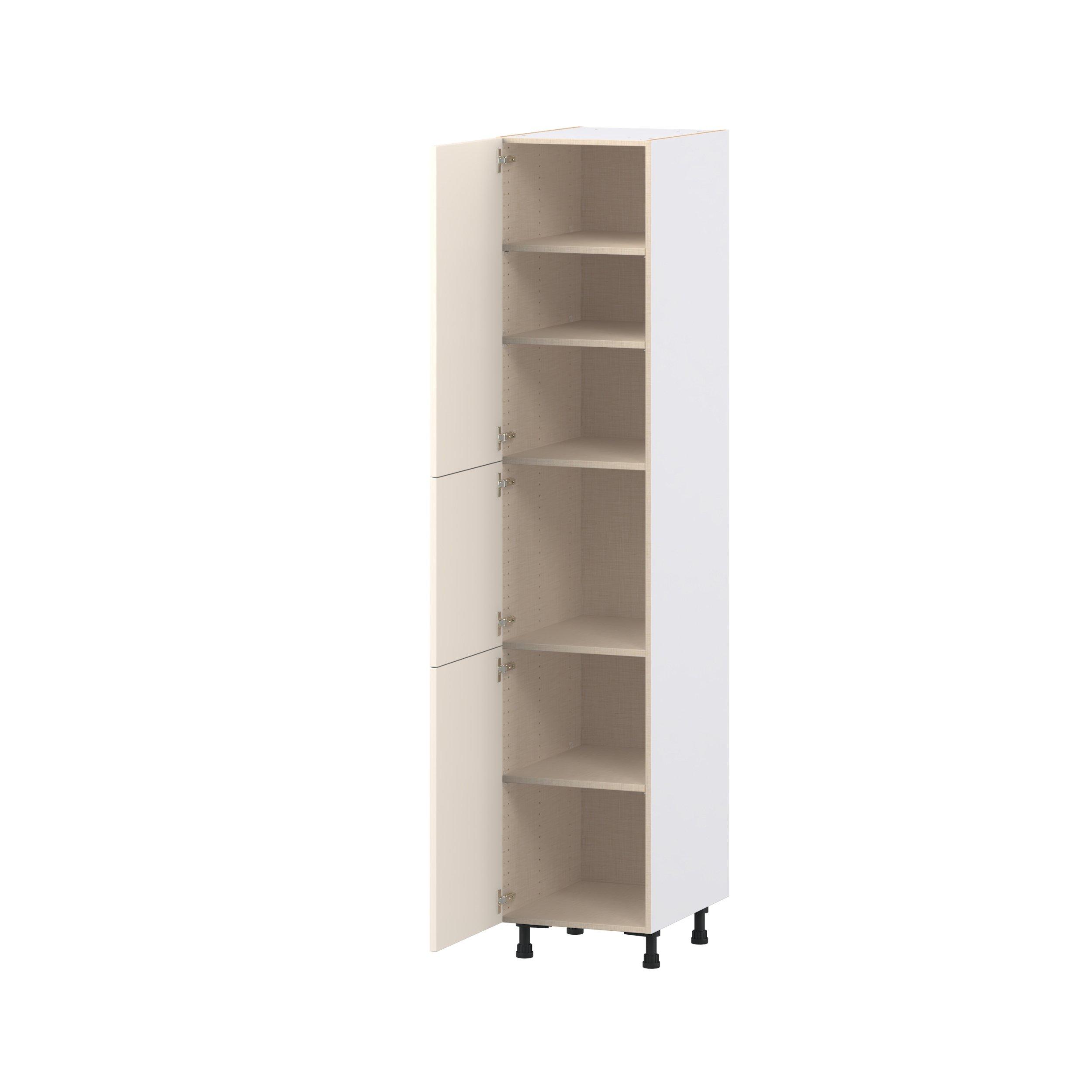 Enjoy a modern twist on a classic with Linden slim shaker cabinets. Available in premium-painted fresh washed linen and earthy moss green finishes, this collection exudes warmth and creates an inviting atmosphere Crafted from one-piece MDF Studio Design Collection Linden 18 in. Painted Washed Linen Door Pantry Cabinet is designed to resist hairline cracks while the easy-to-clean finish stands up to stains and moisture. Featuring 5-piece doors and dovetail drawer joints, these cabinets offer durability and elegance. This collection combines style with everyday storage solutions.