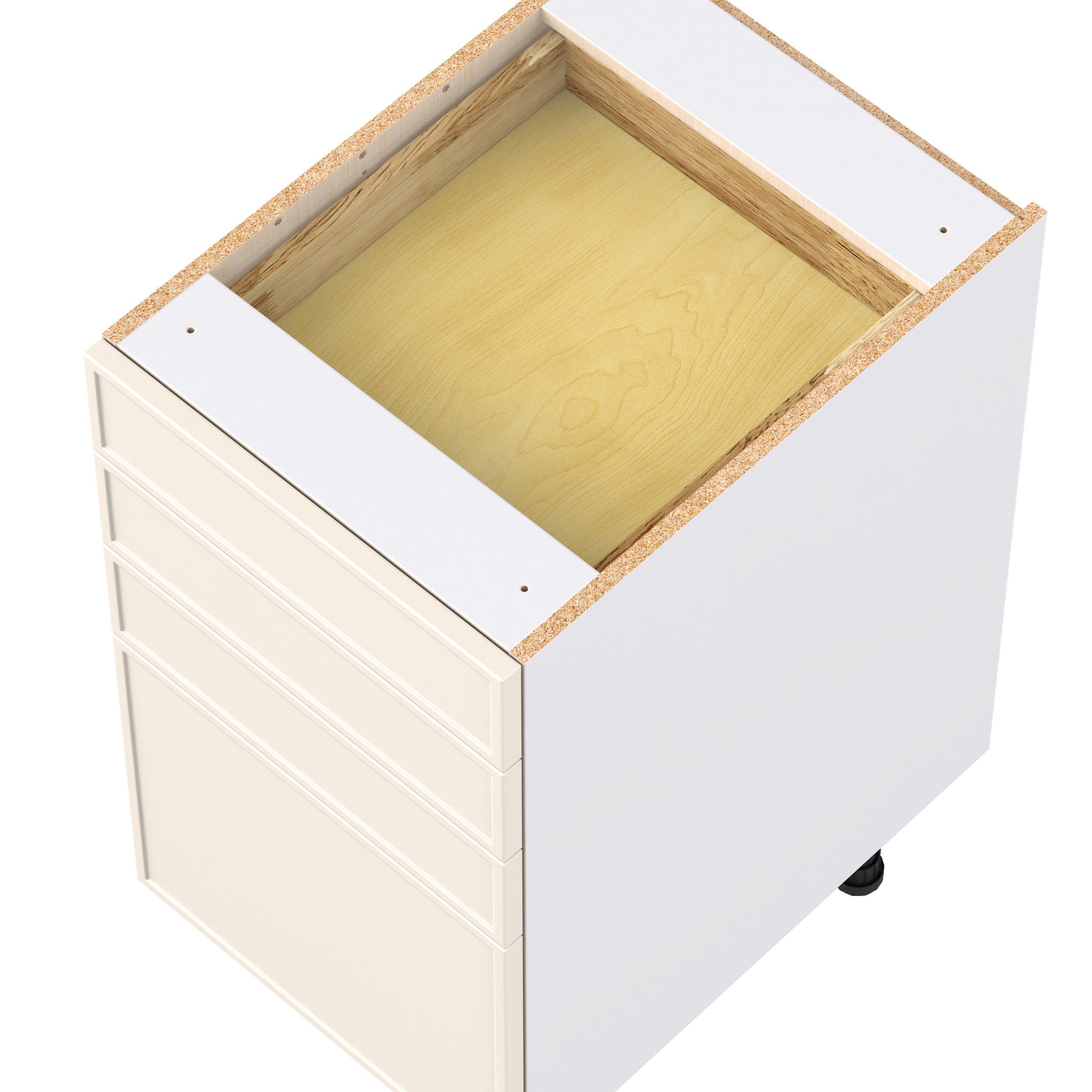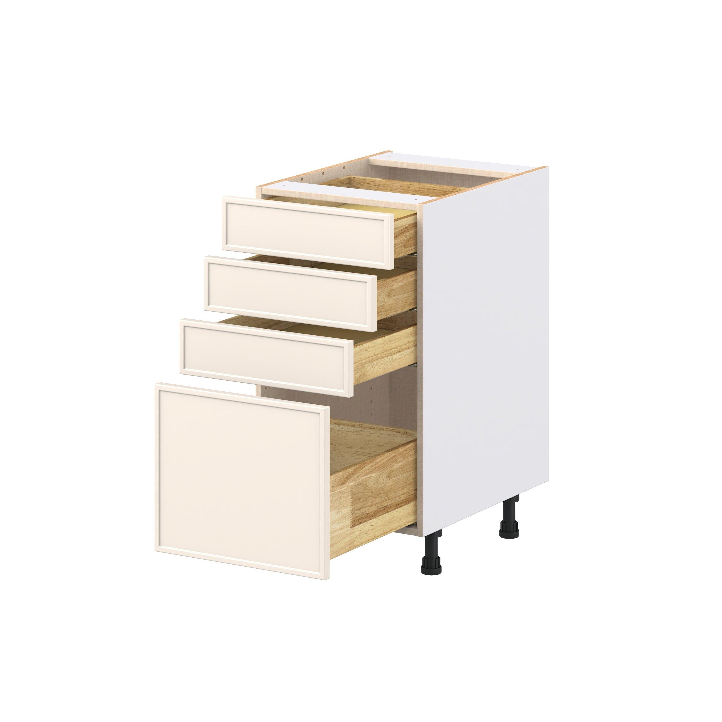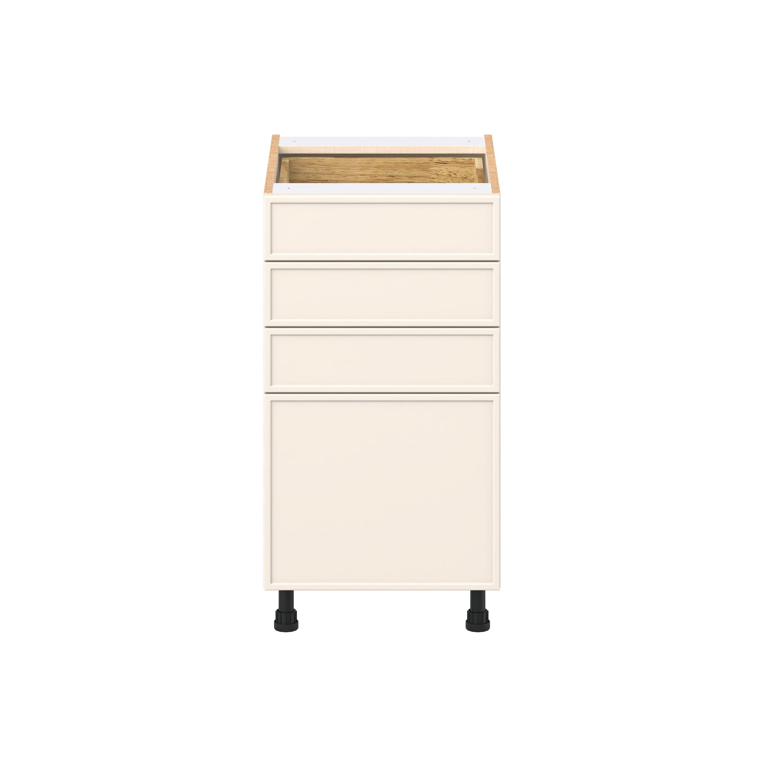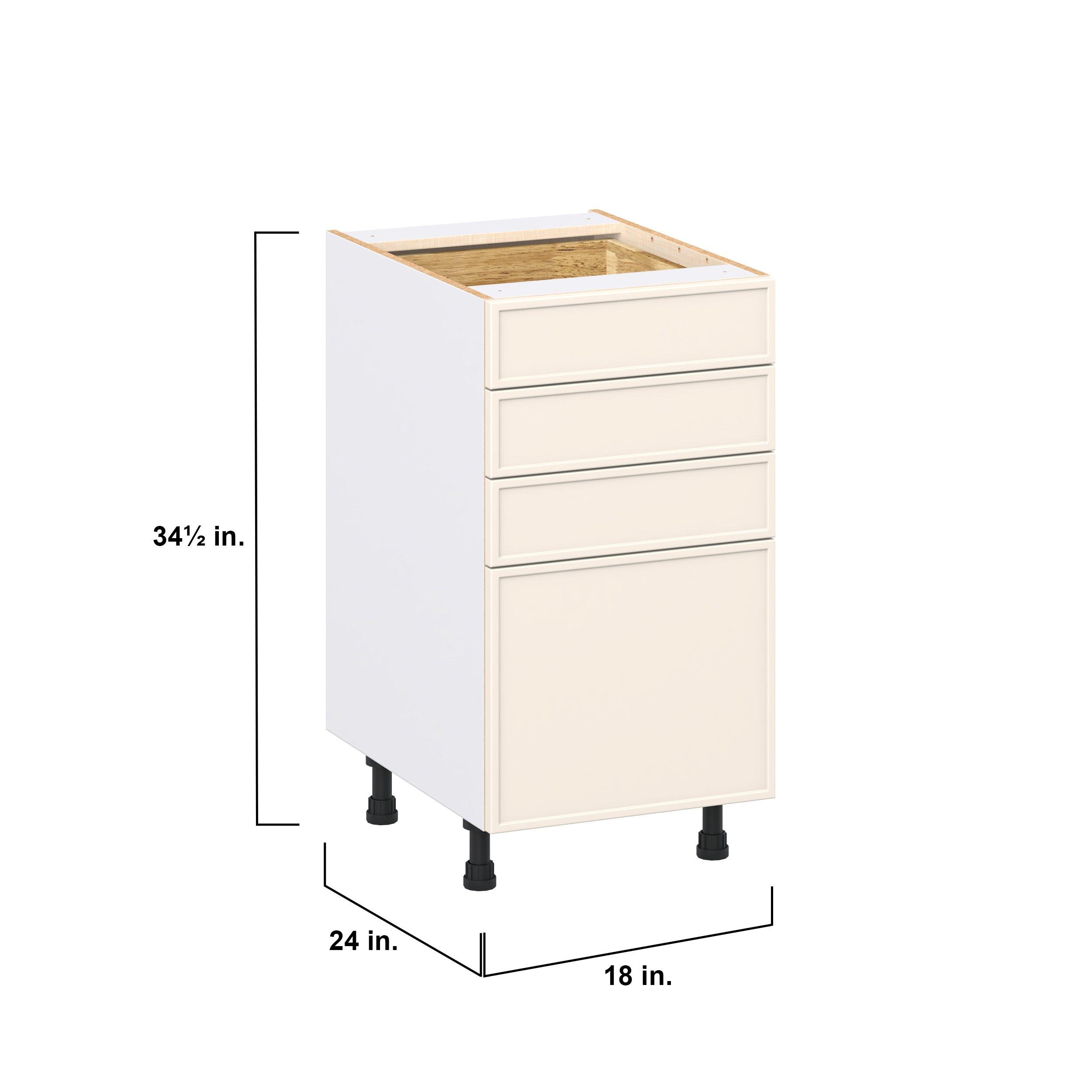 Enjoy a modern twist on a classic with Linden slim shaker cabinets. Available in premium-painted fresh washed linen and earthy moss green finishes, this collection exudes warmth and creates an inviting atmosphere Crafted from one-piece MDF Studio Design Collection Linden 18 in. Painted Washed Linen Drawer Base Cabinet is designed to resist hairline cracks while the easy-to-clean finish stands up to stains and moisture. Featuring 5-piece doors and dovetail drawer joints, these cabinets offer durability and elegance. This collection combines style with everyday storage solutions.