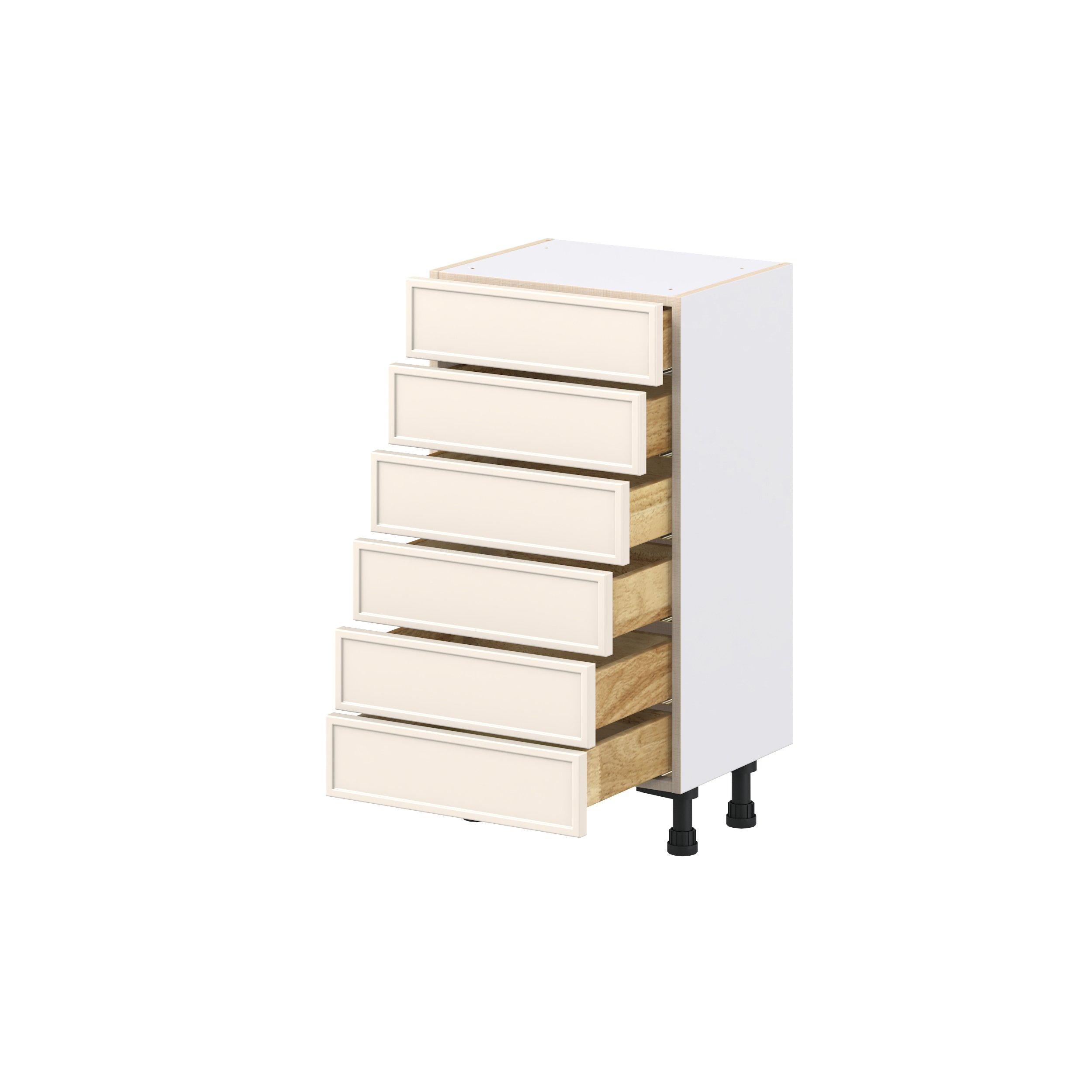 Enjoy a modern twist on a classic with Linden slim shaker cabinets. Available in premium-painted fresh washed linen and earthy moss green finishes, this collection exudes warmth and creates an inviting atmosphere Crafted from one-piece MDF Studio Design Collection Linden 18 in. Painted Washed Linen Shallow Base Cabinet is designed to resist hairline cracks while the easy-to-clean finish stands up to stains and moisture. Featuring 5-piece doors and dovetail drawer joints, these cabinets offer durability and elegance. This collection combines style with everyday storage solutions.