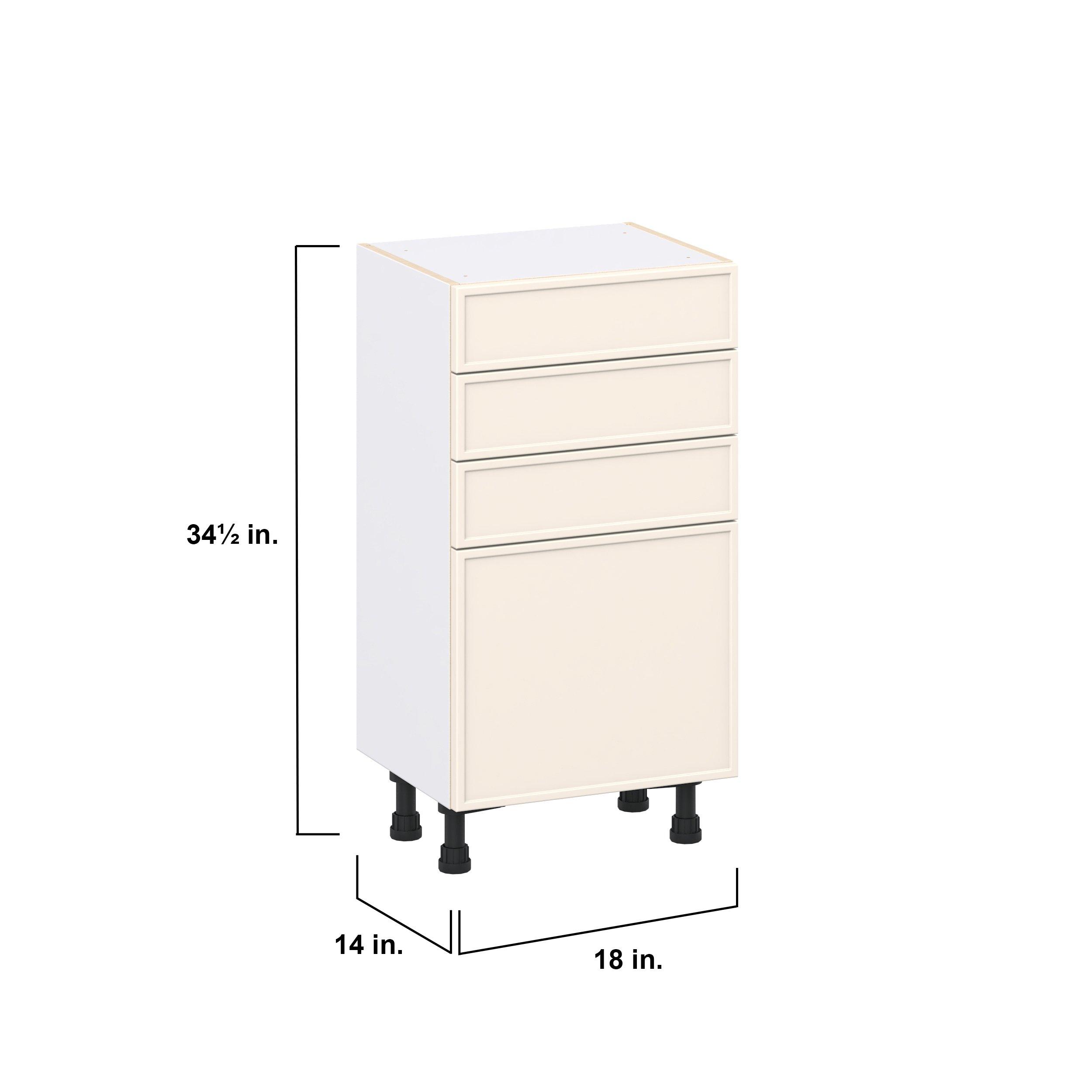 Enjoy a modern twist on a classic with Linden slim shaker cabinets. Available in premium-painted fresh washed linen and earthy moss green finishes, this collection exudes warmth and creates an inviting atmosphere Crafted from one-piece MDF Studio Design Collection Linden 18 in. Painted Washed Linen Shallow Base Cabinet is designed to resist hairline cracks while the easy-to-clean finish stands up to stains and moisture. Featuring 5-piece doors and dovetail drawer joints, these cabinets offer durability and elegance. This collection combines style with everyday storage solutions.