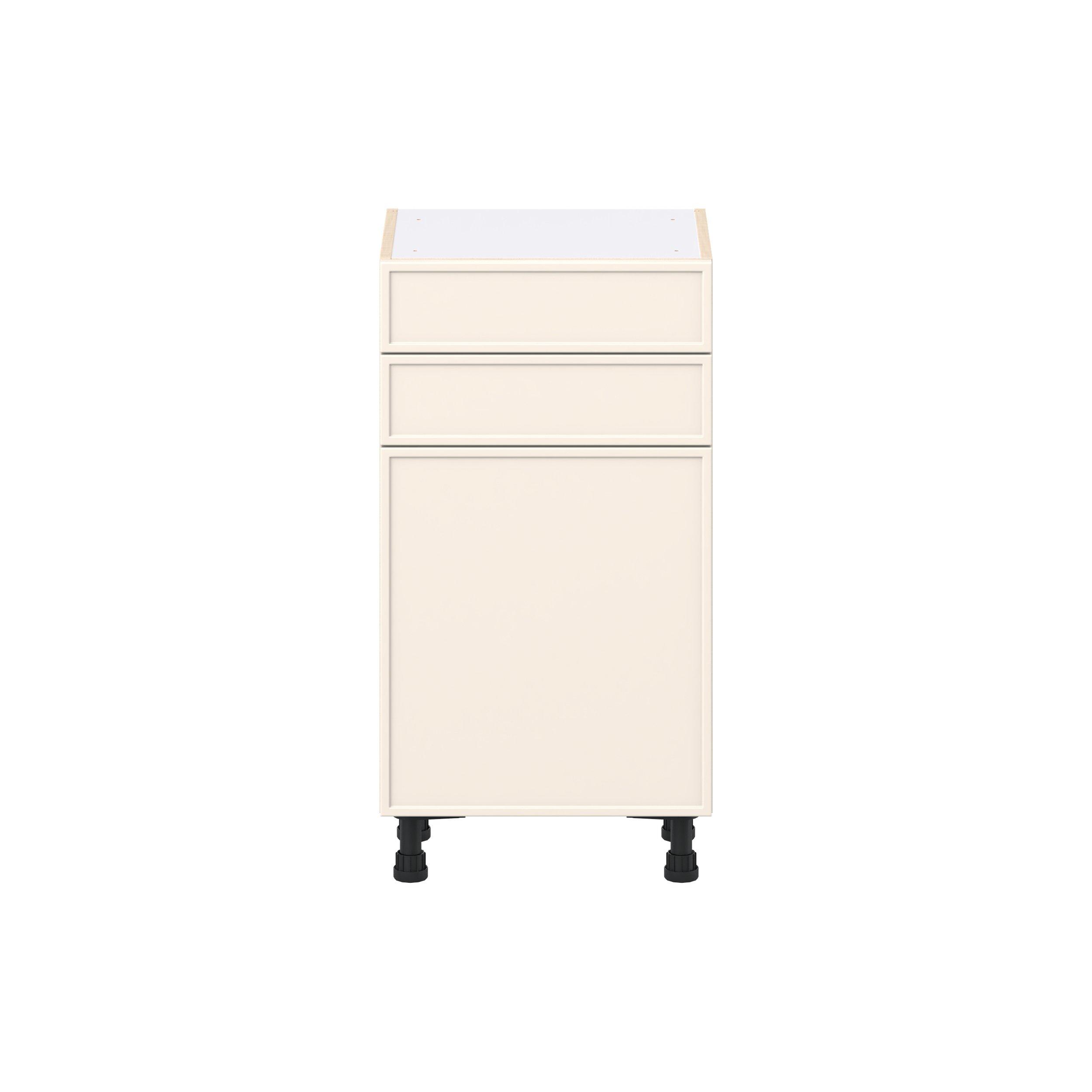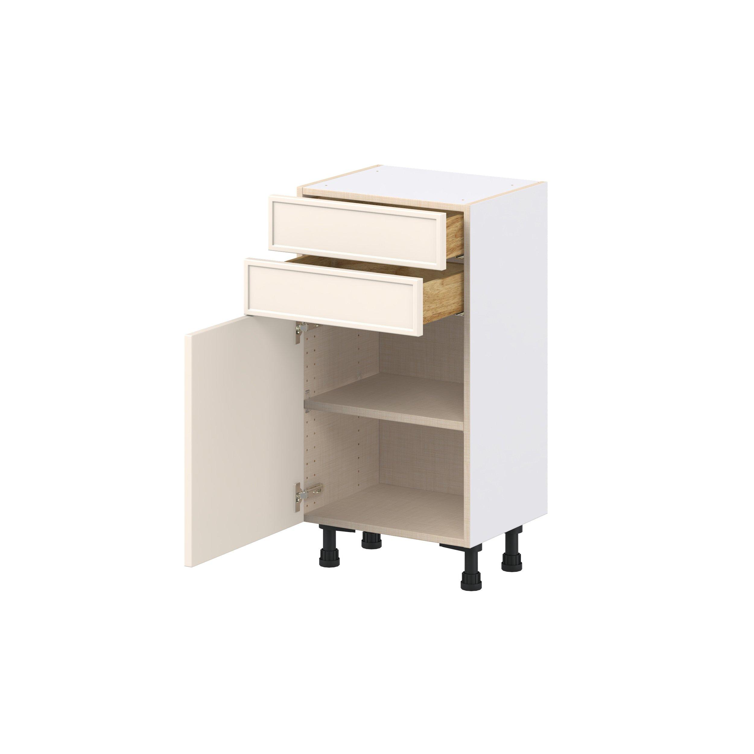 Enjoy a modern twist on a classic with Linden slim shaker cabinets. Available in premium-painted fresh washed linen and earthy moss green finishes, this collection exudes warmth and creates an inviting atmosphere Crafted from one-piece MDF Studio Design Collection Linden 18 in. Painted Washed Linen Shallow Base Cabinet is designed to resist hairline cracks while the easy-to-clean finish stands up to stains and moisture. Featuring 5-piece doors and dovetail drawer joints, these cabinets offer durability and elegance. This collection combines style with everyday storage solutions.