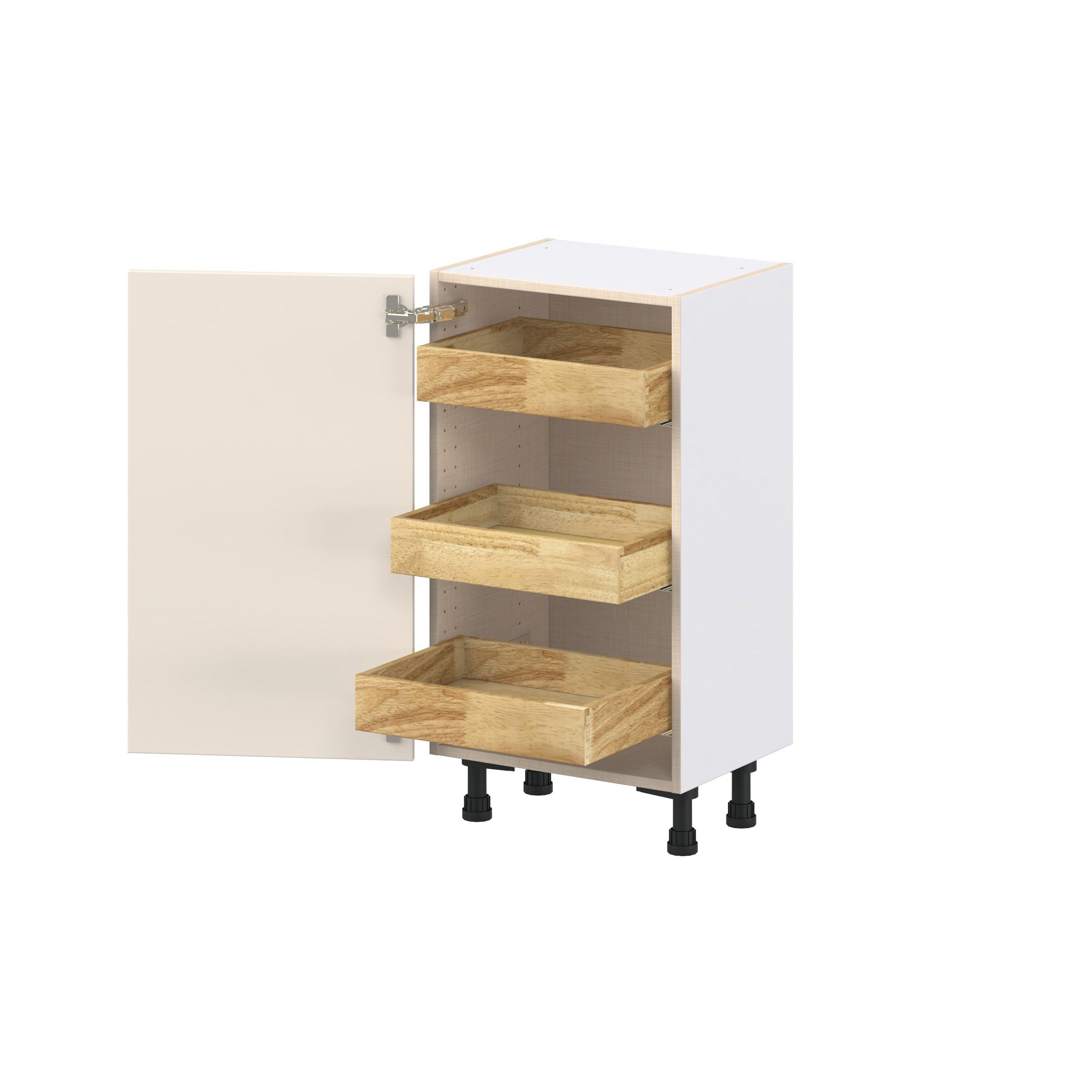 Enjoy a modern twist on a classic with Linden slim shaker cabinets. Available in premium-painted fresh washed linen and earthy moss green finishes, this collection exudes warmth and creates an inviting atmosphere Crafted from one-piece MDF Studio Design Collection Linden 18 in. Painted Washed Linen Shallow Base Cabinet with Inner Pull-Out Drawer is designed to resist hairline cracks while the easy-to-clean finish stands up to stains and moisture. Featuring 5-piece doors and dovetail drawer joints, these cabinets offer durability and elegance. This collection combines style with everyday storage solutions.
