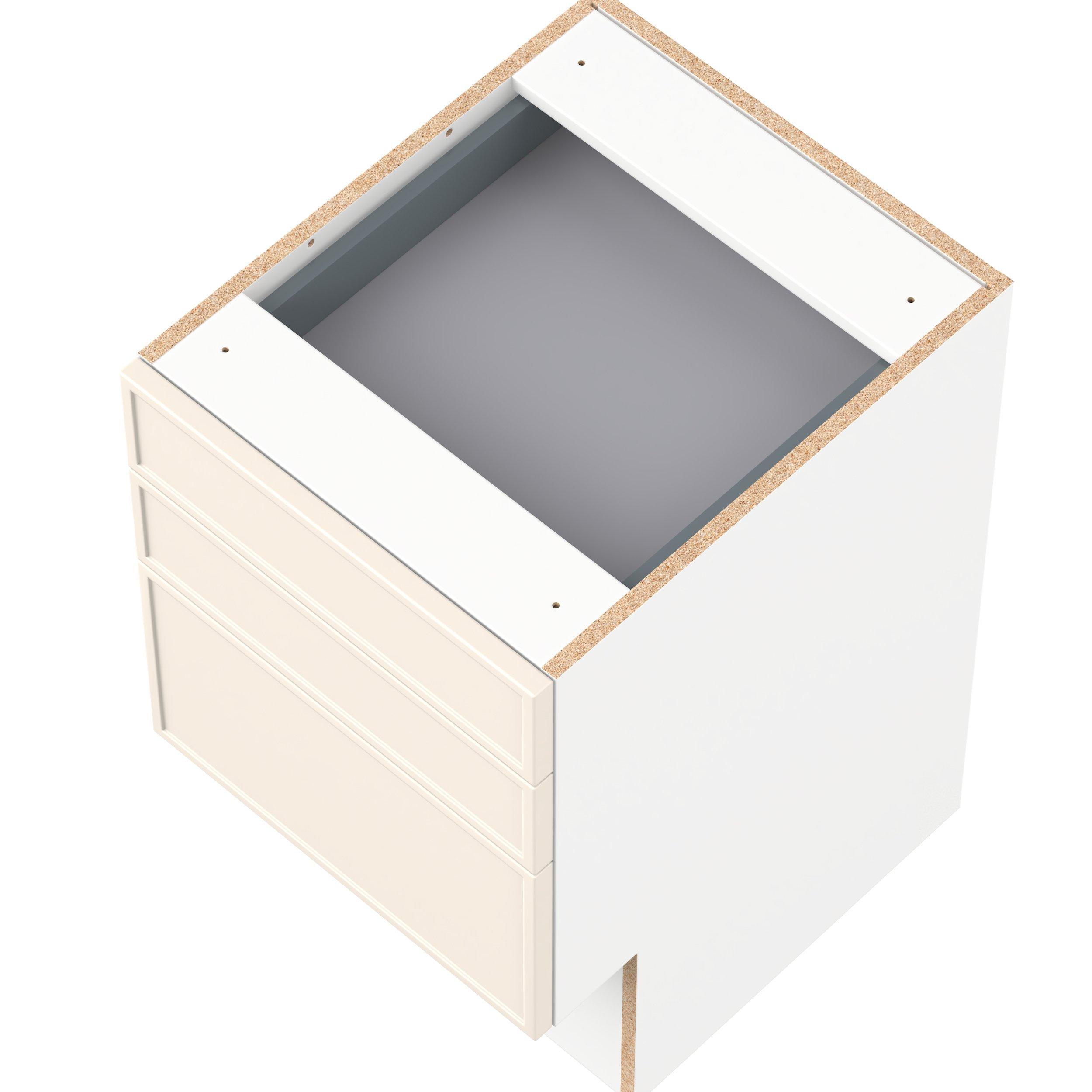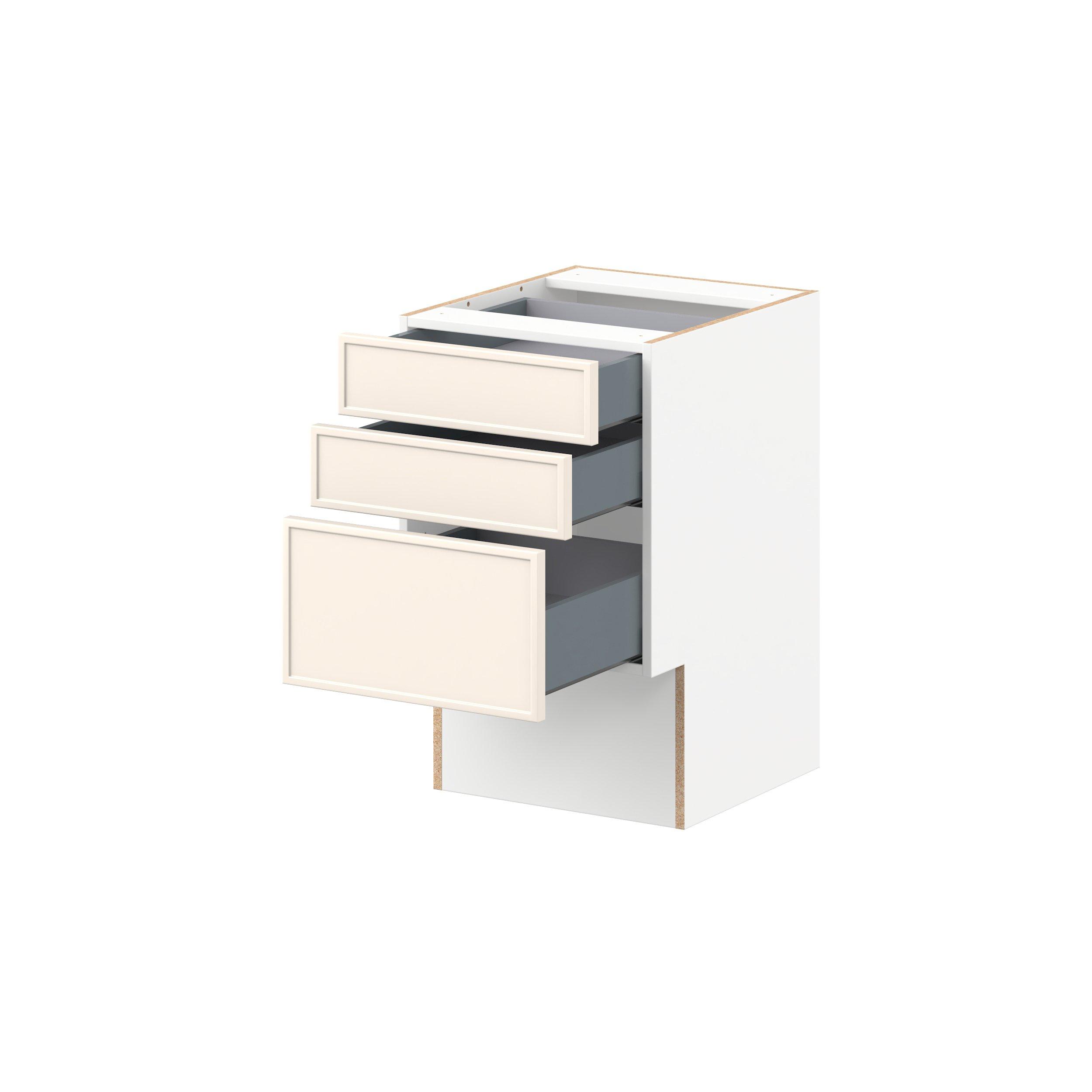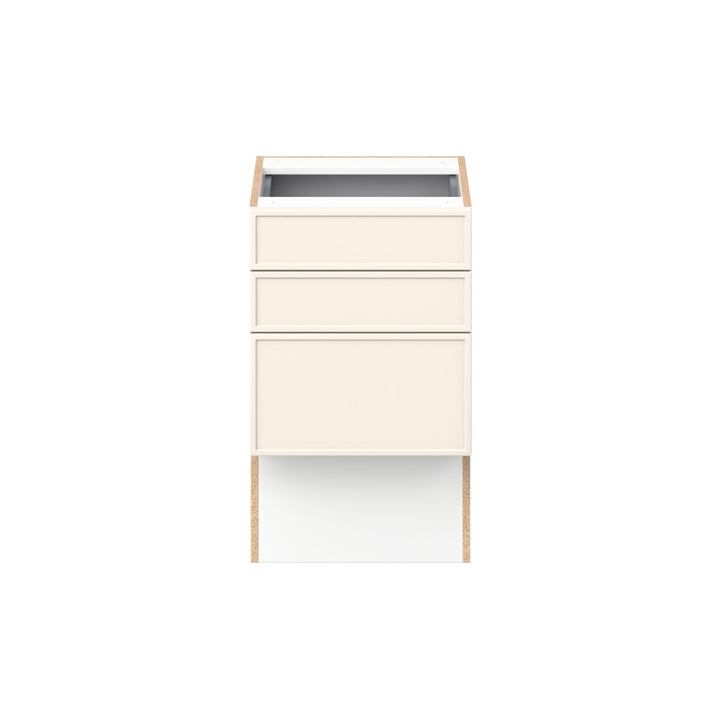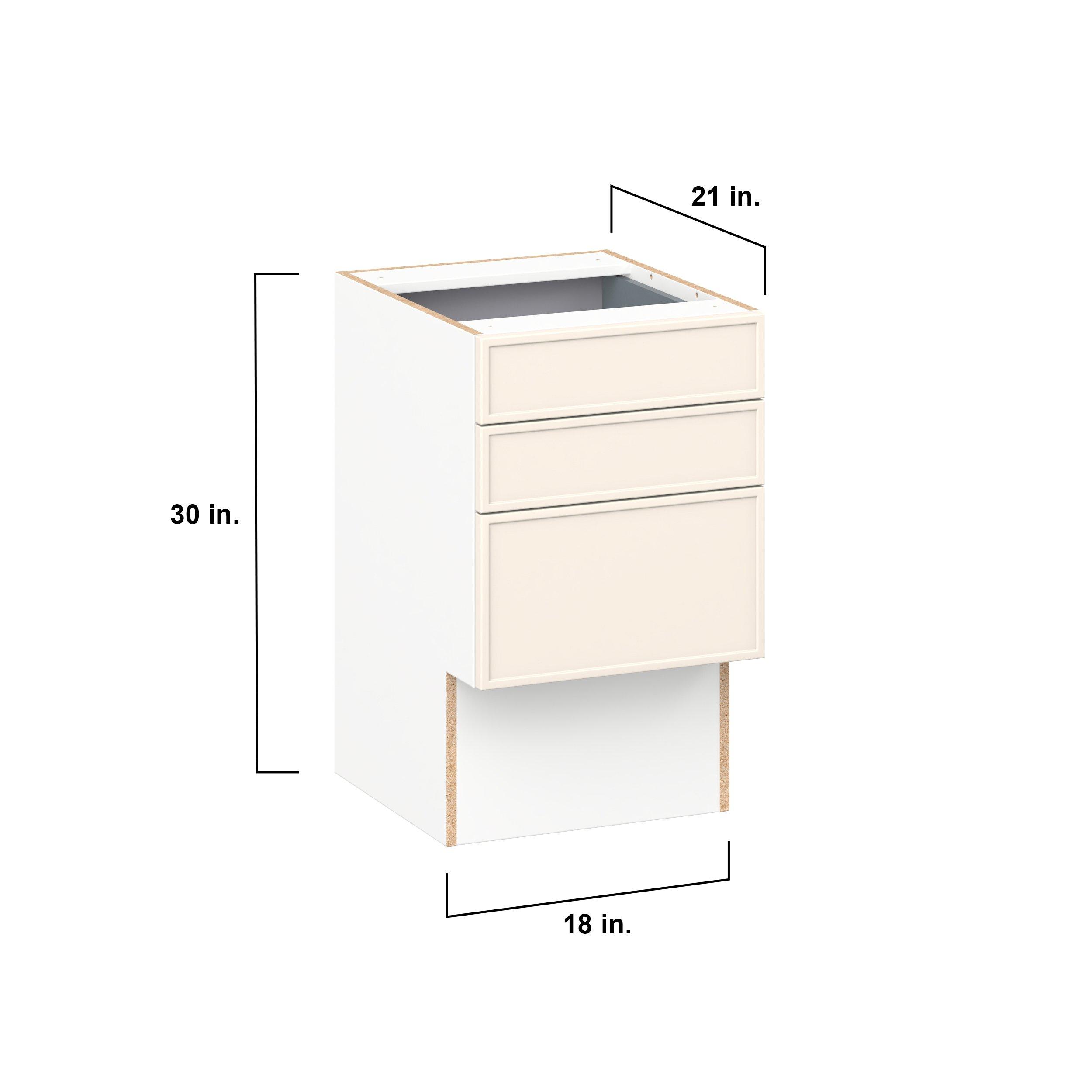 Enjoy a modern twist on a classic with Linden slim shaker cabinets. Available in premium-painted fresh washed linen and earthy moss green finishes, this collection exudes warmth and creates an inviting atmosphere Crafted from one-piece MDF Studio Design Collection Linden 18 in. Painted Washed Linen Vanity Drawer Base Cabinet is designed to resist hairline cracks while the easy-to-clean finish stands up to stains and moisture. Featuring 5-piece doors and dovetail drawer joints, these cabinets offer durability and elegance. This collection combines style with everyday storage solutions.