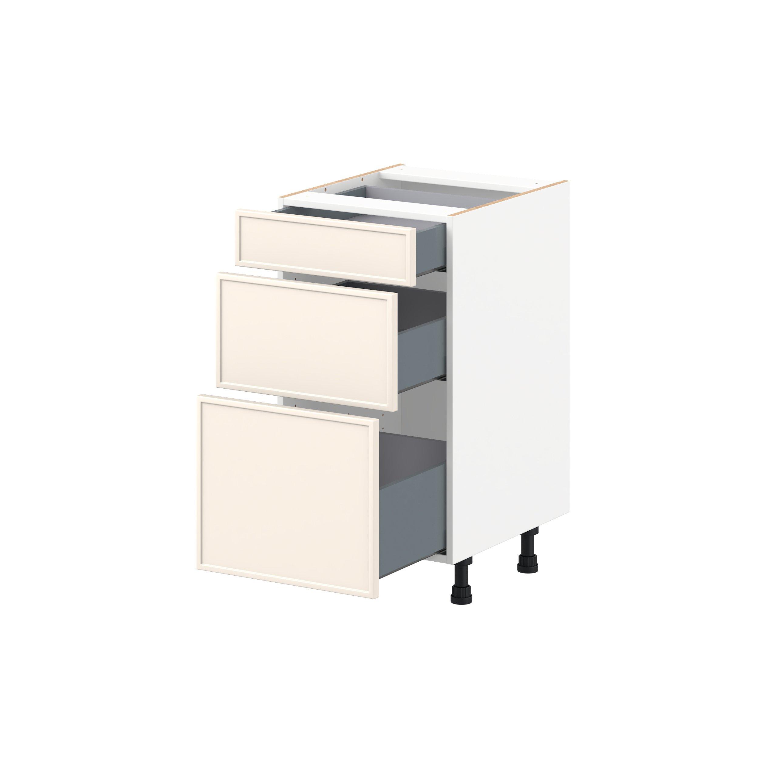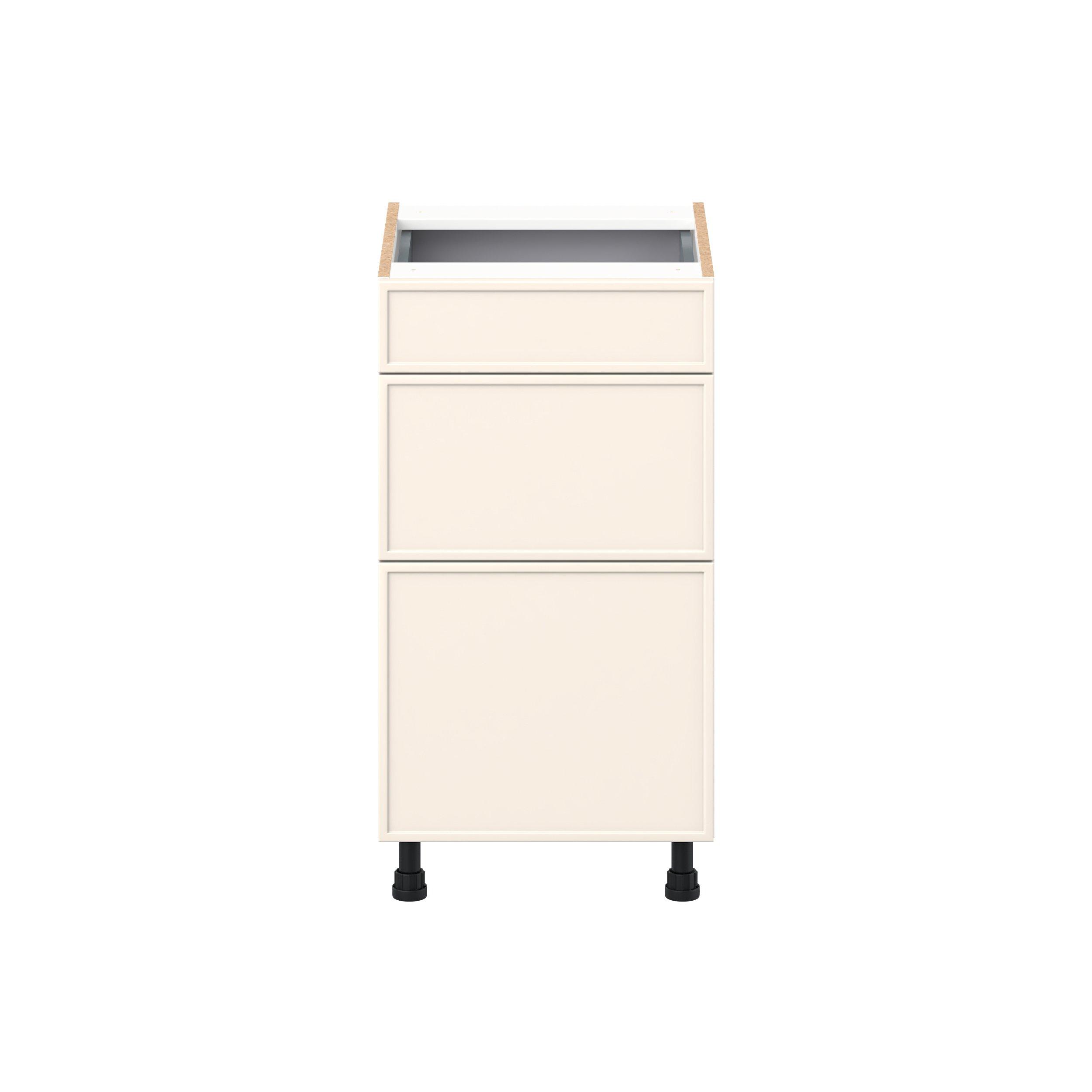 Enjoy a modern twist on a classic with Linden slim shaker cabinets. Available in premium-painted fresh washed linen and earthy moss green finishes, this collection exudes warmth and creates an inviting atmosphere Crafted from one-piece MDF Studio Design Collection Linden 18 in. Painted Washed Linen Vanity Drawer Base Cabinet is designed to resist hairline cracks while the easy-to-clean finish stands up to stains and moisture. Featuring 5-piece doors and dovetail drawer joints, these cabinets offer durability and elegance. This collection combines style with everyday storage solutions.