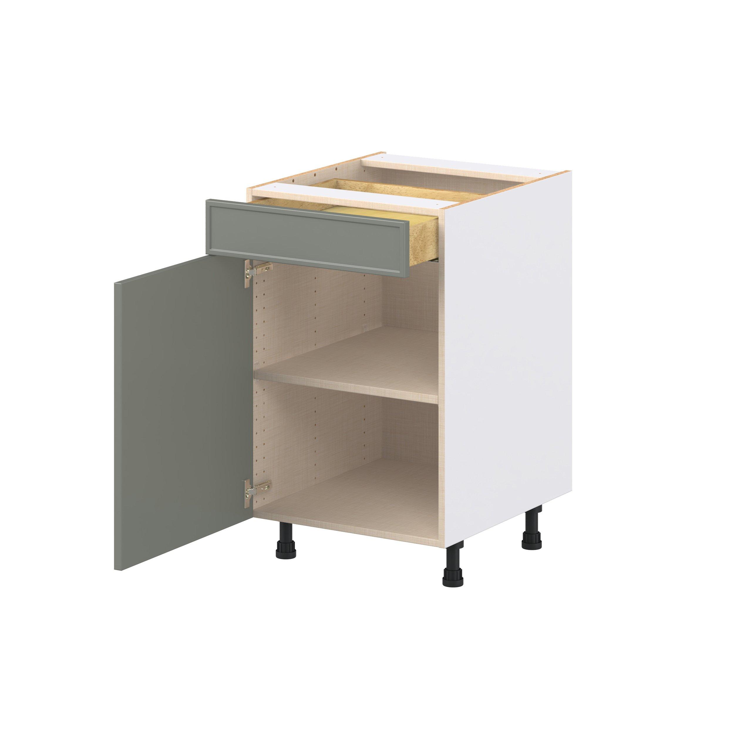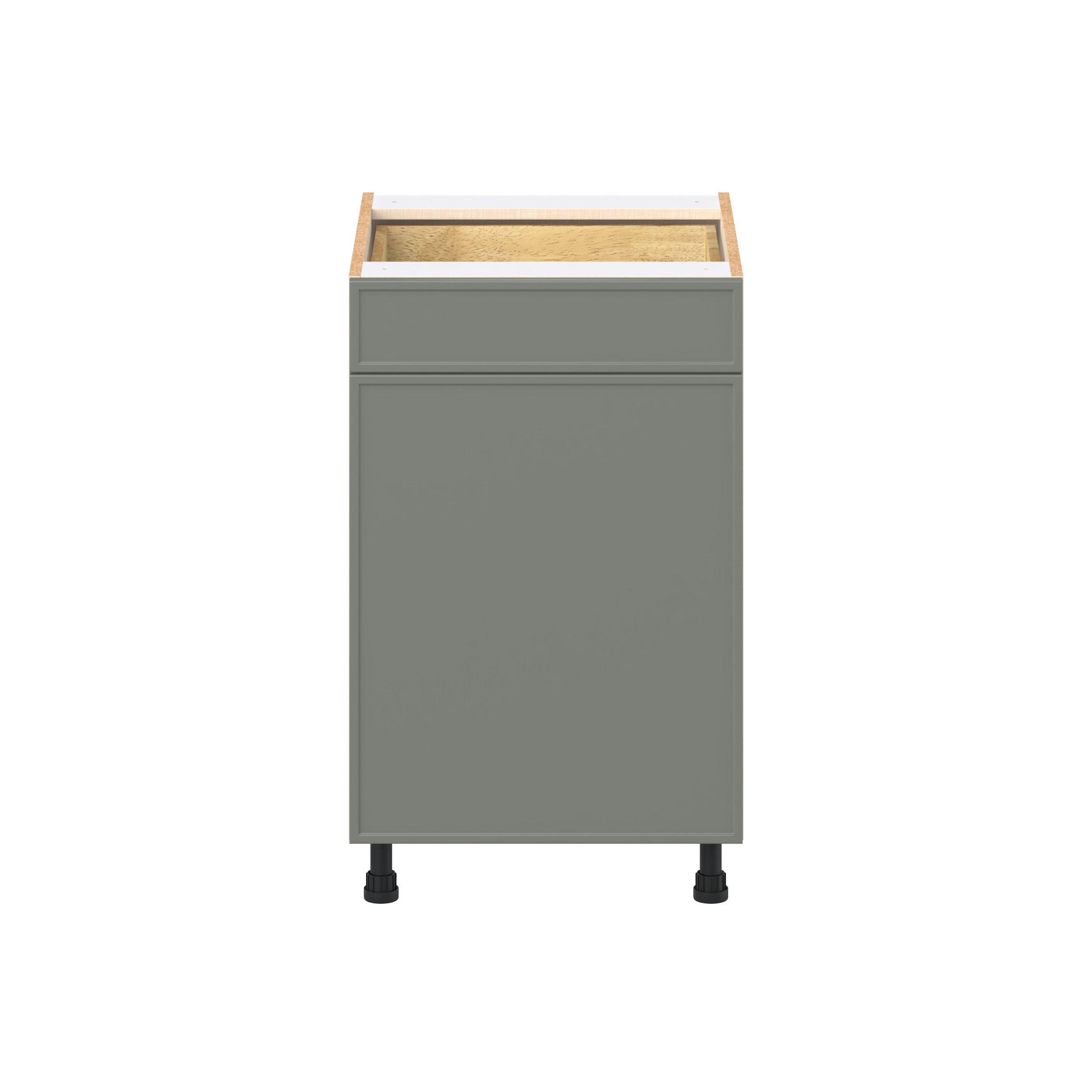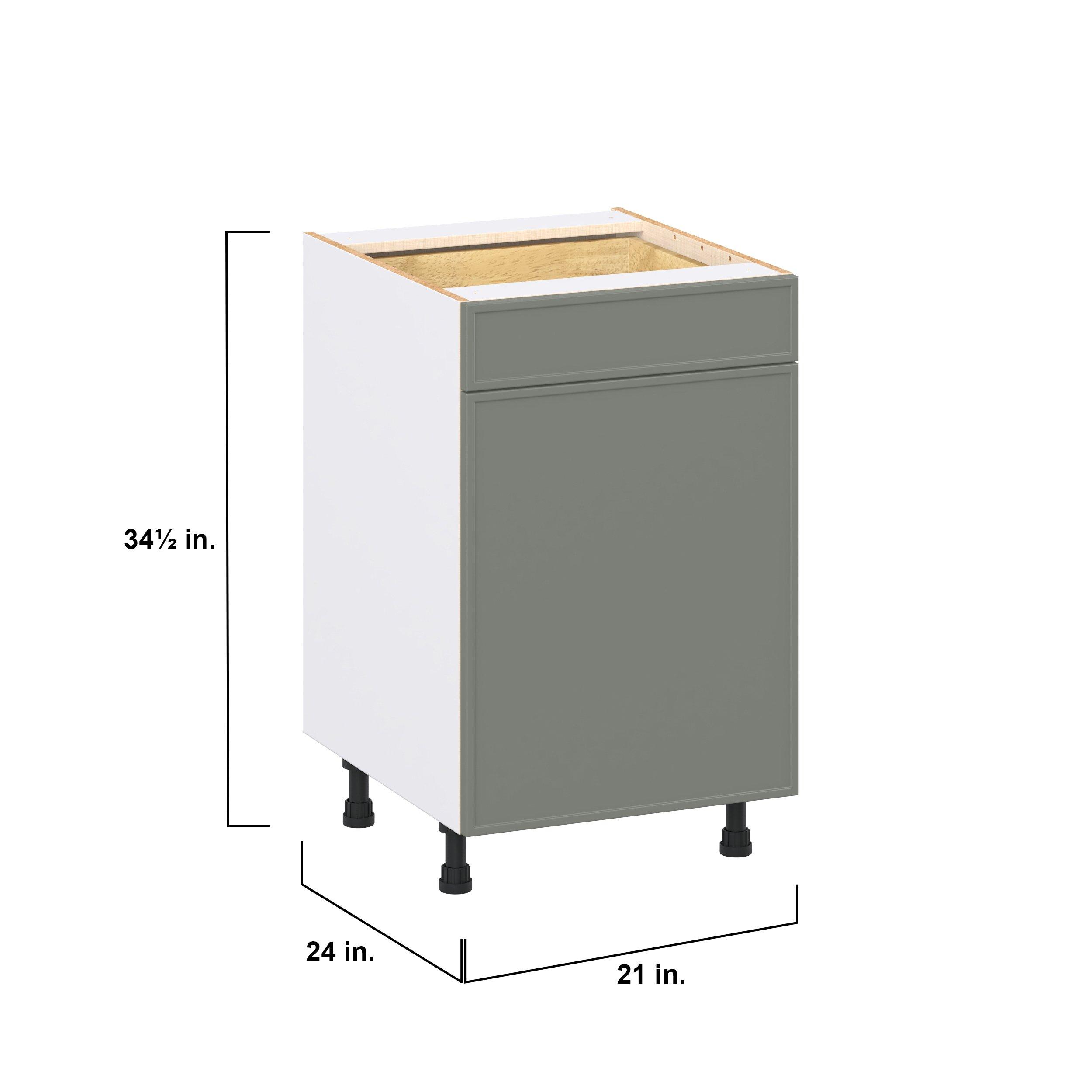 Enjoy a modern twist on a classic with Linden slim shaker cabinets. Available in premium-painted fresh washed linen and earthy moss green finishes, this collection exudes warmth and creates an inviting atmosphere Crafted from one-piece MDF Studio Design Collection Linden 21 in. Painted Moss Green Door and Drawer Base Cabinet is designed to resist hairline cracks while the easy-to-clean finish stands up to stains and moisture. Featuring 5-piece doors and dovetail drawer joints, these cabinets offer durability and elegance. This collection combines style with everyday storage solutions.