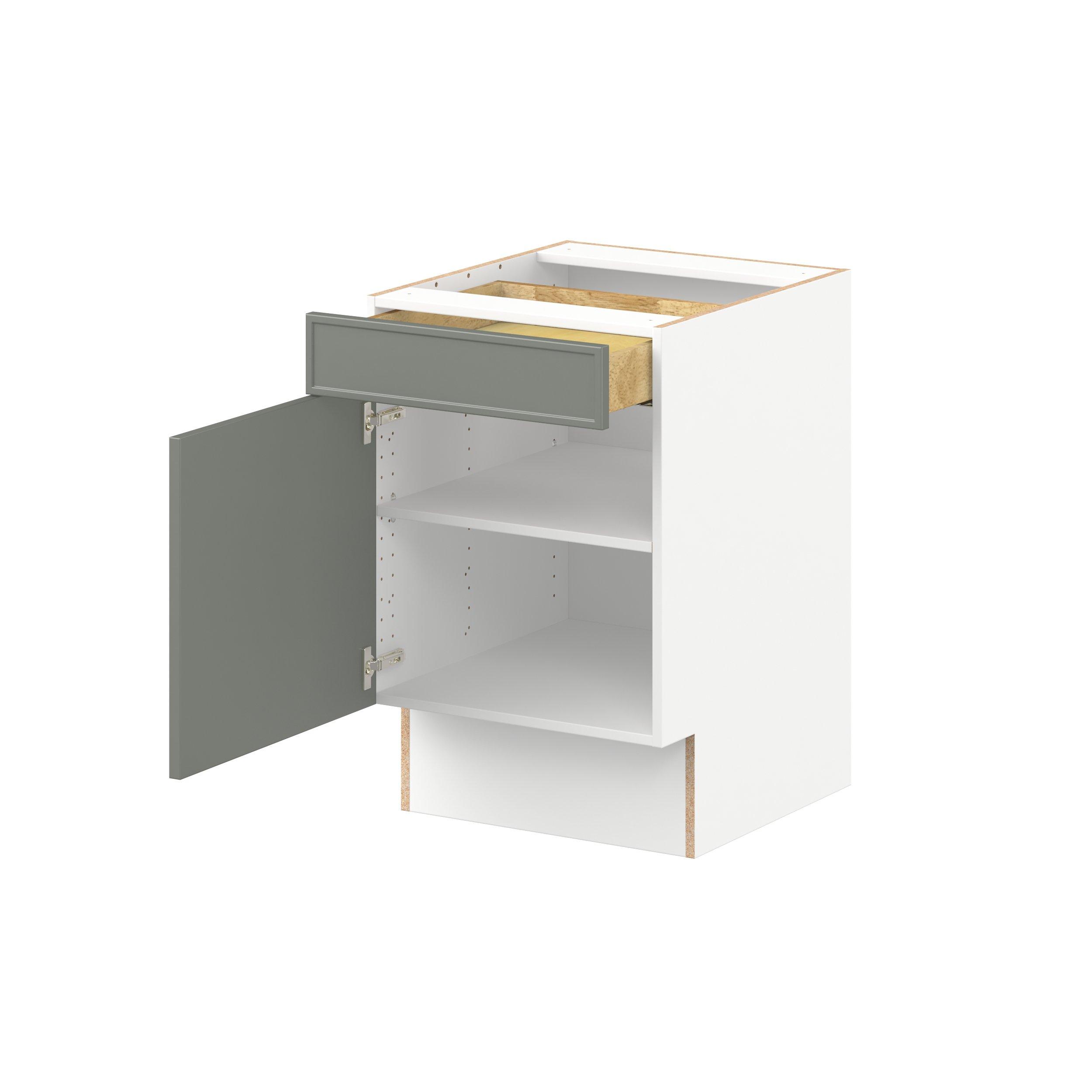 Enjoy a modern twist on a classic with Linden slim shaker cabinets. Available in premium-painted fresh washed linen and earthy moss green finishes, this collection exudes warmth and creates an inviting atmosphere Crafted from one-piece MDF Studio Design Collection Linden 21 in. Painted Moss Green Door and Drawer Base Cabinet is designed to resist hairline cracks while the easy-to-clean finish stands up to stains and moisture. Featuring 5-piece doors and dovetail drawer joints, these cabinets offer durability and elegance. This collection combines style with everyday storage solutions.