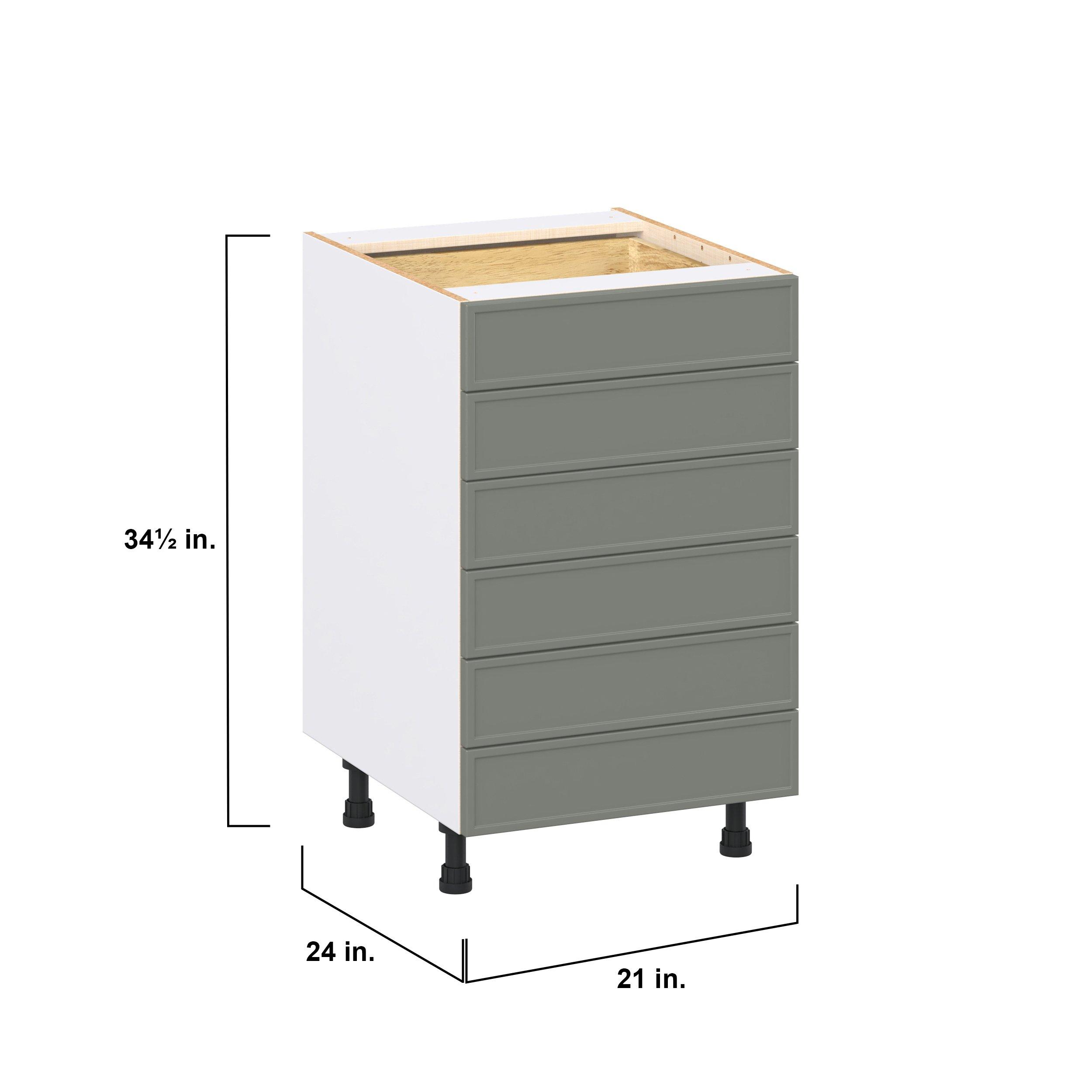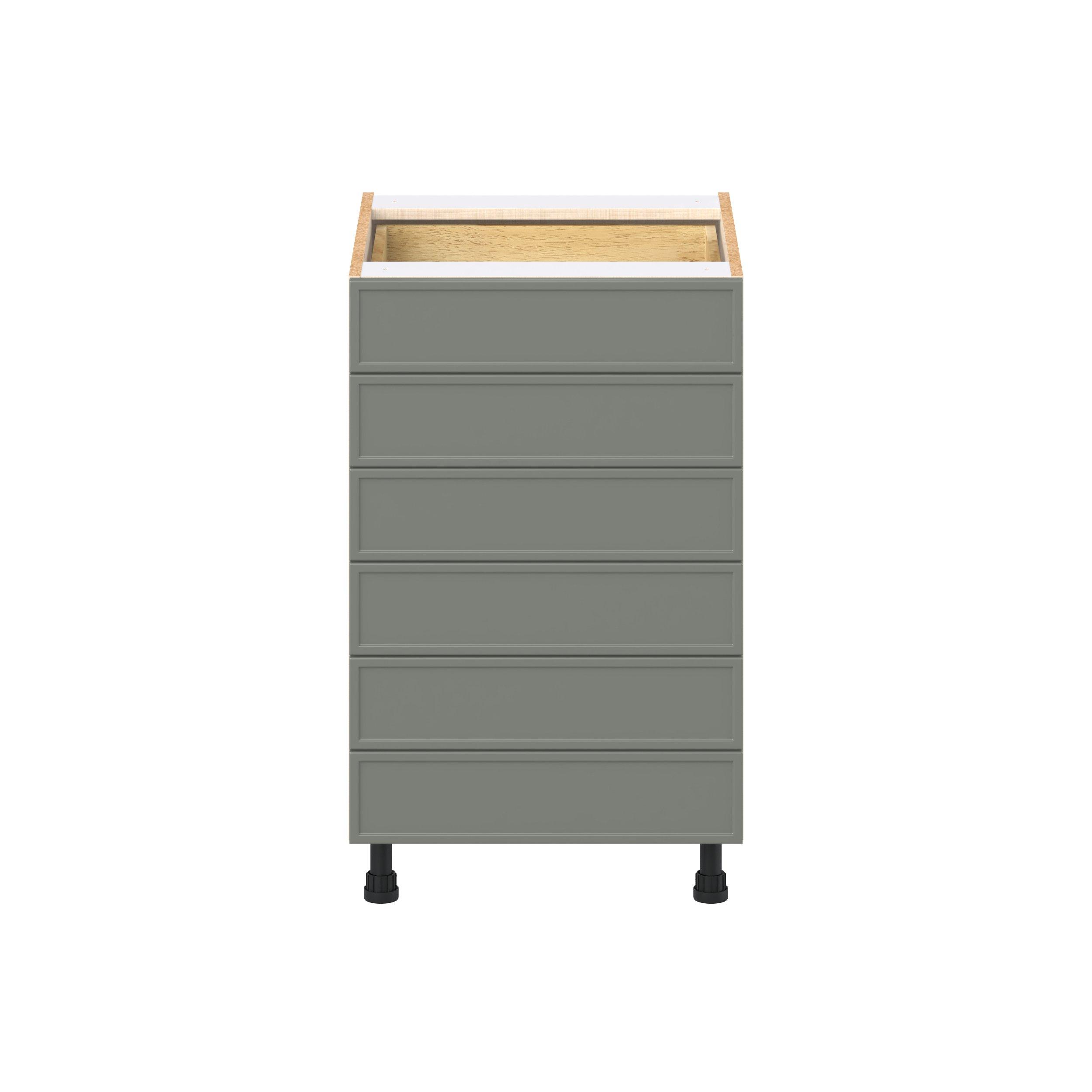 Enjoy a modern twist on a classic with Linden slim shaker cabinets. Available in premium-painted fresh washed linen and earthy moss green finishes, this collection exudes warmth and creates an inviting atmosphere Crafted from one-piece MDF Studio Design Collection Linden 21 in. Painted Moss Green Drawer Base Cabinet is designed to resist hairline cracks while the easy-to-clean finish stands up to stains and moisture. Featuring 5-piece doors and dovetail drawer joints, these cabinets offer durability and elegance. This collection combines style with everyday storage solutions.
