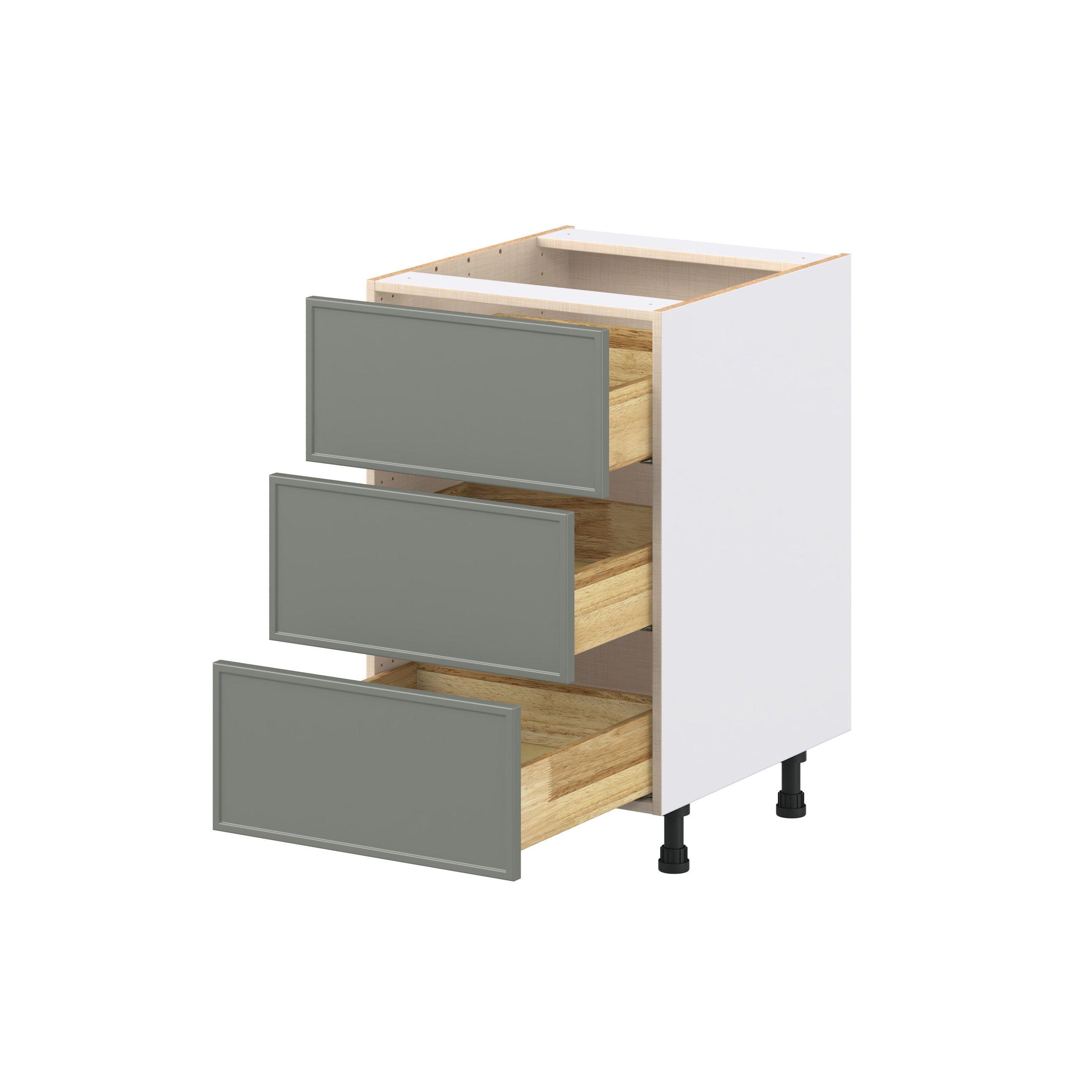Enjoy a modern twist on a classic with Linden slim shaker cabinets. Available in premium-painted fresh washed linen and earthy moss green finishes, this collection exudes warmth and creates an inviting atmosphere Crafted from one-piece MDF Studio Design Collection Linden 21 in. Painted Moss Green Drawer Base Cabinet is designed to resist hairline cracks while the easy-to-clean finish stands up to stains and moisture. Featuring 5-piece doors and dovetail drawer joints, these cabinets offer durability and elegance. This collection combines style with everyday storage solutions.