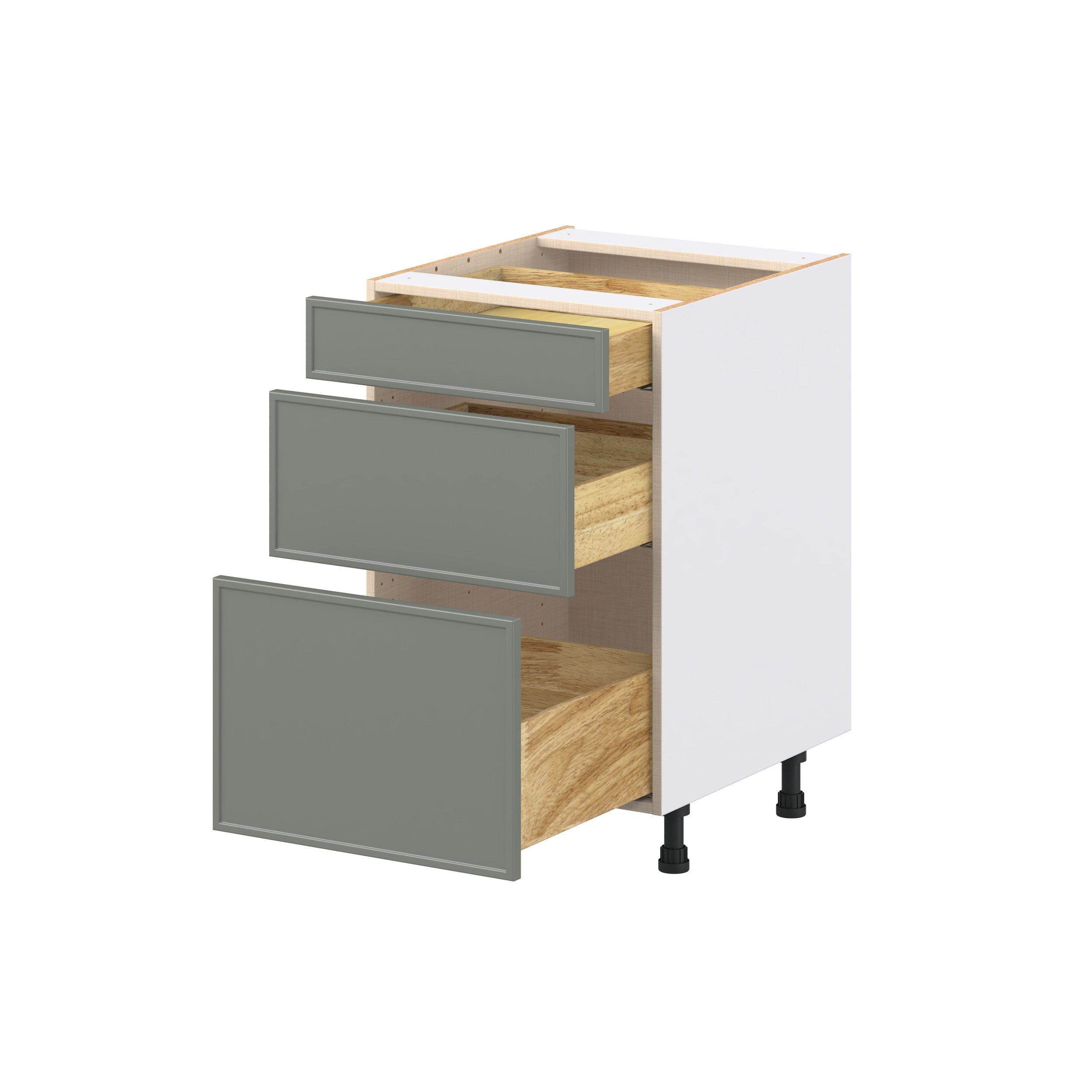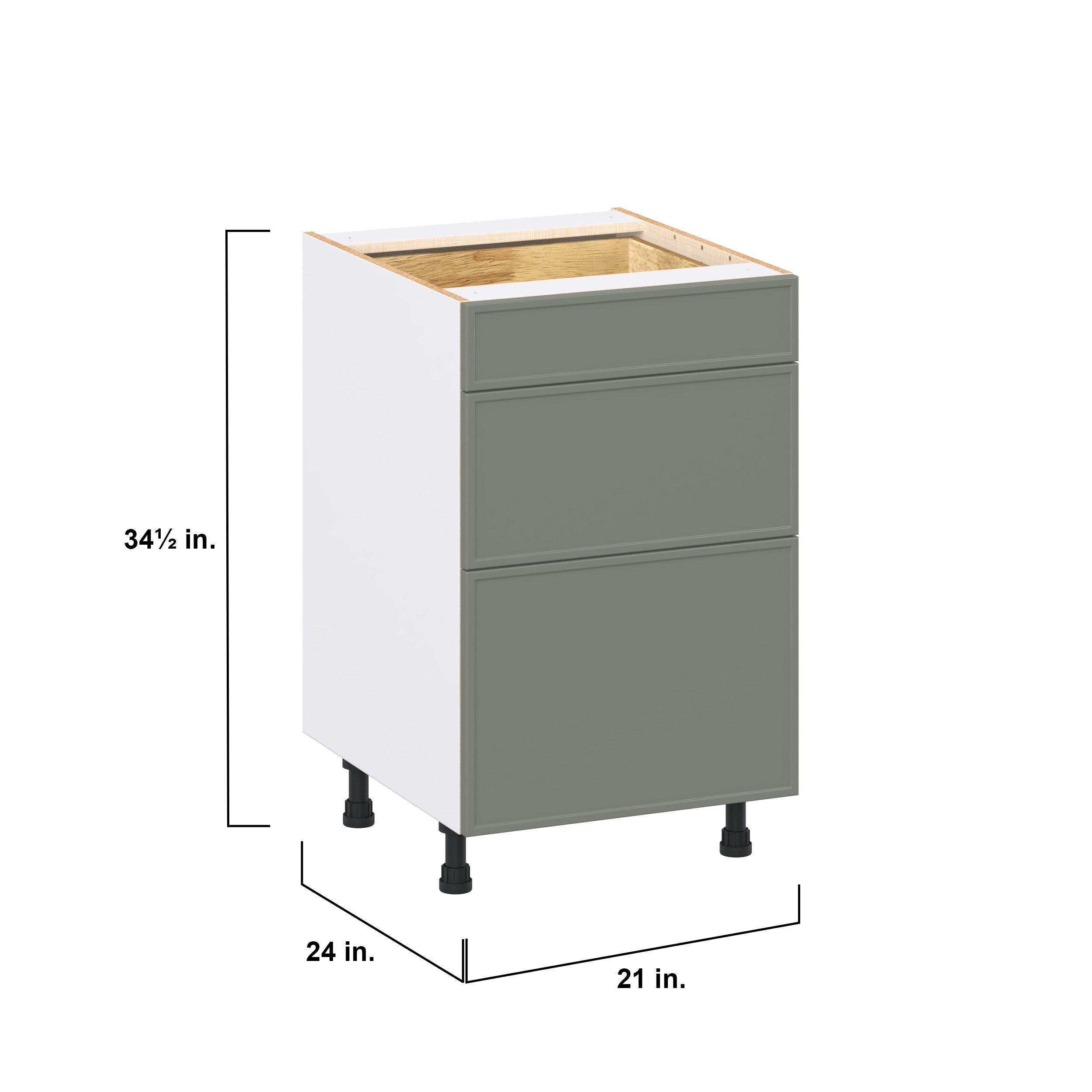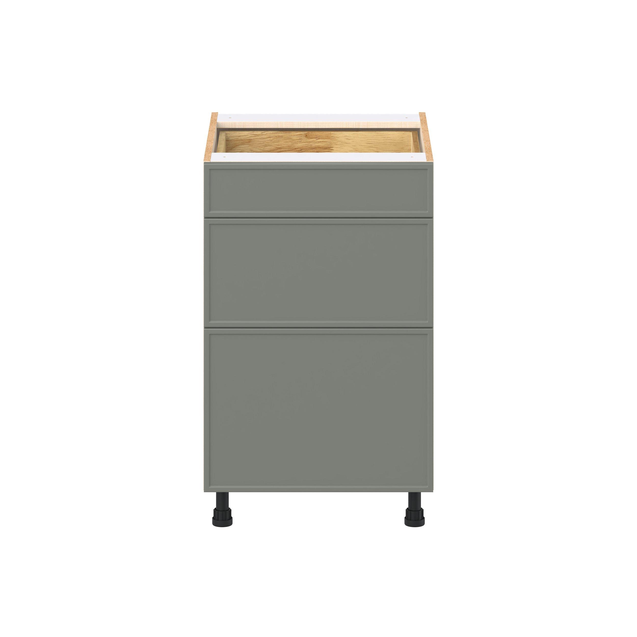 Enjoy a modern twist on a classic with Linden slim shaker cabinets. Available in premium-painted fresh washed linen and earthy moss green finishes, this collection exudes warmth and creates an inviting atmosphere Crafted from one-piece MDF Studio Design Collection Linden 21 in. Painted Moss Green Drawer Base Cabinet is designed to resist hairline cracks while the easy-to-clean finish stands up to stains and moisture. Featuring 5-piece doors and dovetail drawer joints, these cabinets offer durability and elegance. This collection combines style with everyday storage solutions.