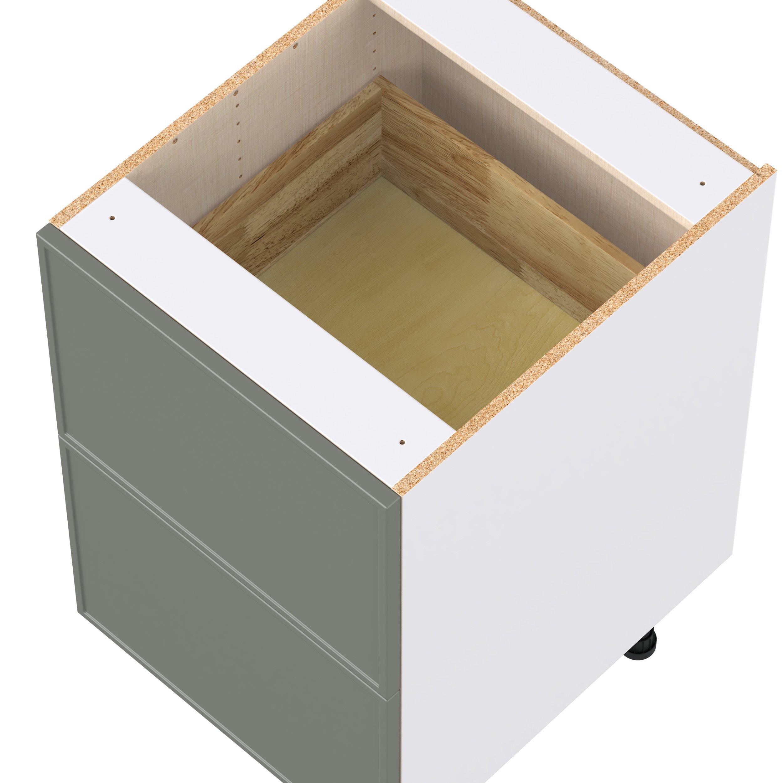 Enjoy a modern twist on a classic with Linden slim shaker cabinets. Available in premium-painted fresh washed linen and earthy moss green finishes, this collection exudes warmth and creates an inviting atmosphere Crafted from one-piece MDF Studio Design Collection Linden 21 in. Painted Moss Green Drawer Base Cabinet is designed to resist hairline cracks while the easy-to-clean finish stands up to stains and moisture. Featuring 5-piece doors and dovetail drawer joints, these cabinets offer durability and elegance. This collection combines style with everyday storage solutions.