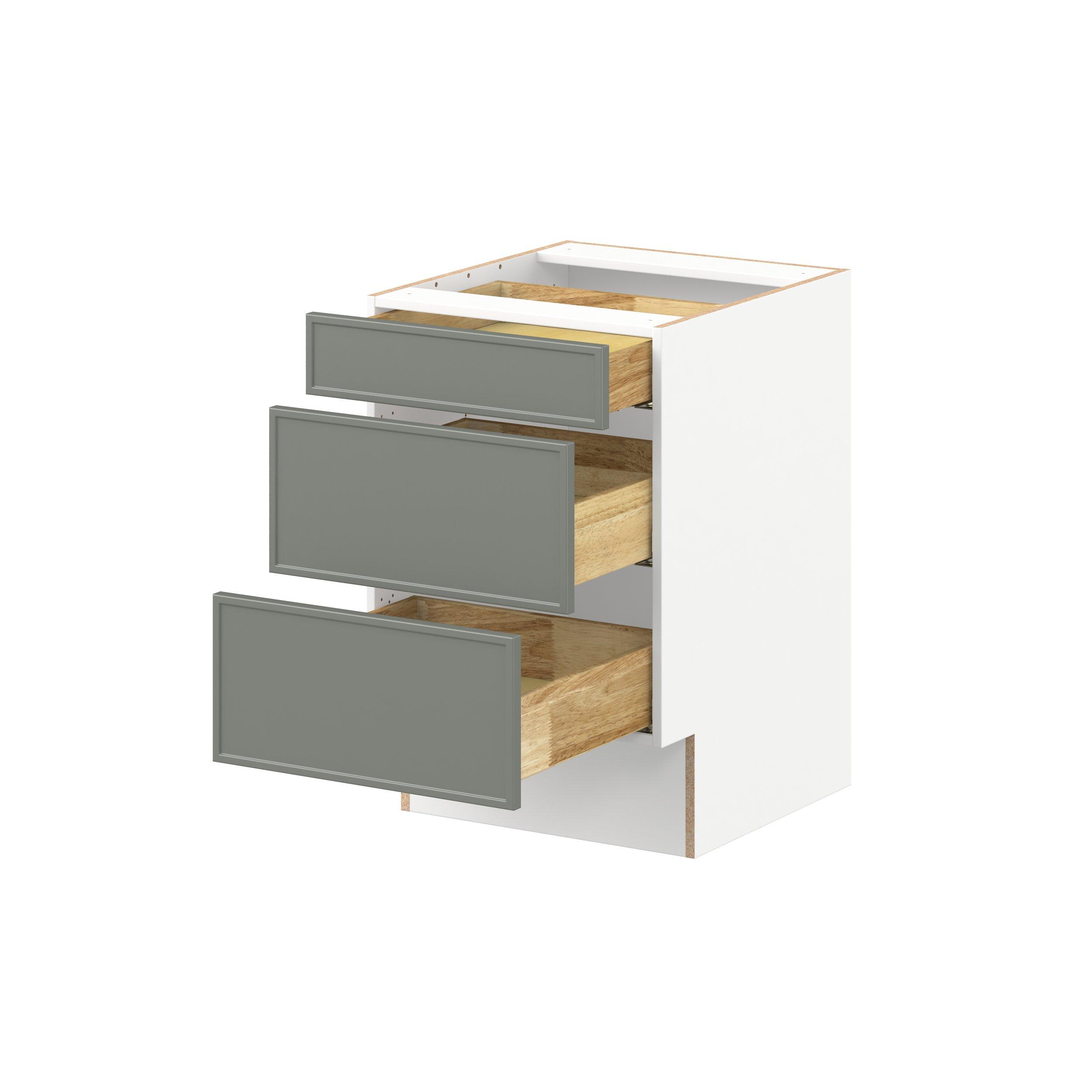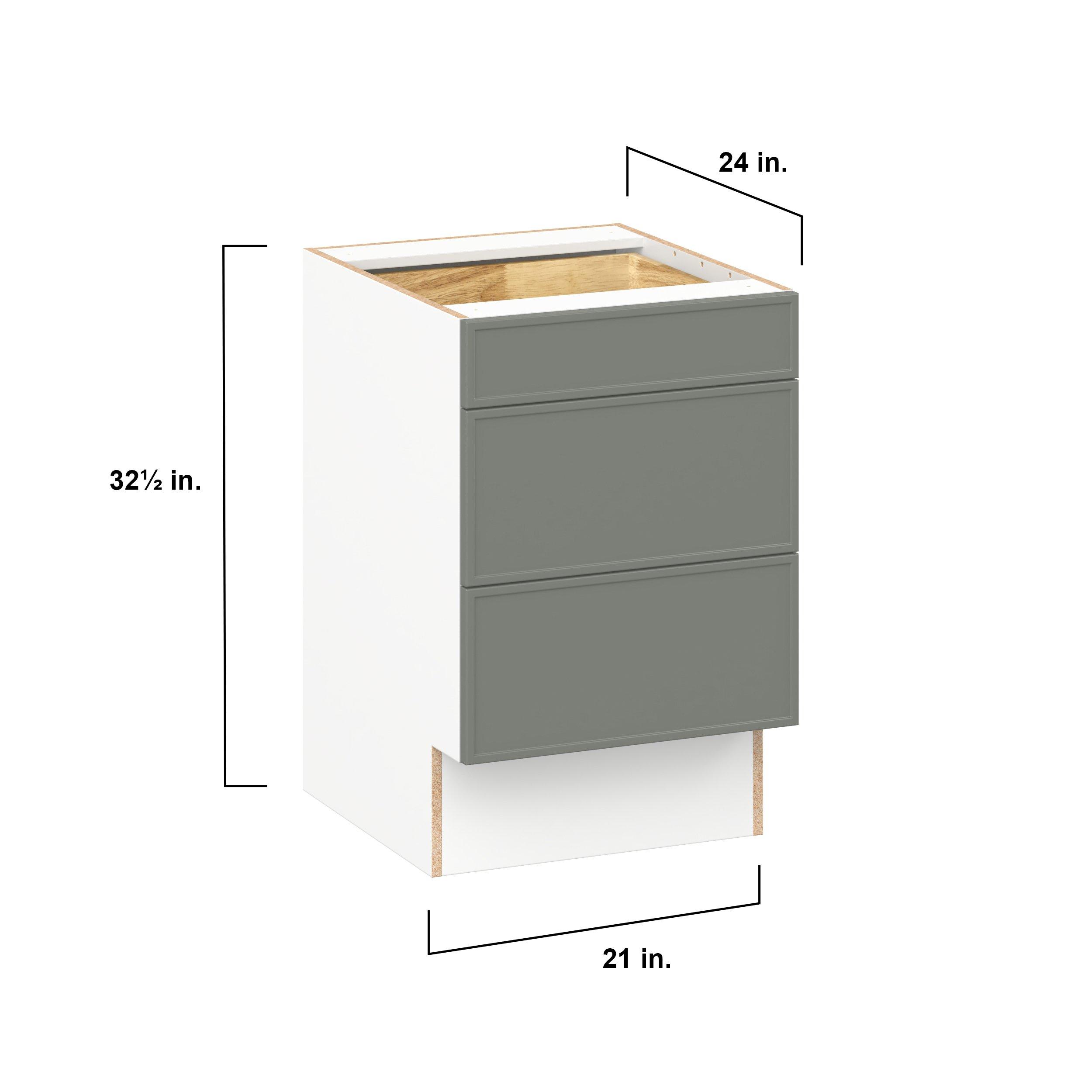 Enjoy a modern twist on a classic with Linden slim shaker cabinets. Available in premium-painted fresh washed linen and earthy moss green finishes, this collection exudes warmth and creates an inviting atmosphere Crafted from one-piece MDF Studio Design Collection Linden 21 in. Painted Moss Green Drawer Base Cabinet is designed to resist hairline cracks while the easy-to-clean finish stands up to stains and moisture. Featuring 5-piece doors and dovetail drawer joints, these cabinets offer durability and elegance. This collection combines style with everyday storage solutions.