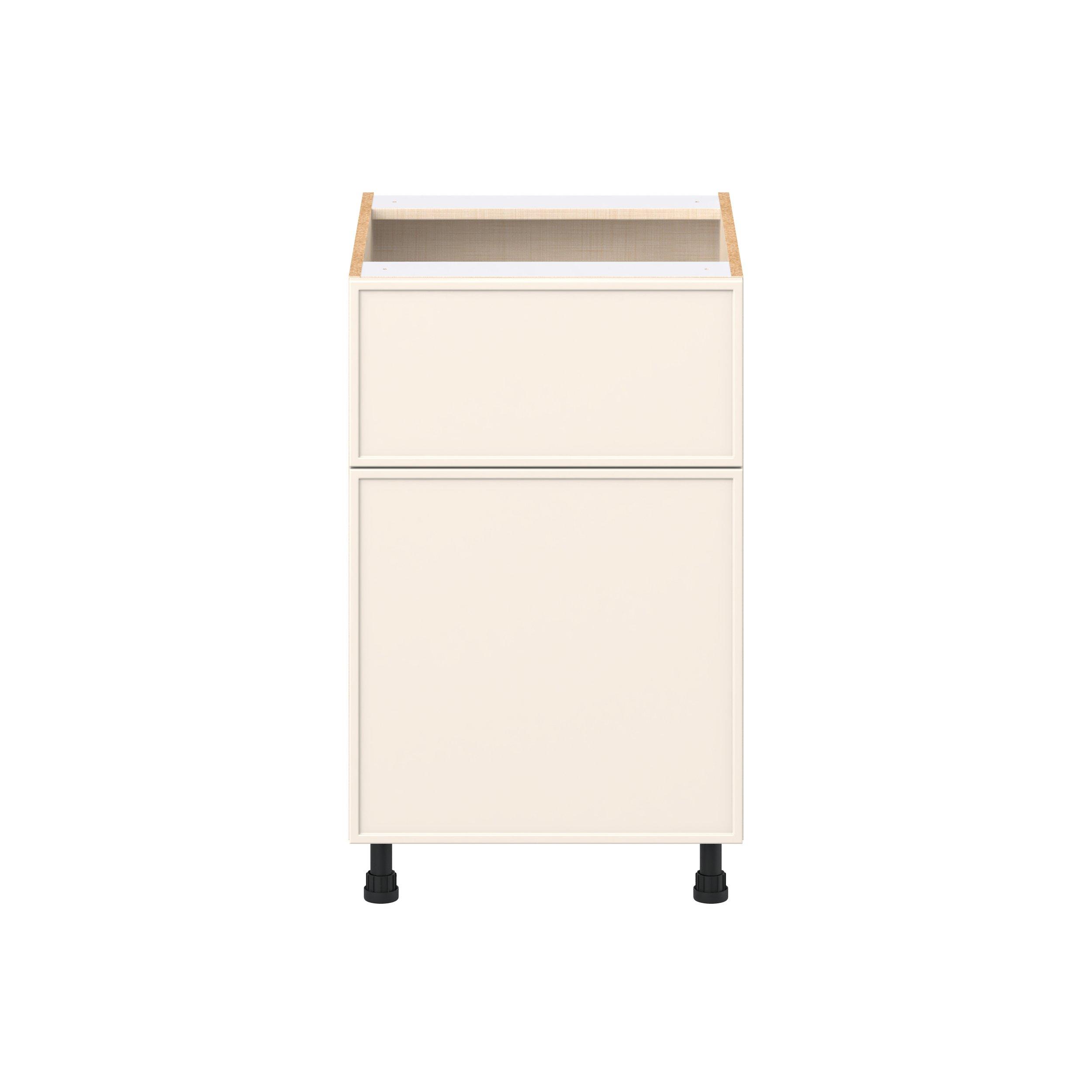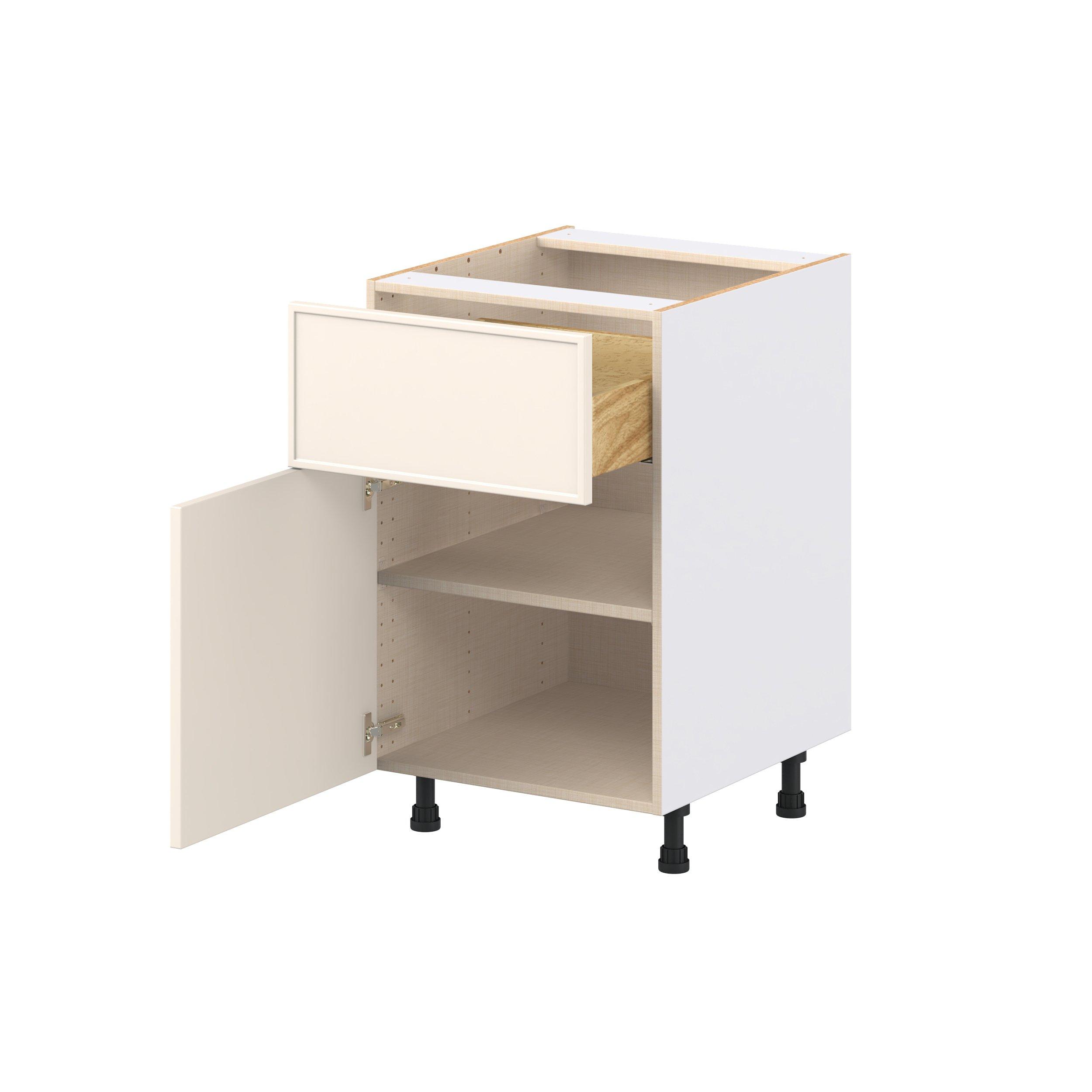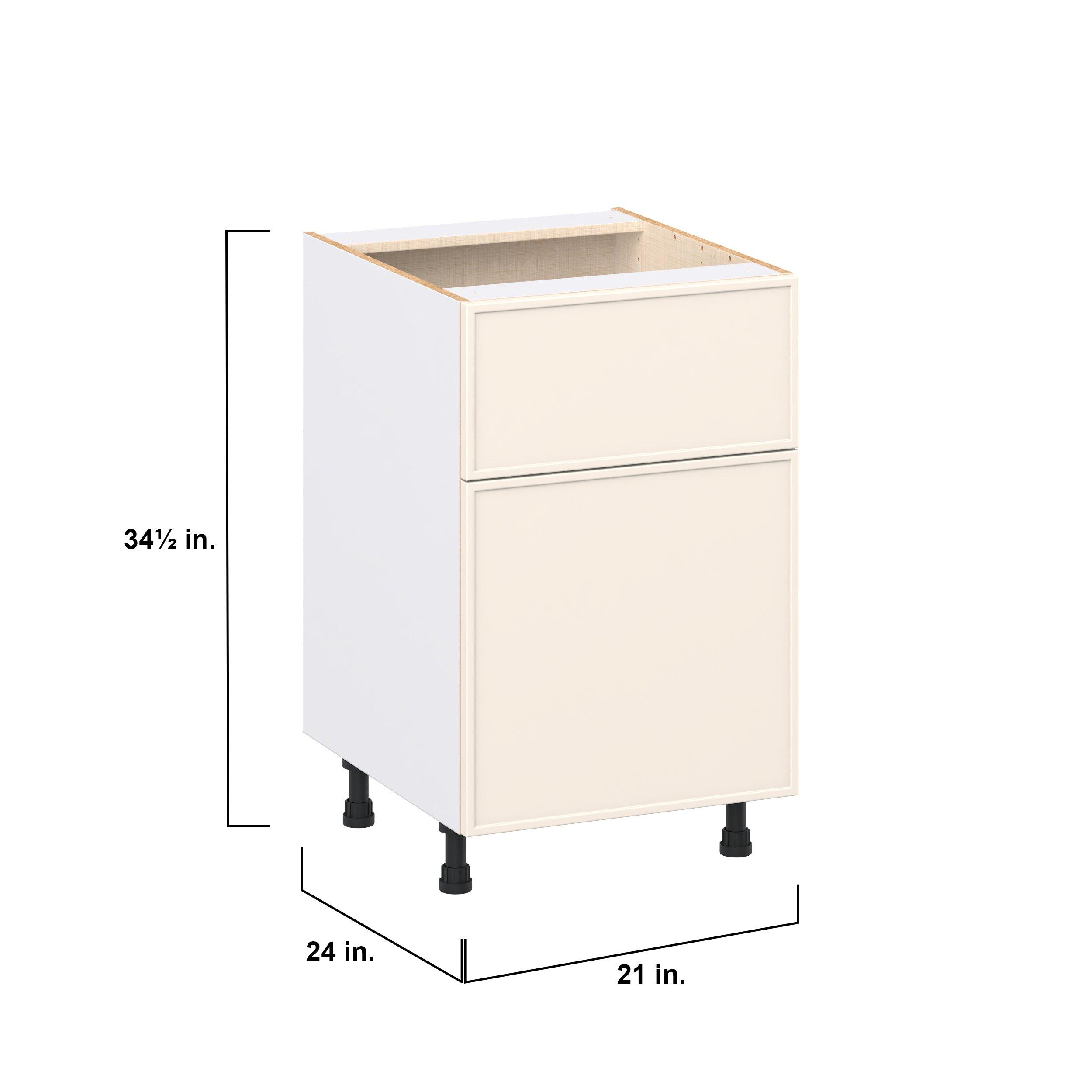 Enjoy a modern twist on a classic with Linden slim shaker cabinets. Available in premium-painted fresh washed linen and earthy moss green finishes, this collection exudes warmth and creates an inviting atmosphere Crafted from one-piece MDF Studio Design Collection Linden 21 in. Painted Washed Linen Door and Drawer Base Cabinet is designed to resist hairline cracks while the easy-to-clean finish stands up to stains and moisture. Featuring 5-piece doors and dovetail drawer joints, these cabinets offer durability and elegance. This collection combines style with everyday storage solutions.