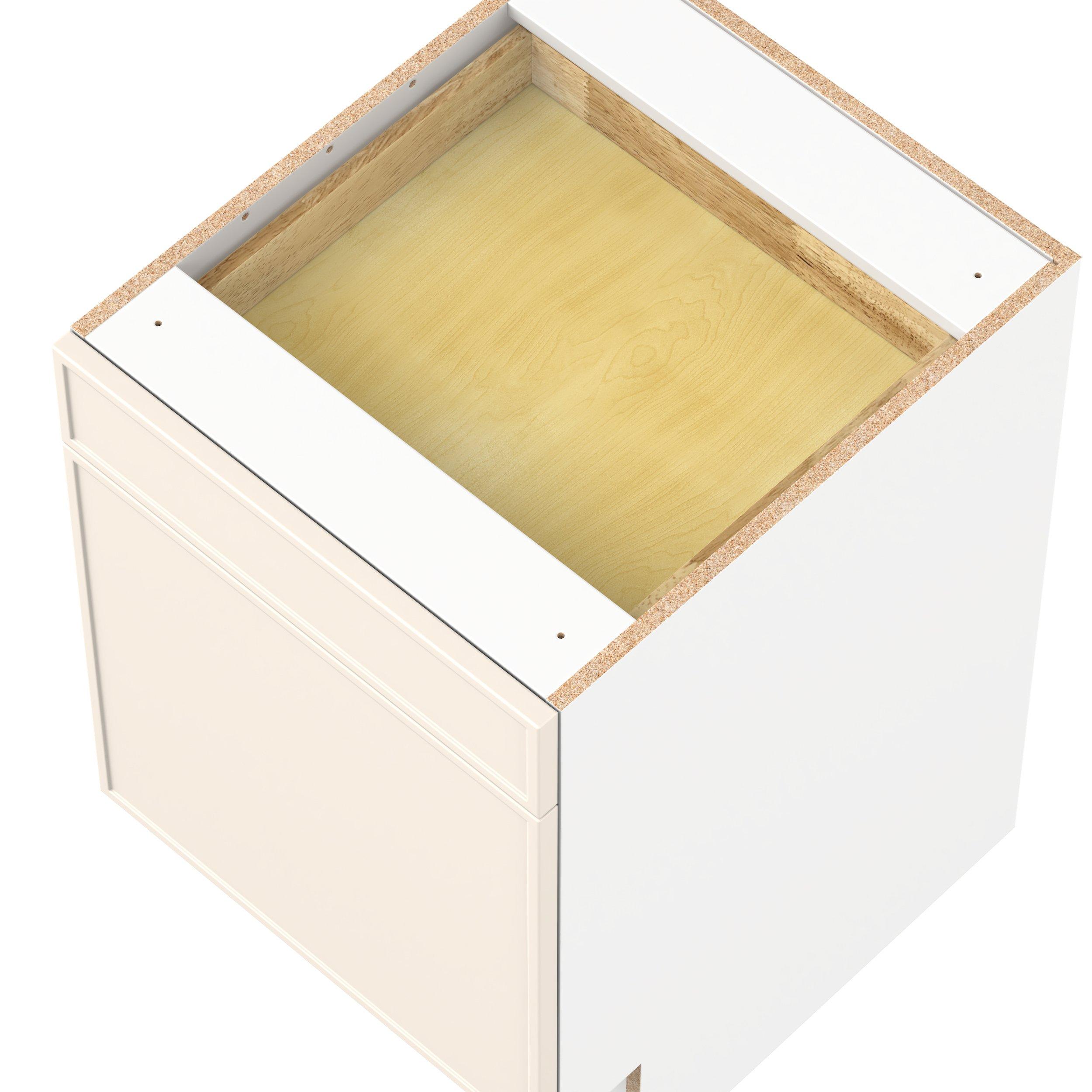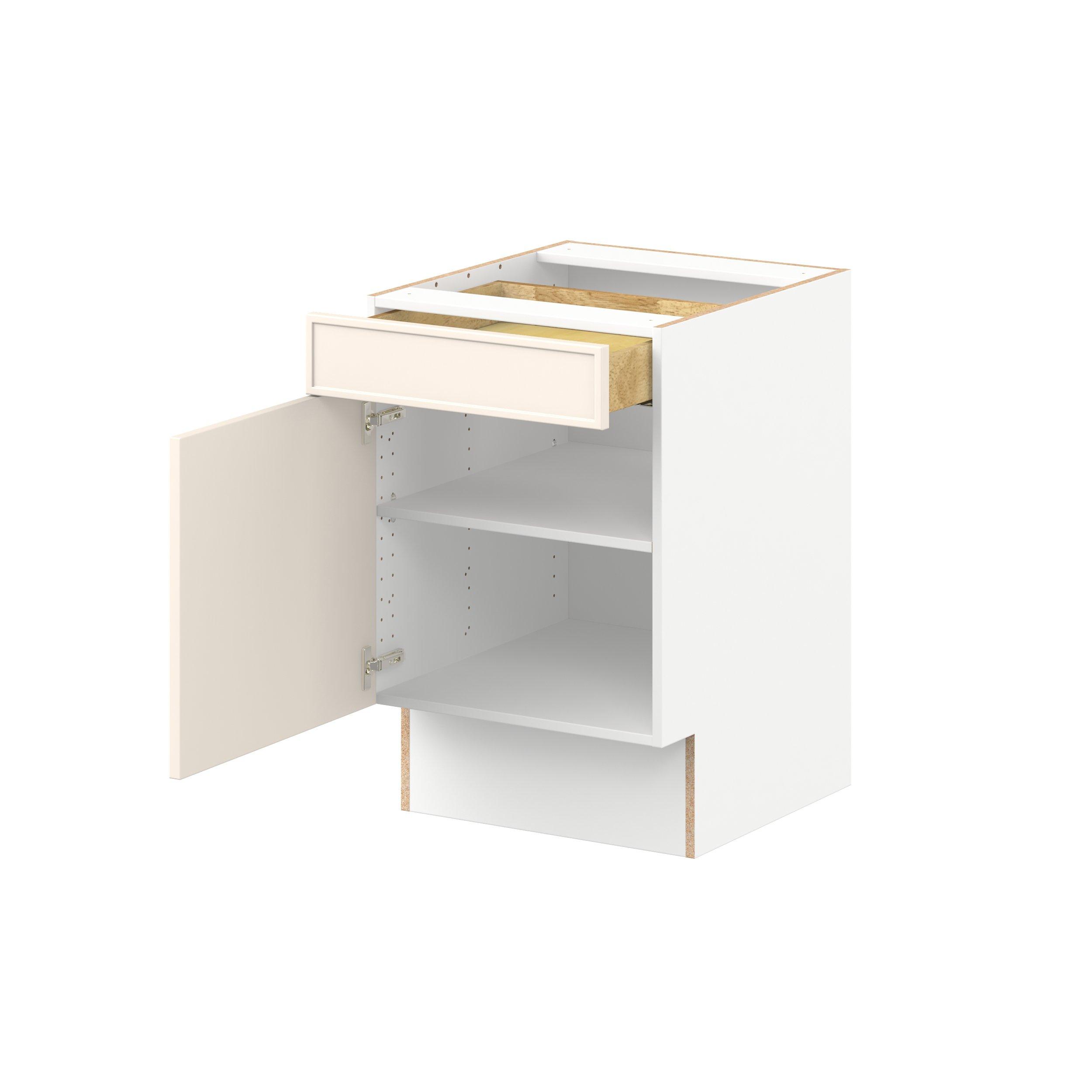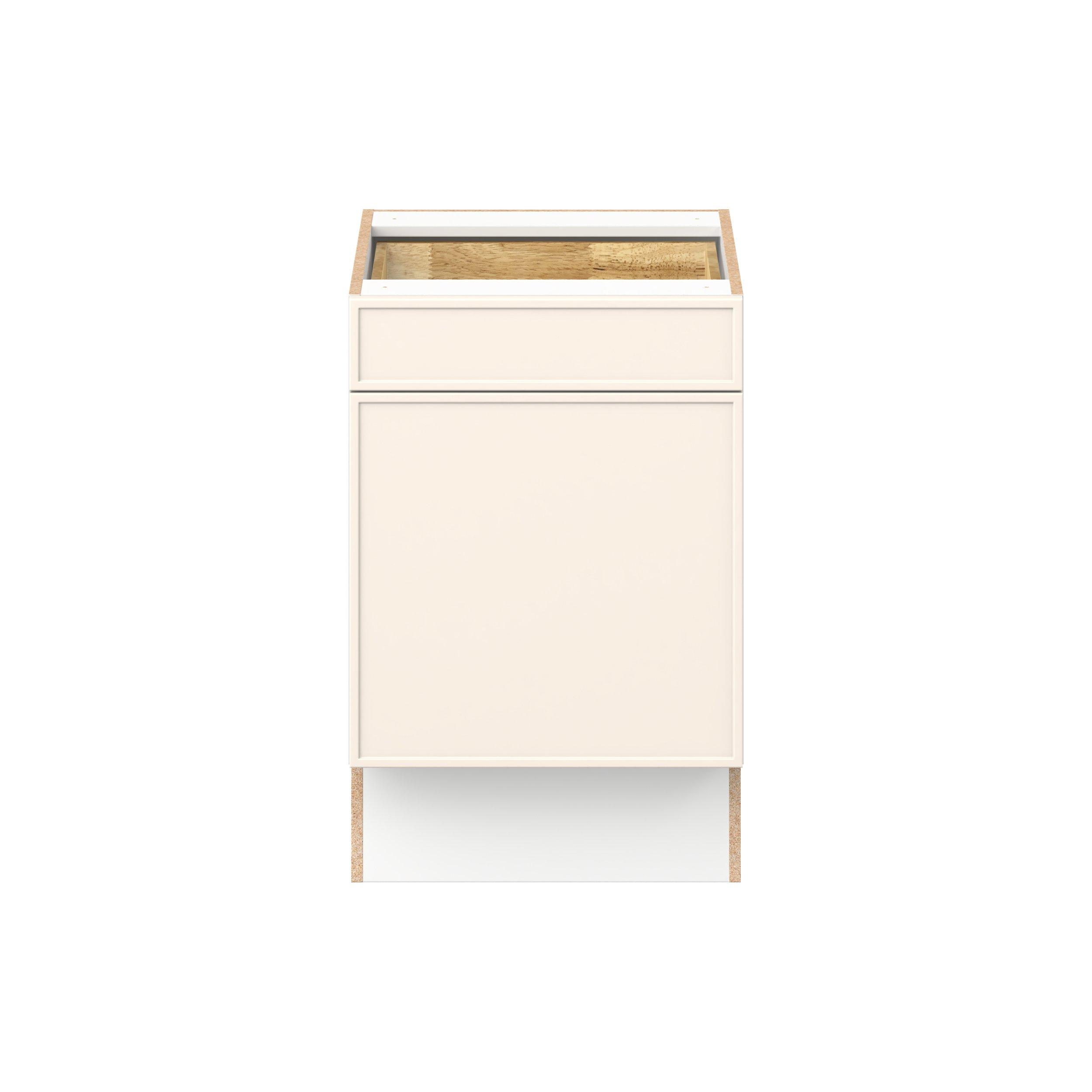 Enjoy a modern twist on a classic with Linden slim shaker cabinets. Available in premium-painted fresh washed linen and earthy moss green finishes, this collection exudes warmth and creates an inviting atmosphere Crafted from one-piece MDF Studio Design Collection Linden 21 in. Painted Washed Linen Door and Drawer Base Cabinet is designed to resist hairline cracks while the easy-to-clean finish stands up to stains and moisture. Featuring 5-piece doors and dovetail drawer joints, these cabinets offer durability and elegance. This collection combines style with everyday storage solutions.