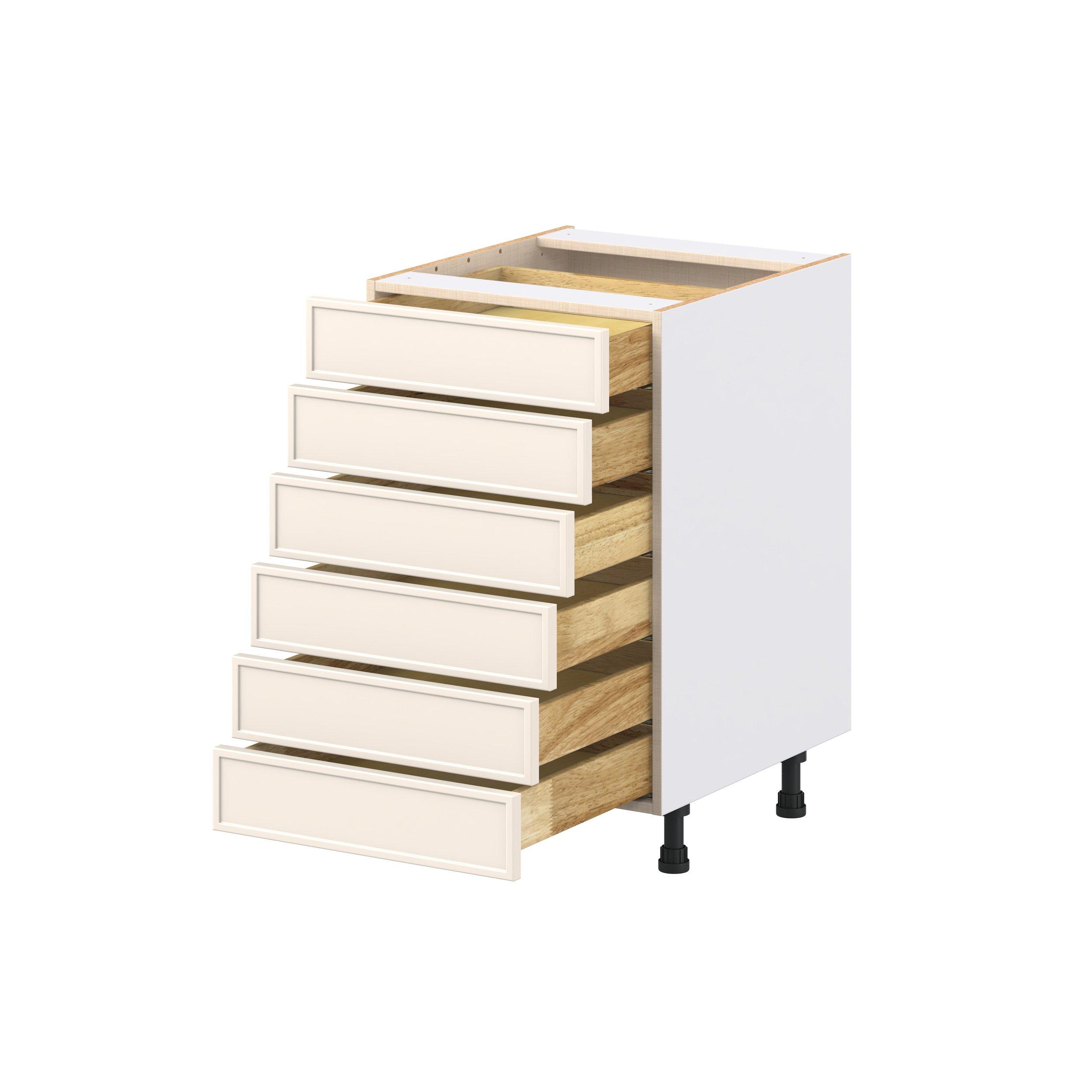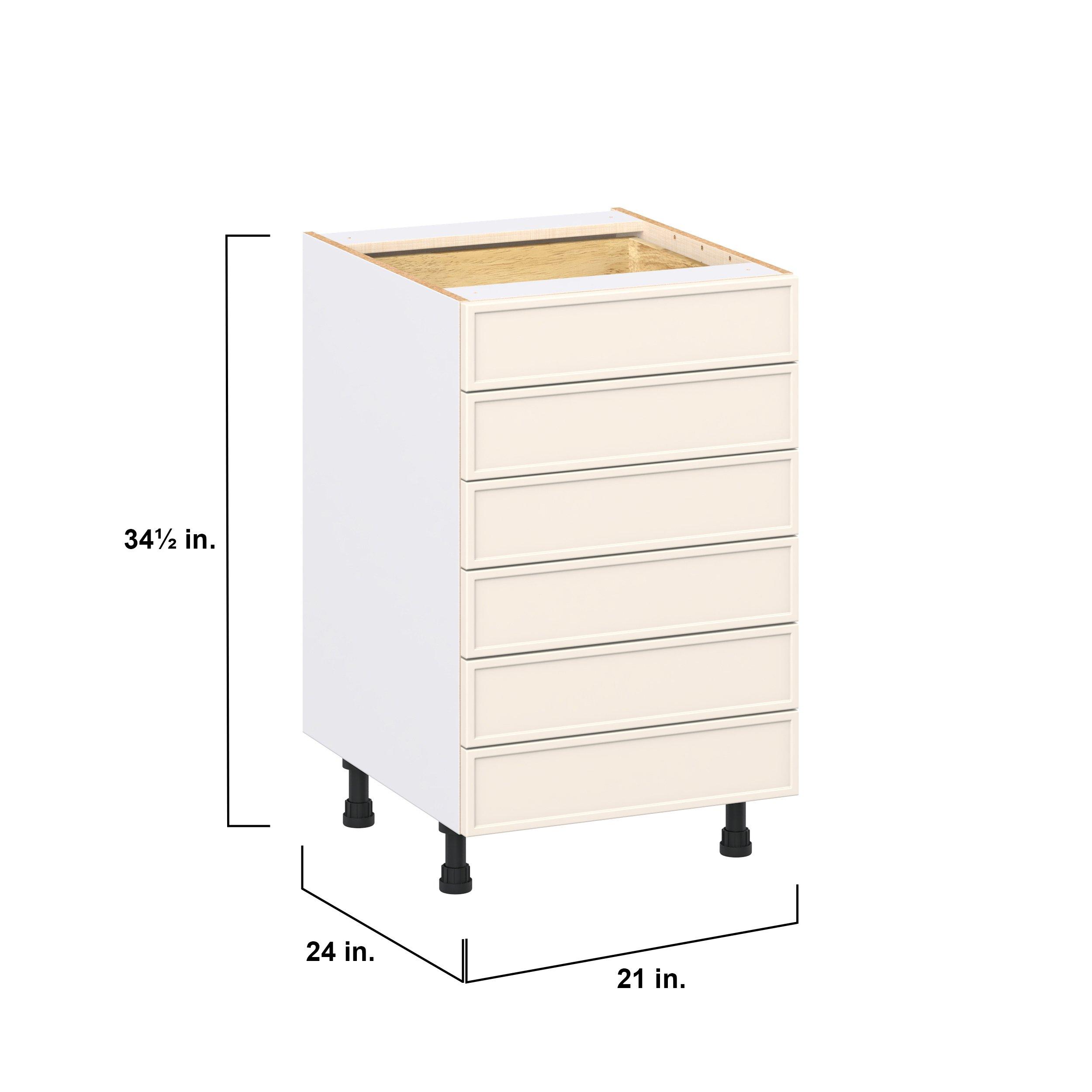Enjoy a modern twist on a classic with Linden slim shaker cabinets. Available in premium-painted fresh washed linen and earthy moss green finishes, this collection exudes warmth and creates an inviting atmosphere Crafted from one-piece MDF Studio Design Collection Linden 21 in. Painted Washed Linen Drawer Base Cabinet is designed to resist hairline cracks while the easy-to-clean finish stands up to stains and moisture. Featuring 5-piece doors and dovetail drawer joints, these cabinets offer durability and elegance. This collection combines style with everyday storage solutions.