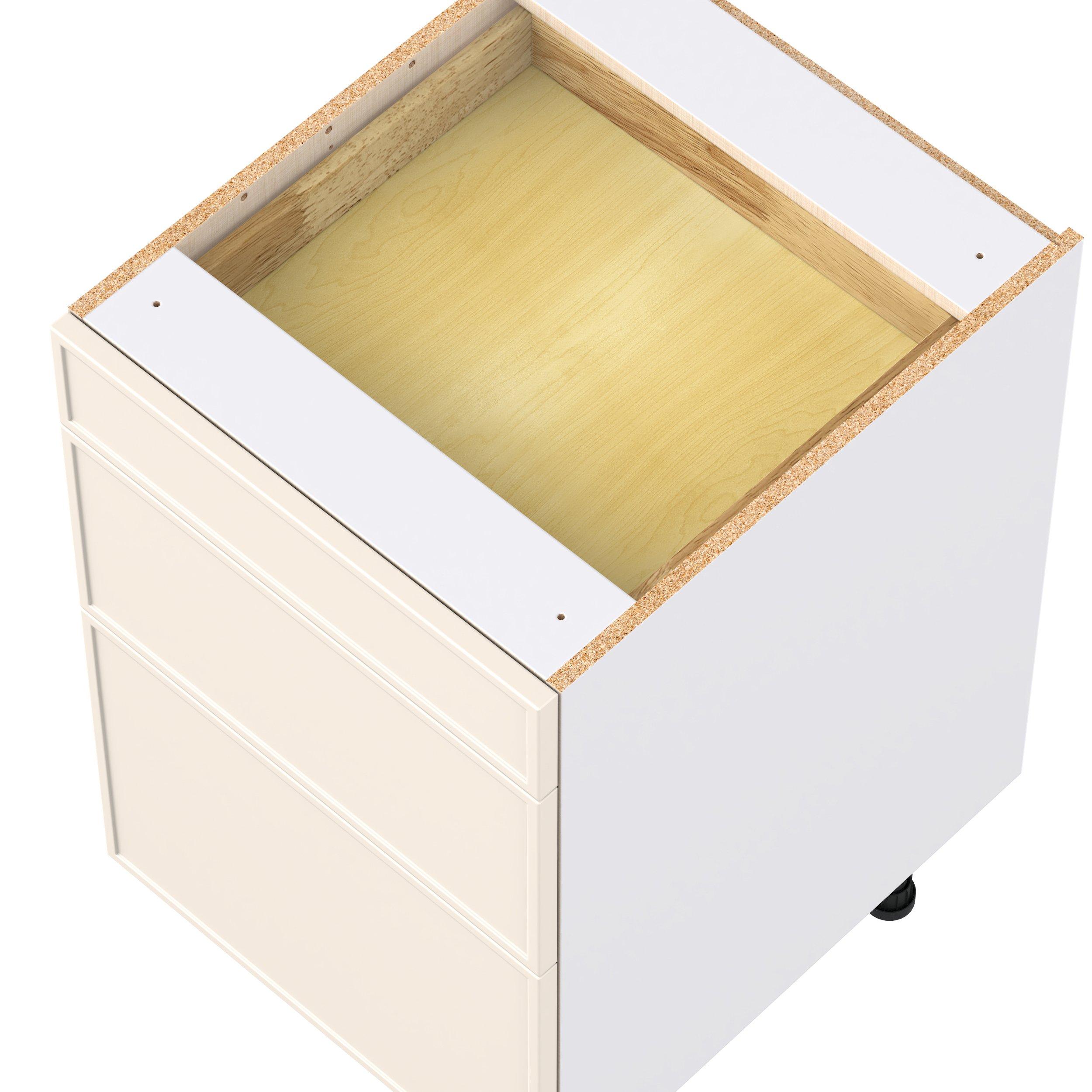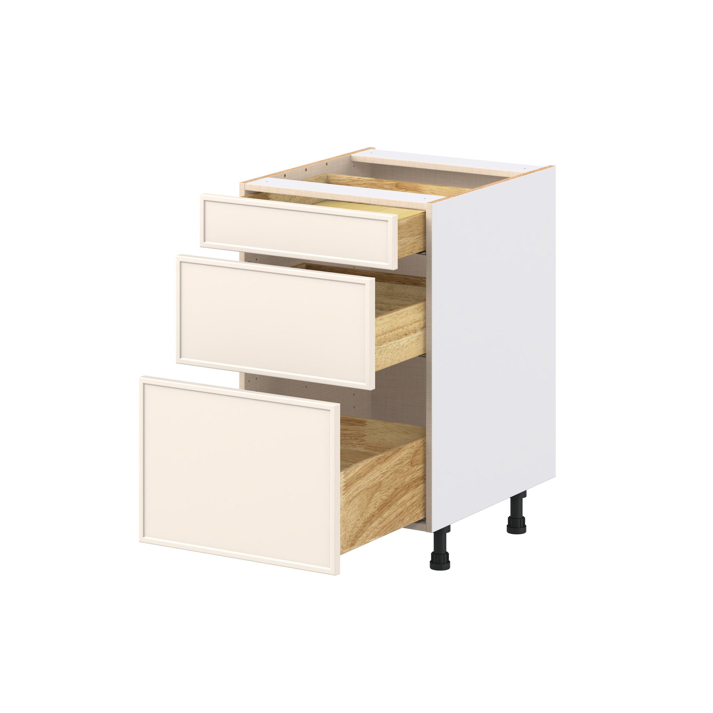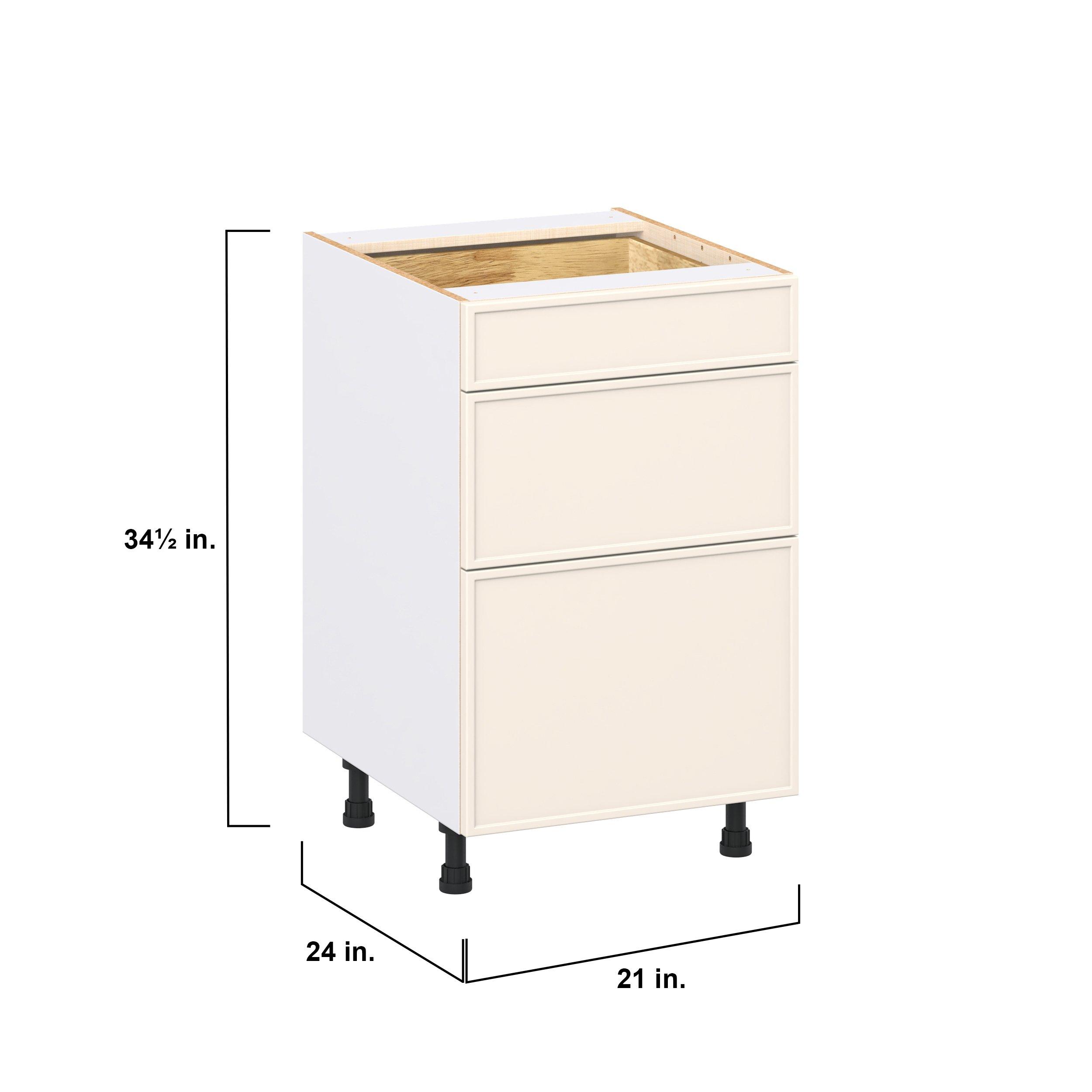 Enjoy a modern twist on a classic with Linden slim shaker cabinets. Available in premium-painted fresh washed linen and earthy moss green finishes, this collection exudes warmth and creates an inviting atmosphere Crafted from one-piece MDF Studio Design Collection Linden 21 in. Painted Washed Linen Drawer Base Cabinet is designed to resist hairline cracks while the easy-to-clean finish stands up to stains and moisture. Featuring 5-piece doors and dovetail drawer joints, these cabinets offer durability and elegance. This collection combines style with everyday storage solutions.