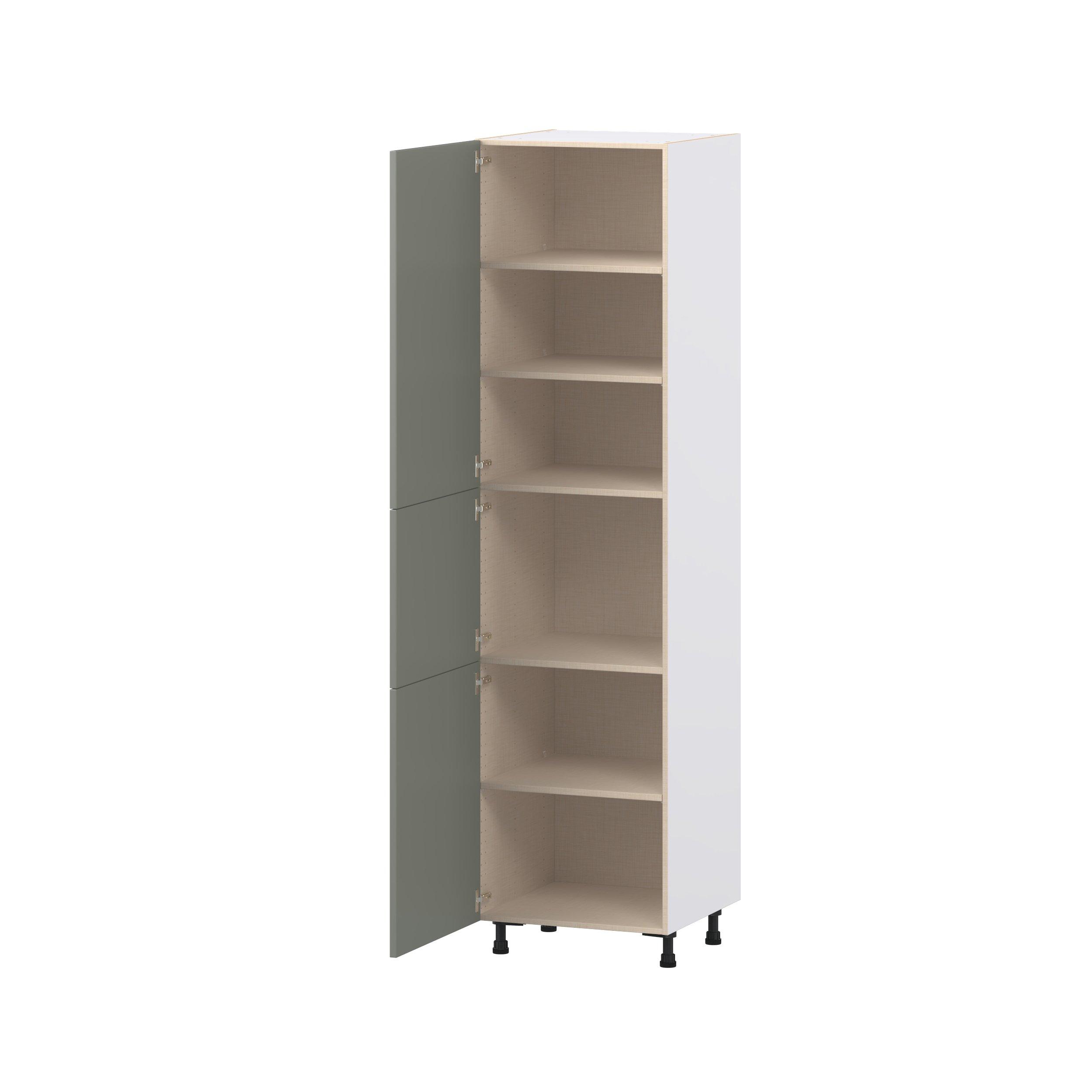 Enjoy a modern twist on a classic with Linden slim shaker cabinets. Available in premium-painted fresh washed linen and earthy moss green finishes, this collection exudes warmth and creates an inviting atmosphere Crafted from one-piece MDF Studio Design Collection Linden 24 in. Painted Moss Green Door Pantry Cabinet is designed to resist hairline cracks while the easy-to-clean finish stands up to stains and moisture. Featuring 5-piece doors and dovetail drawer joints, these cabinets offer durability and elegance. This collection combines style with everyday storage solutions.