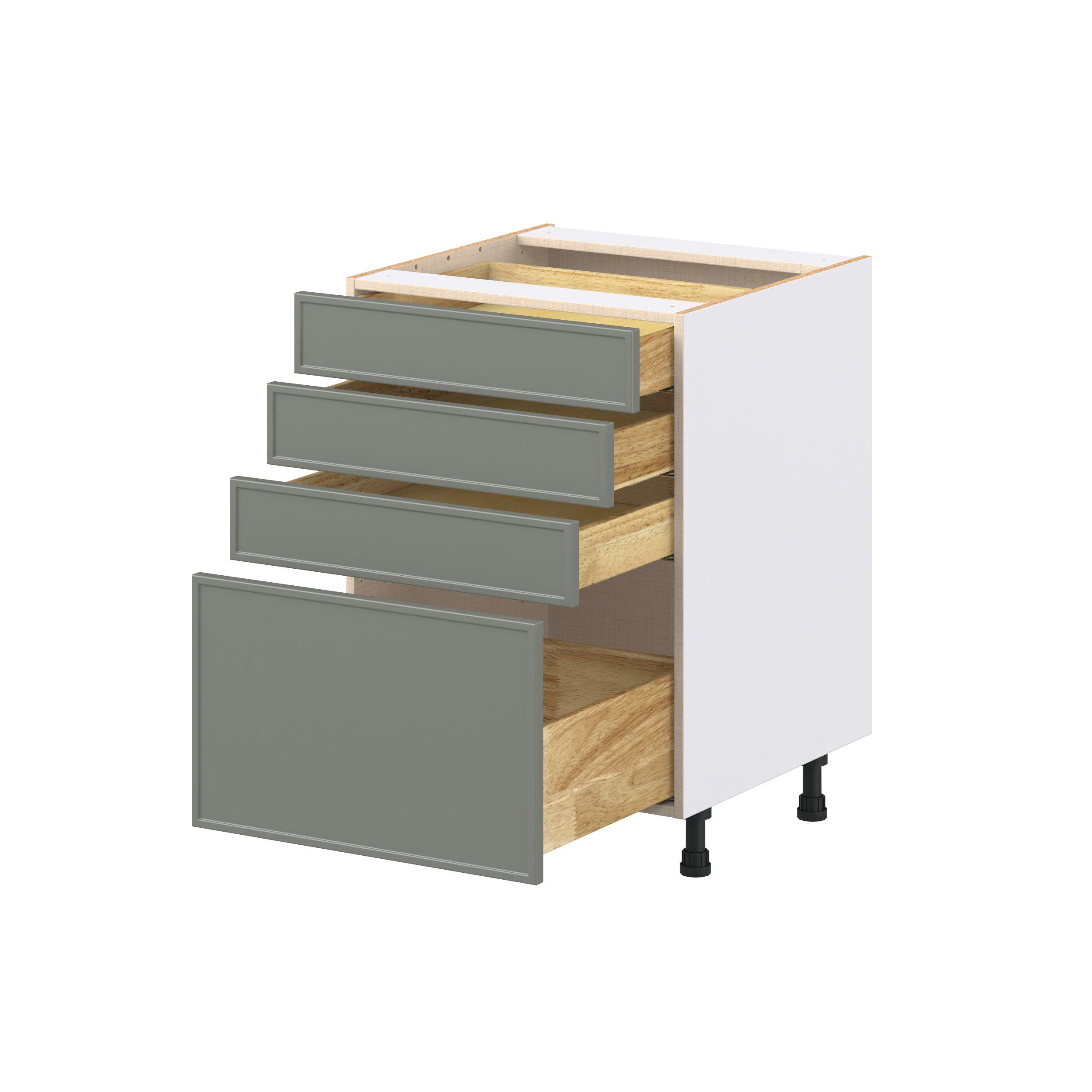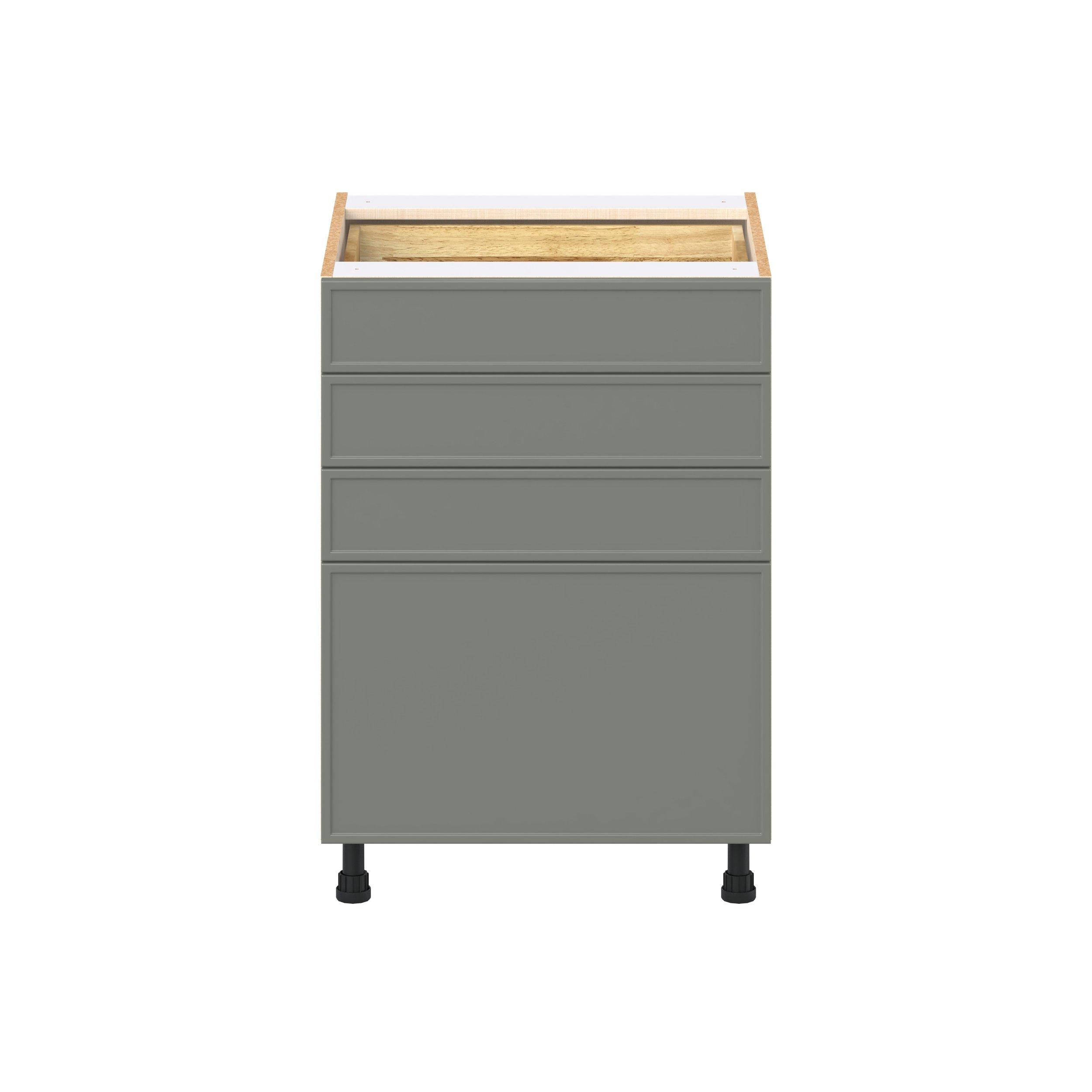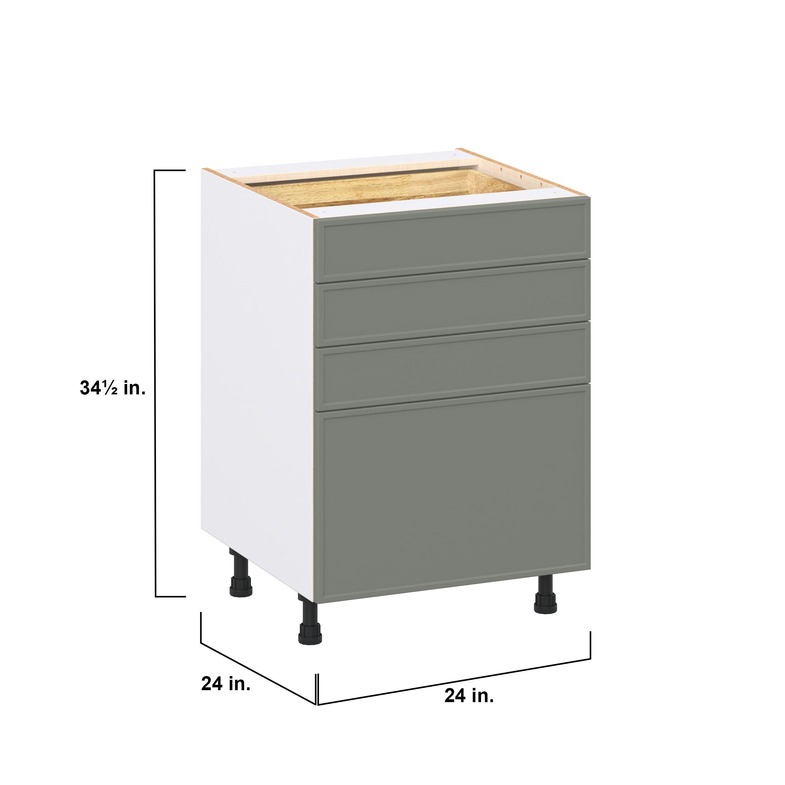 Enjoy a modern twist on a classic with Linden slim shaker cabinets. Available in premium-painted fresh washed linen and earthy moss green finishes, this collection exudes warmth and creates an inviting atmosphere Crafted from one-piece MDF Studio Design Collection Linden 24 in. Painted Moss Green Drawer Base Cabinet is designed to resist hairline cracks while the easy-to-clean finish stands up to stains and moisture. Featuring 5-piece doors and dovetail drawer joints, these cabinets offer durability and elegance. This collection combines style with everyday storage solutions.