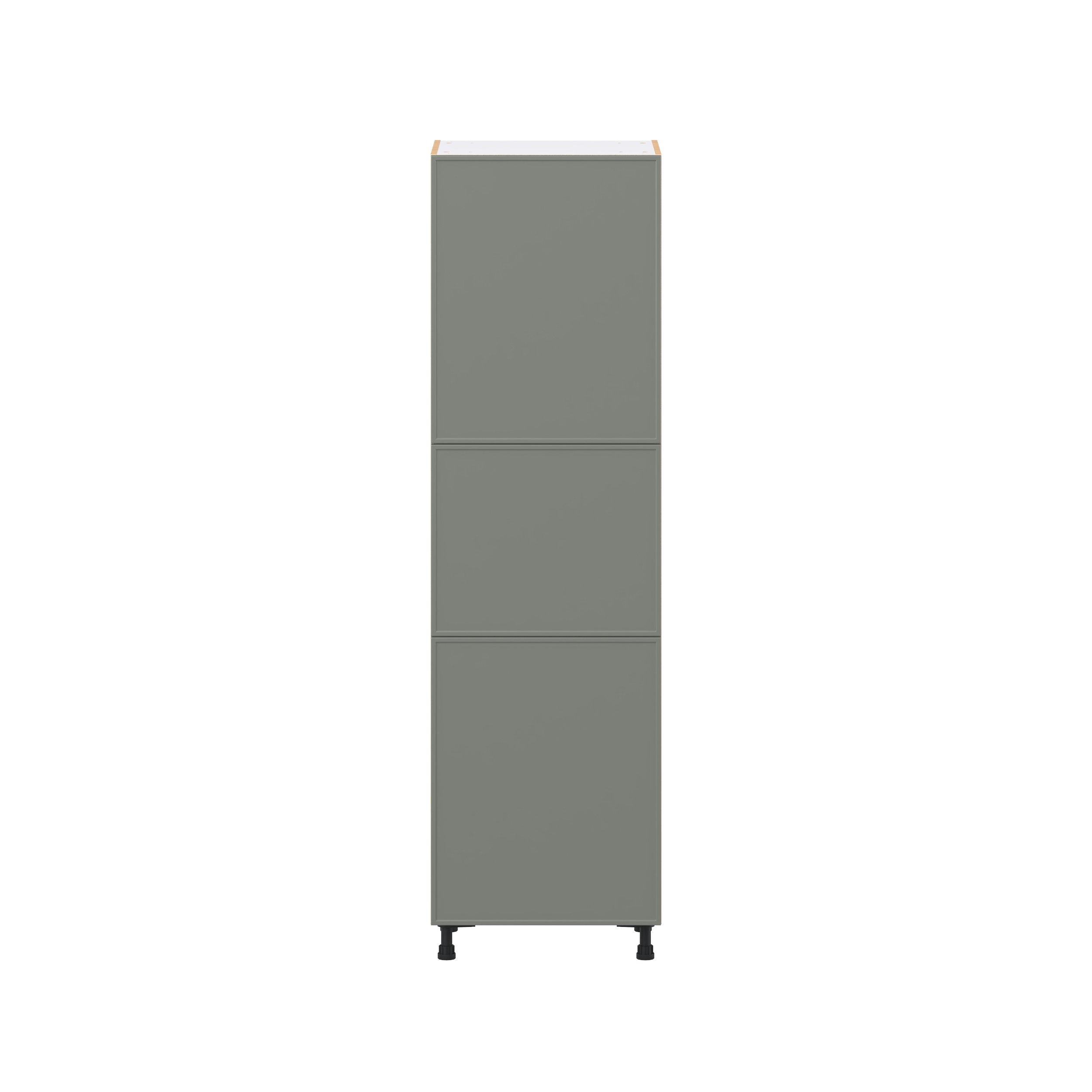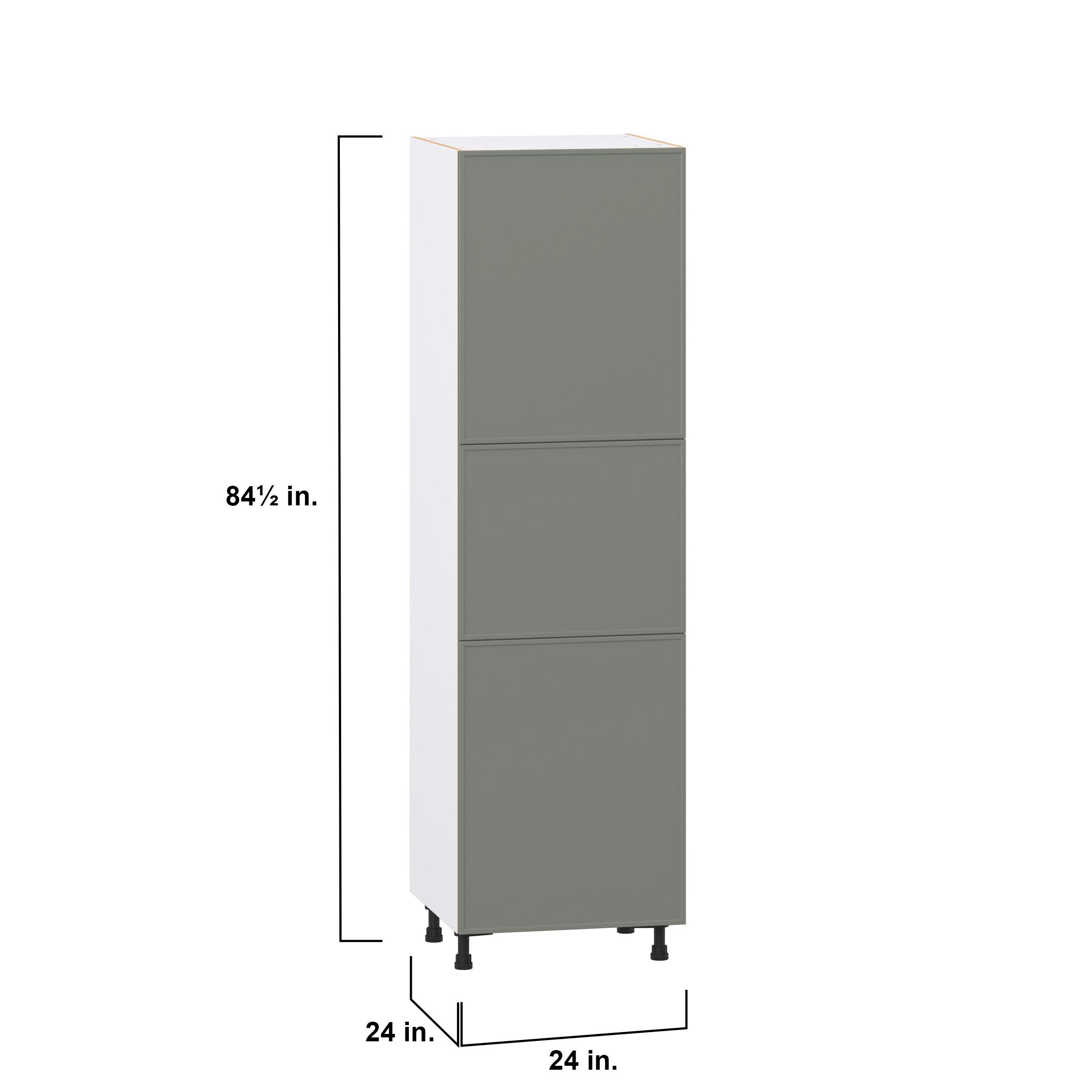 Enjoy a modern twist on a classic with Linden slim shaker cabinets. Available in premium-painted fresh washed linen and earthy moss green finishes, this collection exudes warmth and creates an inviting atmosphere Crafted from one-piece MDF Studio Design Collection Linden 24 in. Painted Moss Green Pantry Cabinet with Inner Pull-Out Drawer is designed to resist hairline cracks while the easy-to-clean finish stands up to stains and moisture. Featuring 5-piece doors and dovetail drawer joints, these cabinets offer durability and elegance. This collection combines style with everyday storage solutions.