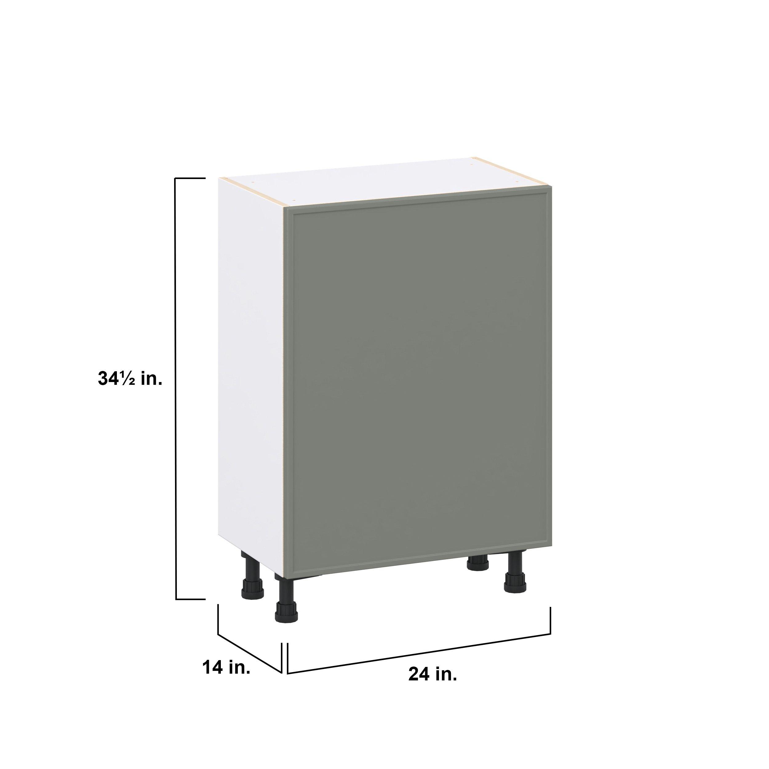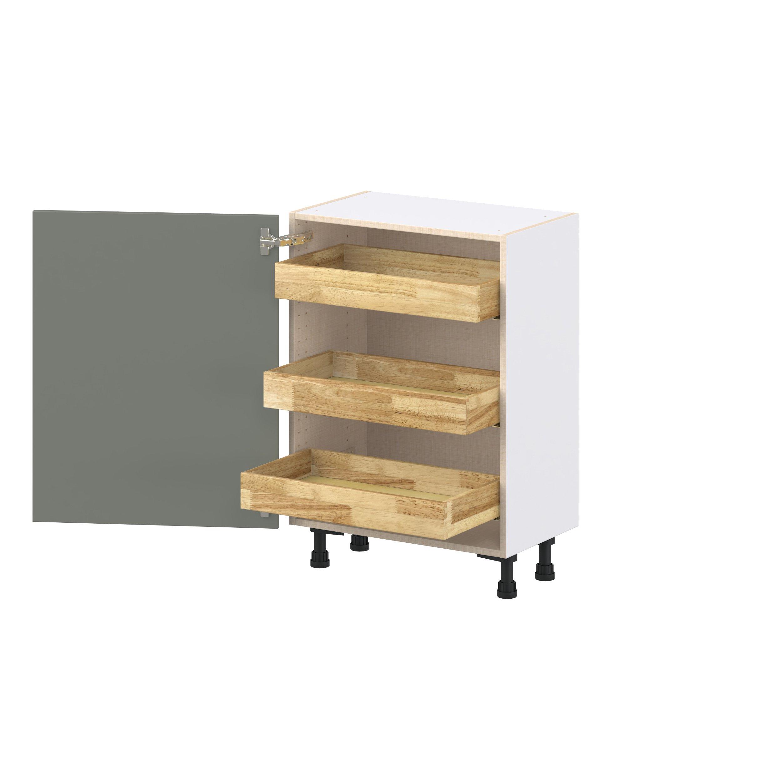 Enjoy a modern twist on a classic with Linden slim shaker cabinets. Available in premium-painted fresh washed linen and earthy moss green finishes, this collection exudes warmth and creates an inviting atmosphere Crafted from one-piece MDF Studio Design Collection Linden 24 in. Painted Moss Green Shallow Base Cabinet with Inner Pull-Out Drawer is designed to resist hairline cracks while the easy-to-clean finish stands up to stains and moisture. Featuring 5-piece doors and dovetail drawer joints, these cabinets offer durability and elegance. This collection combines style with everyday storage solutions.