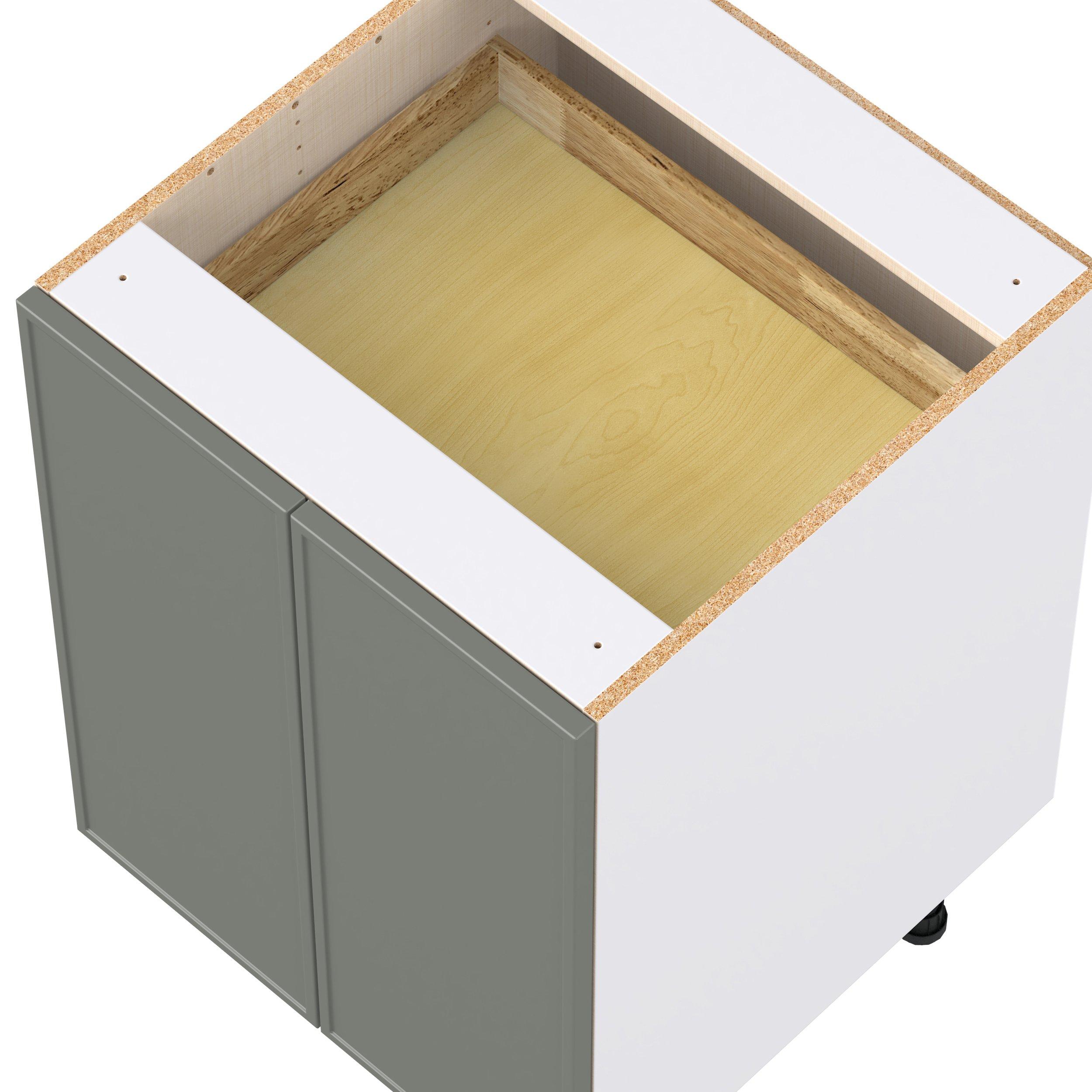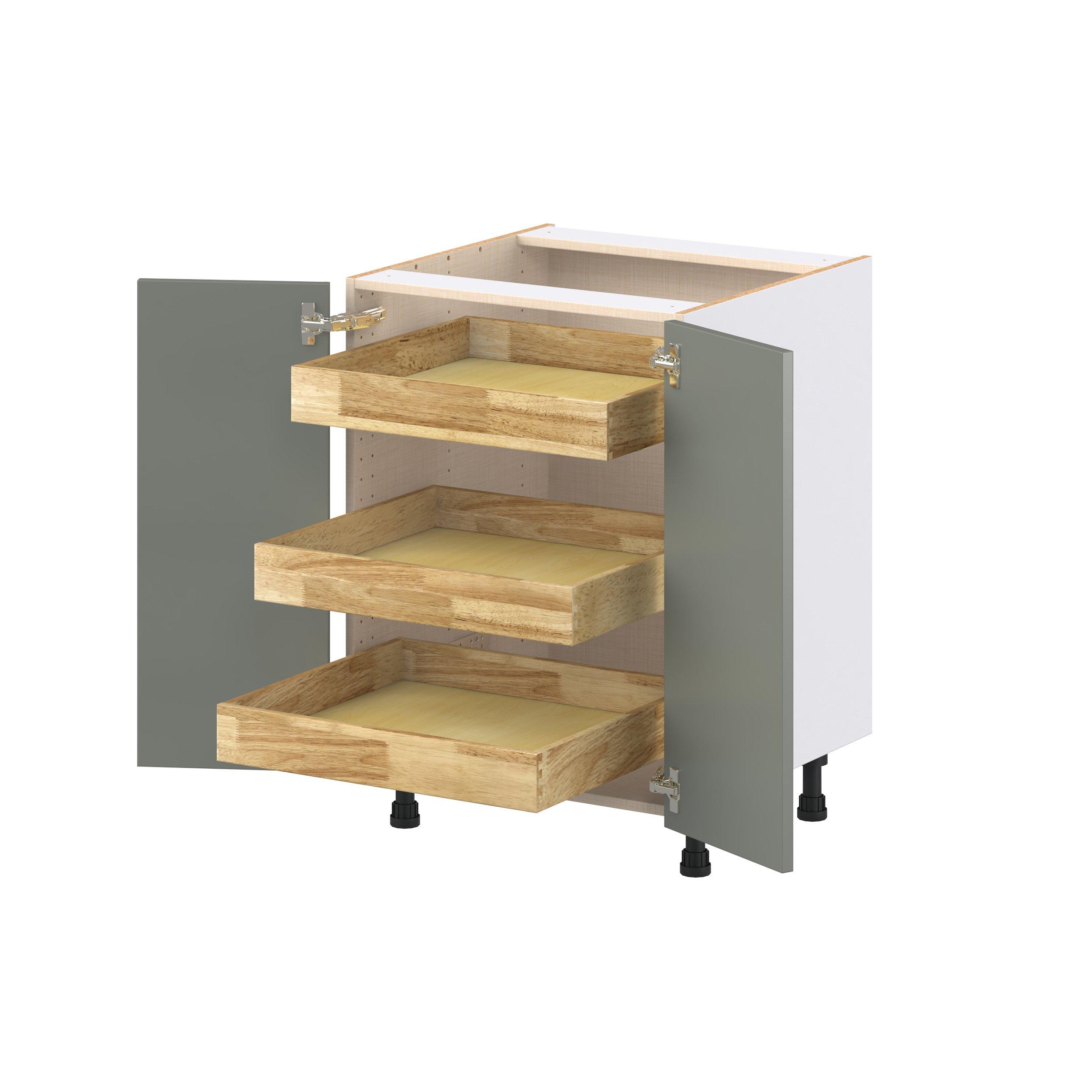 Enjoy a modern twist on a classic with Linden slim shaker cabinets. Available in premium-painted fresh washed linen and earthy moss green finishes, this collection exudes warmth and creates an inviting atmosphere Crafted from one-piece MDF Studio Design Collection Linden 24 in. Painted Moss Green Shallow Base Cabinet with Inner Pull-Out Drawer is designed to resist hairline cracks while the easy-to-clean finish stands up to stains and moisture. Featuring 5-piece doors and dovetail drawer joints, these cabinets offer durability and elegance. This collection combines style with everyday storage solutions.