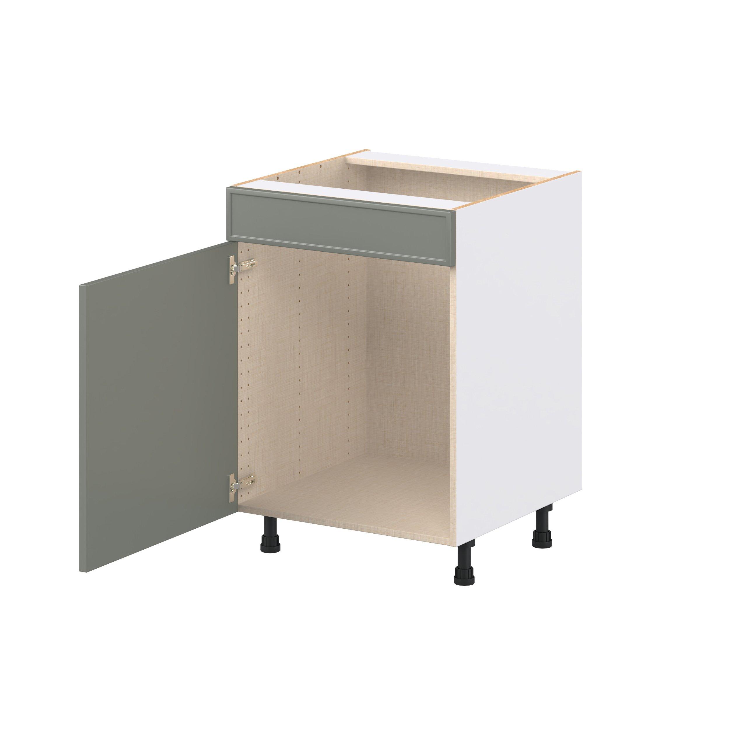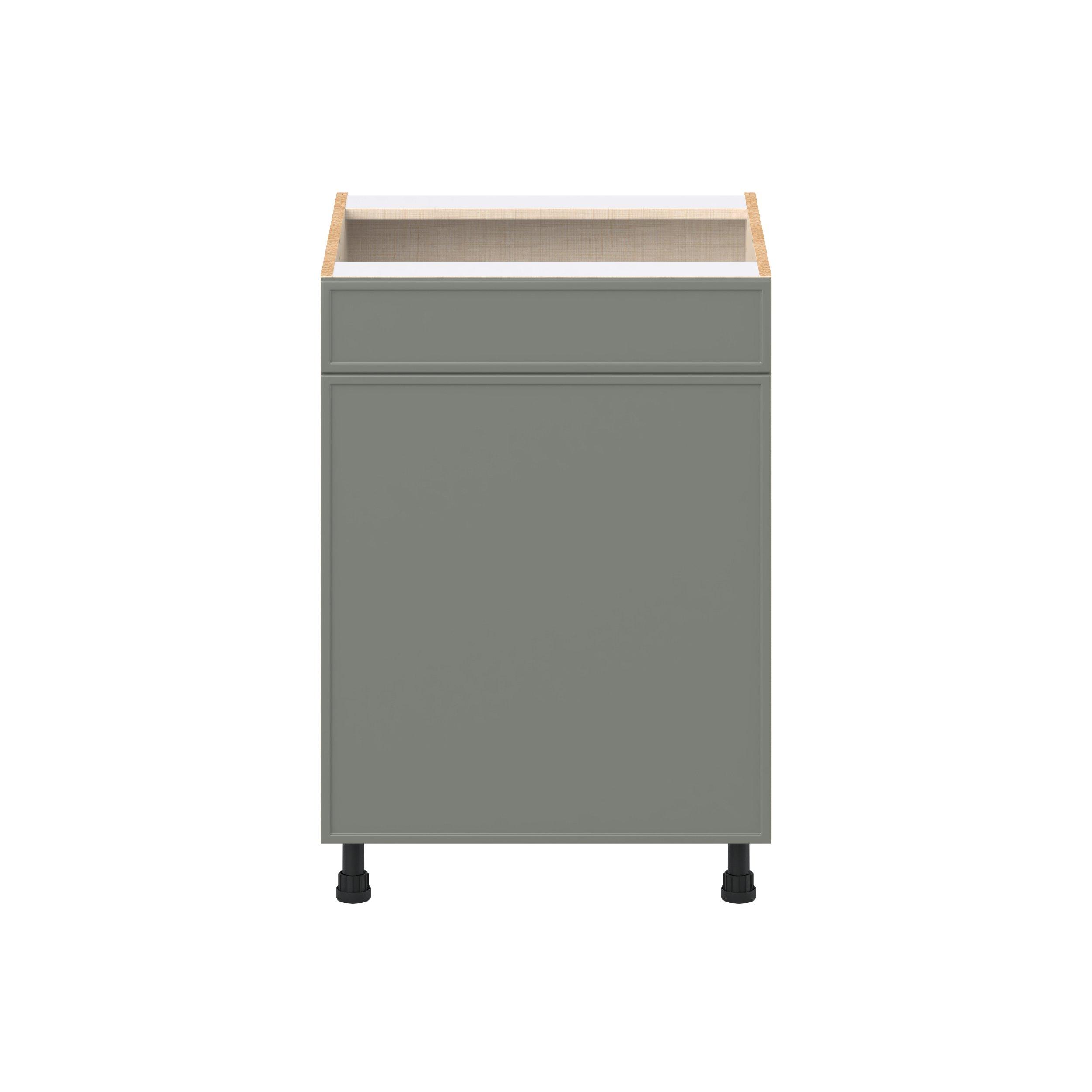 Enjoy a modern twist on a classic with Linden slim shaker cabinets. Available in premium-painted fresh washed linen and earthy moss green finishes, this collection exudes warmth and creates an inviting atmosphere Crafted from one-piece MDF Studio Design Collection Linden 24 in. Painted Moss Green Sink Base Cabinet with False Front is designed to resist hairline cracks while the easy-to-clean finish stands up to stains and moisture. Featuring 5-piece doors and dovetail drawer joints, these cabinets offer durability and elegance. This collection combines style with everyday storage solutions.
