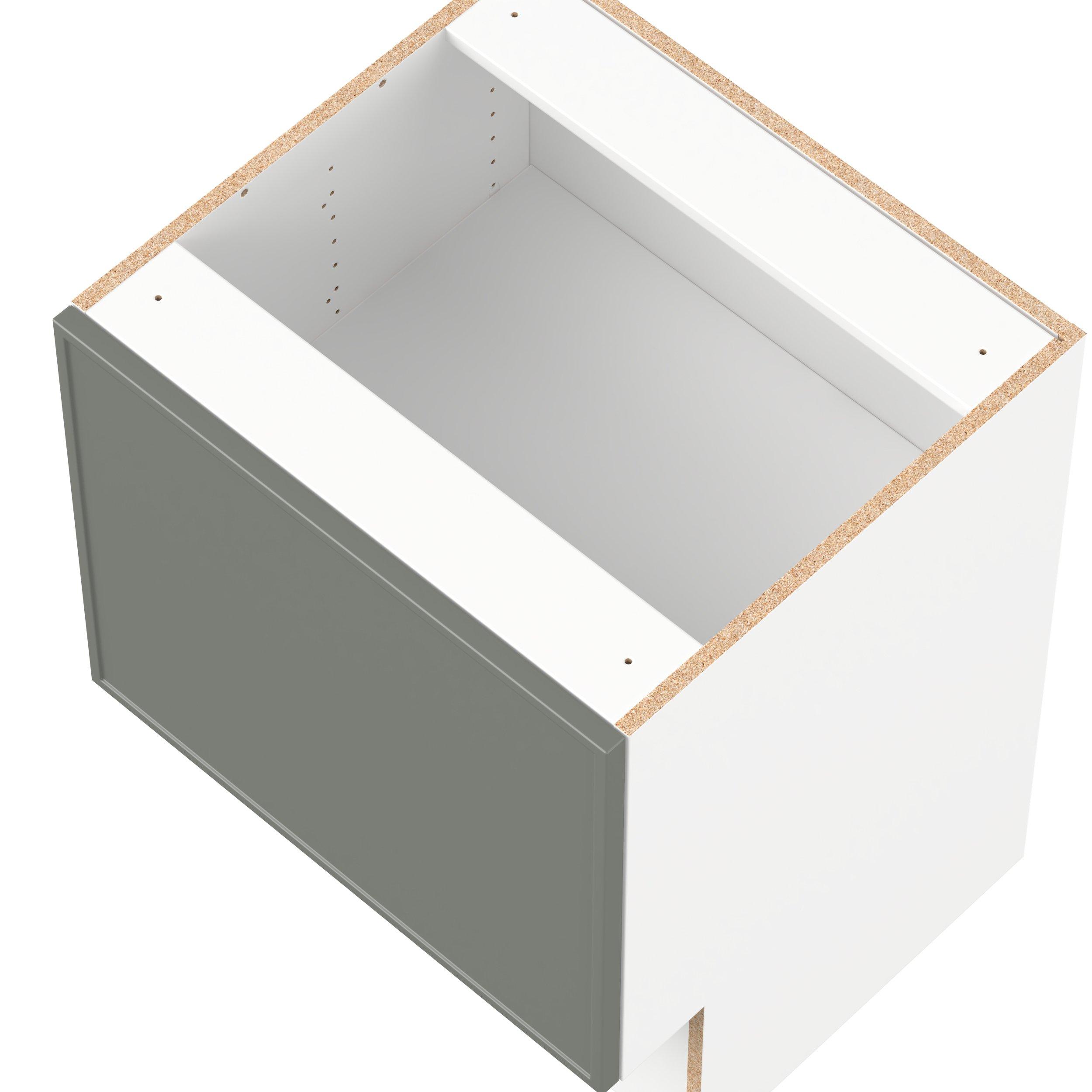 - Frameless cabinet with full-access construction to provide a wider opening.