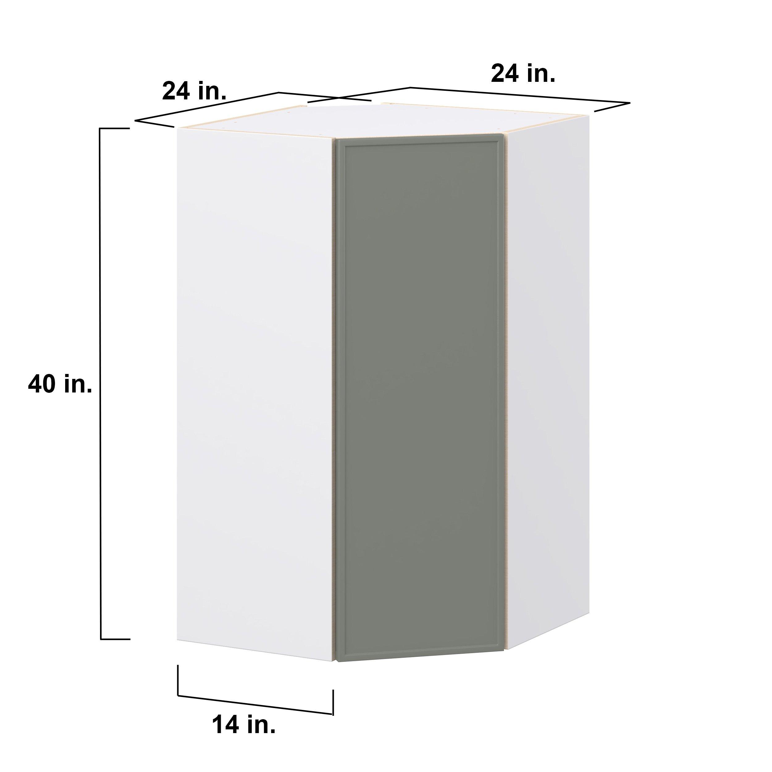 Enjoy a modern twist on a classic with Linden slim shaker cabinets. Available in premium-painted fresh washed linen and earthy moss green finishes, this collection exudes warmth and creates an inviting atmosphere Crafted from one-piece MDF Studio Design Collection Linden 24 in. Painted Moss Green Wall Angle Corner Cabinet is designed to resist hairline cracks while the easy-to-clean finish stands up to stains and moisture. Featuring 5-piece doors and dovetail drawer joints, these cabinets offer durability and elegance. This collection combines style with everyday storage solutions.