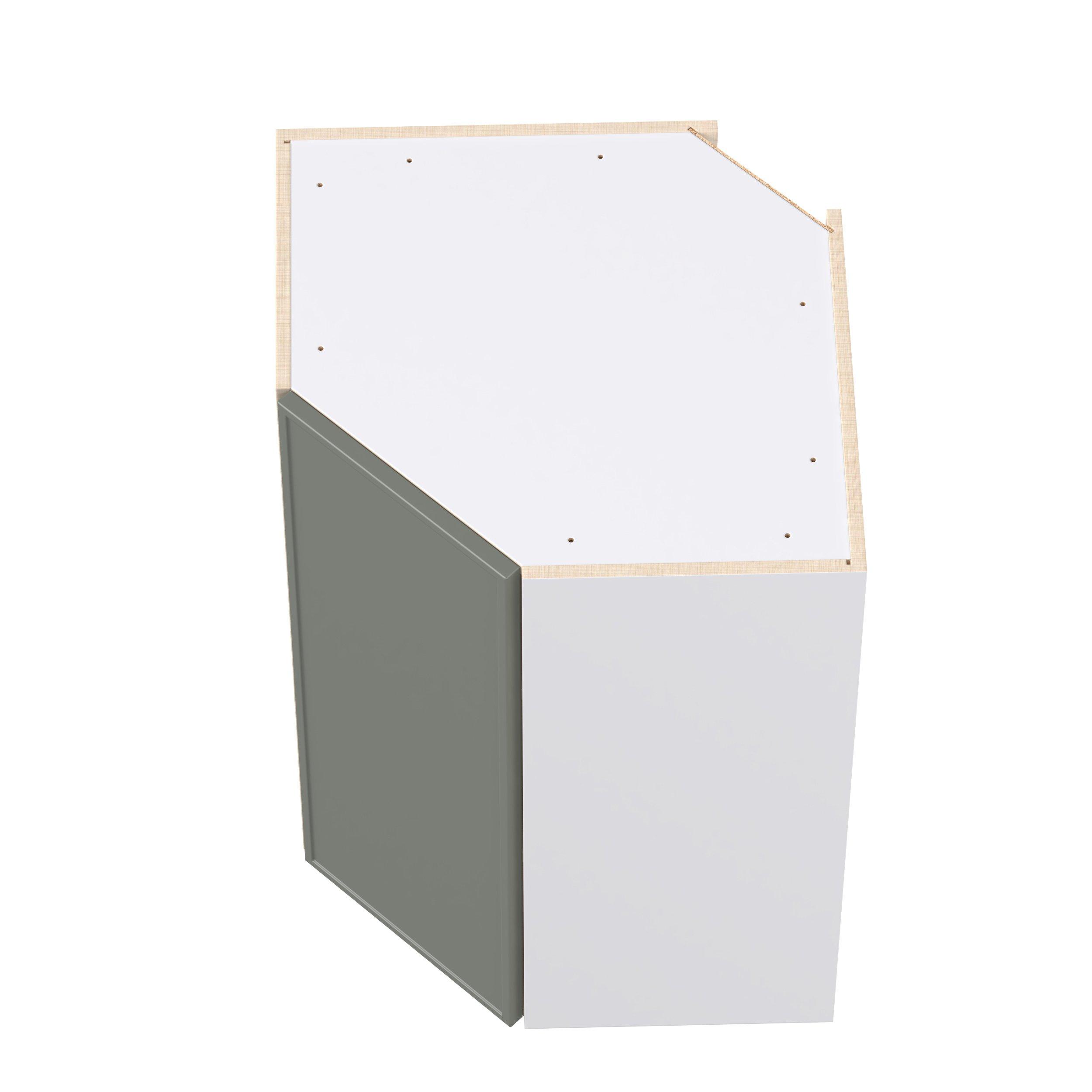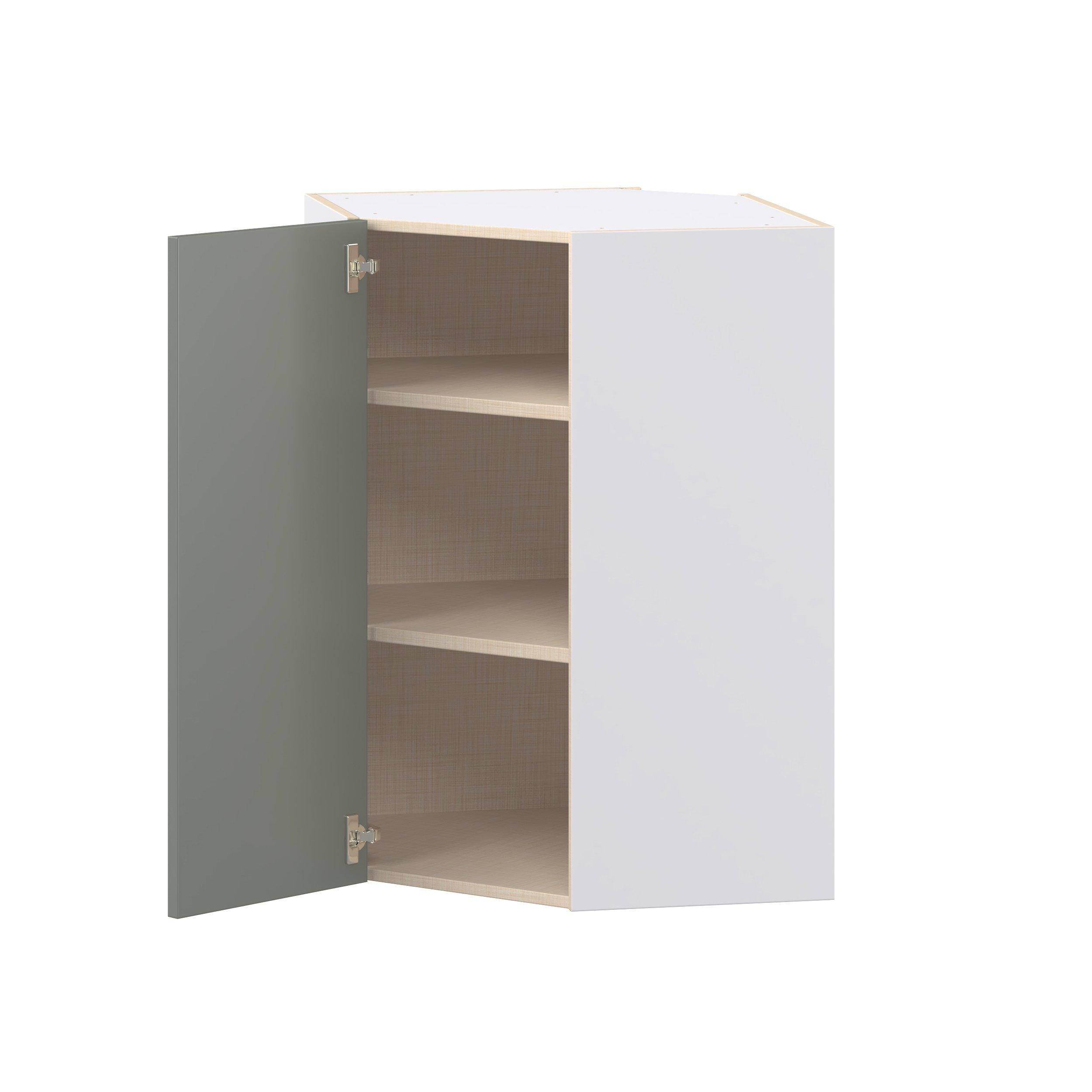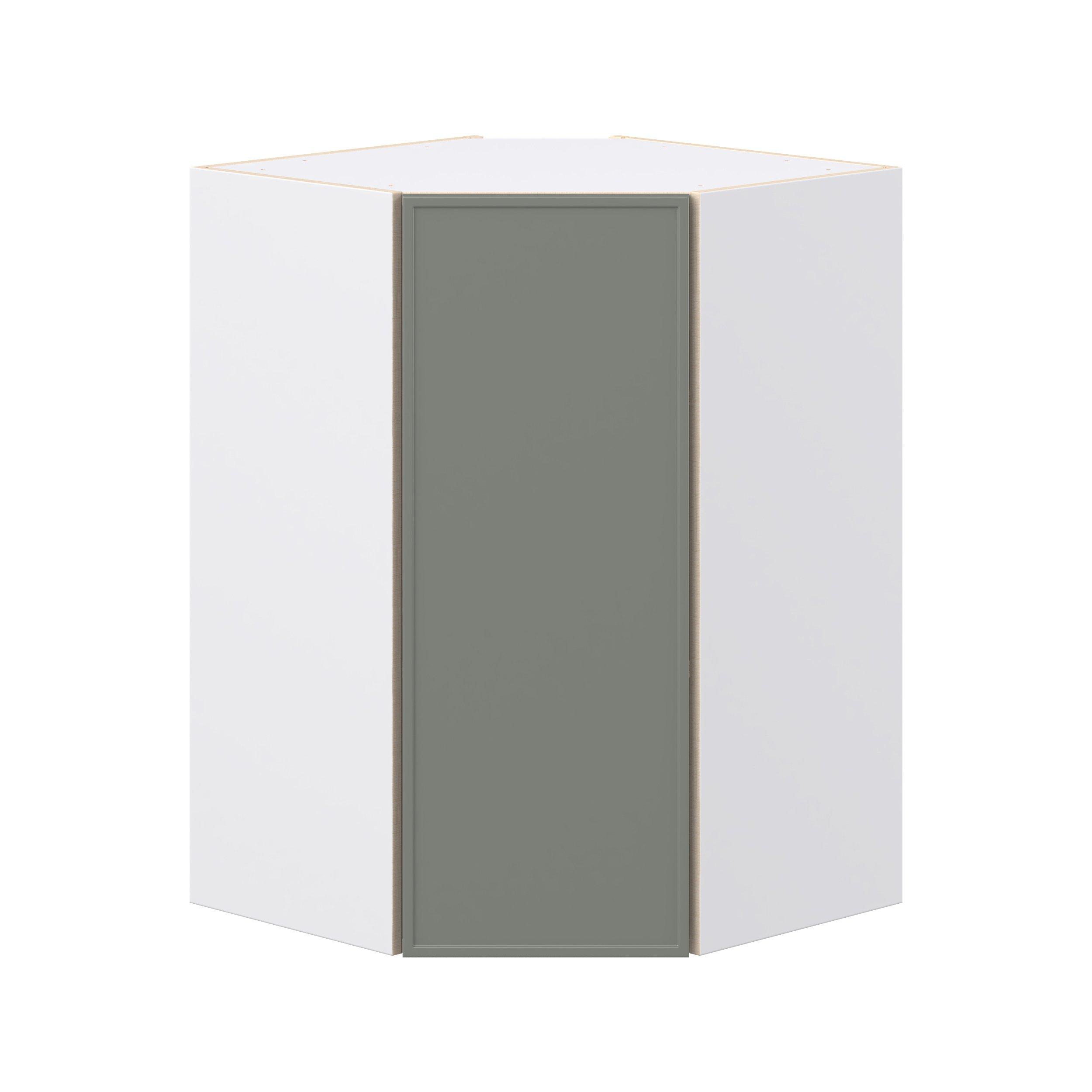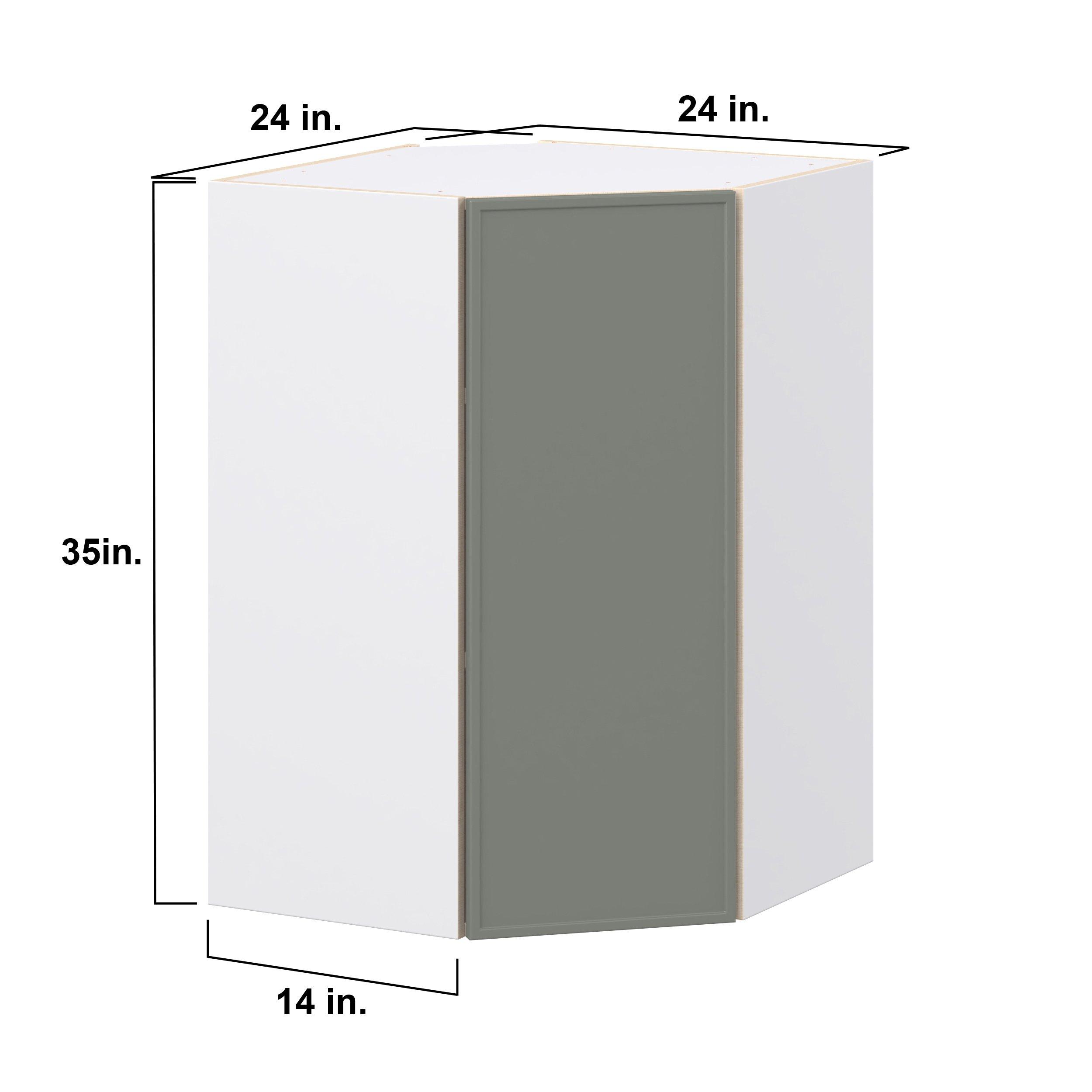 Enjoy a modern twist on a classic with Linden slim shaker cabinets. Available in premium-painted fresh washed linen and earthy moss green finishes, this collection exudes warmth and creates an inviting atmosphere Crafted from one-piece MDF Studio Design Collection Linden 24 in. Painted Moss Green Wall Angle Corner Cabinet is designed to resist hairline cracks while the easy-to-clean finish stands up to stains and moisture. Featuring 5-piece doors and dovetail drawer joints, these cabinets offer durability and elegance. This collection combines style with everyday storage solutions.