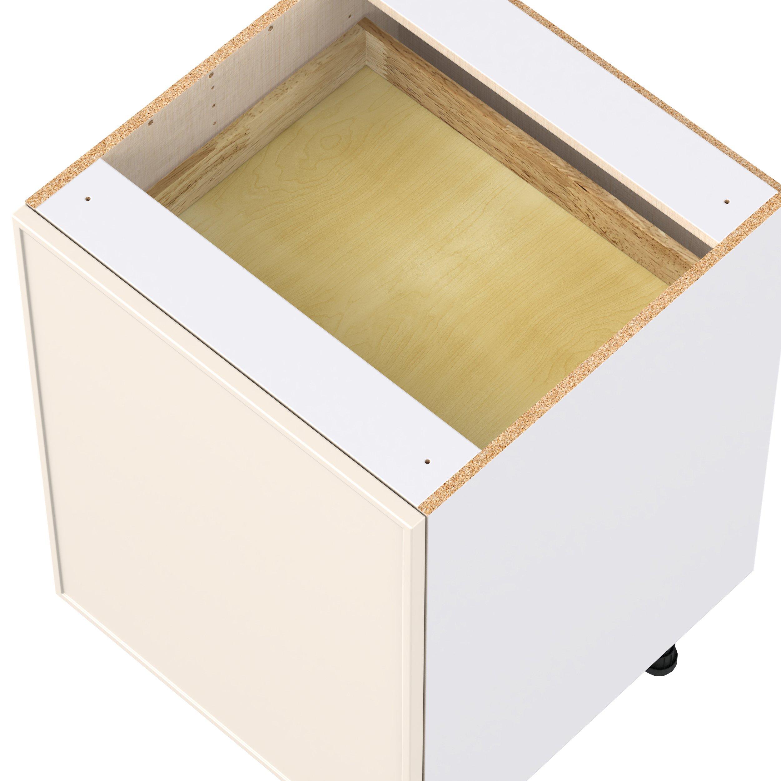ReversibleEnjoy a modern twist on a classic with Linden slim shaker cabinets. Available in premium-painted fresh washed linen and earthy moss green finishes, this collection exudes warmth and creates an inviting atmosphere Crafted from one-piece MDF Studio Design Collection Linden 24 in. Painted Washed Linen Base Cabinet with Inner Pull-Out Drawer is designed to resist hairline cracks while the easy-to-clean finish stands up to stains and moisture. Featuring 5-piece doors and dovetail drawer joints, these cabinets offer durability and elegance. This collection combines style with everyday storage solutions.