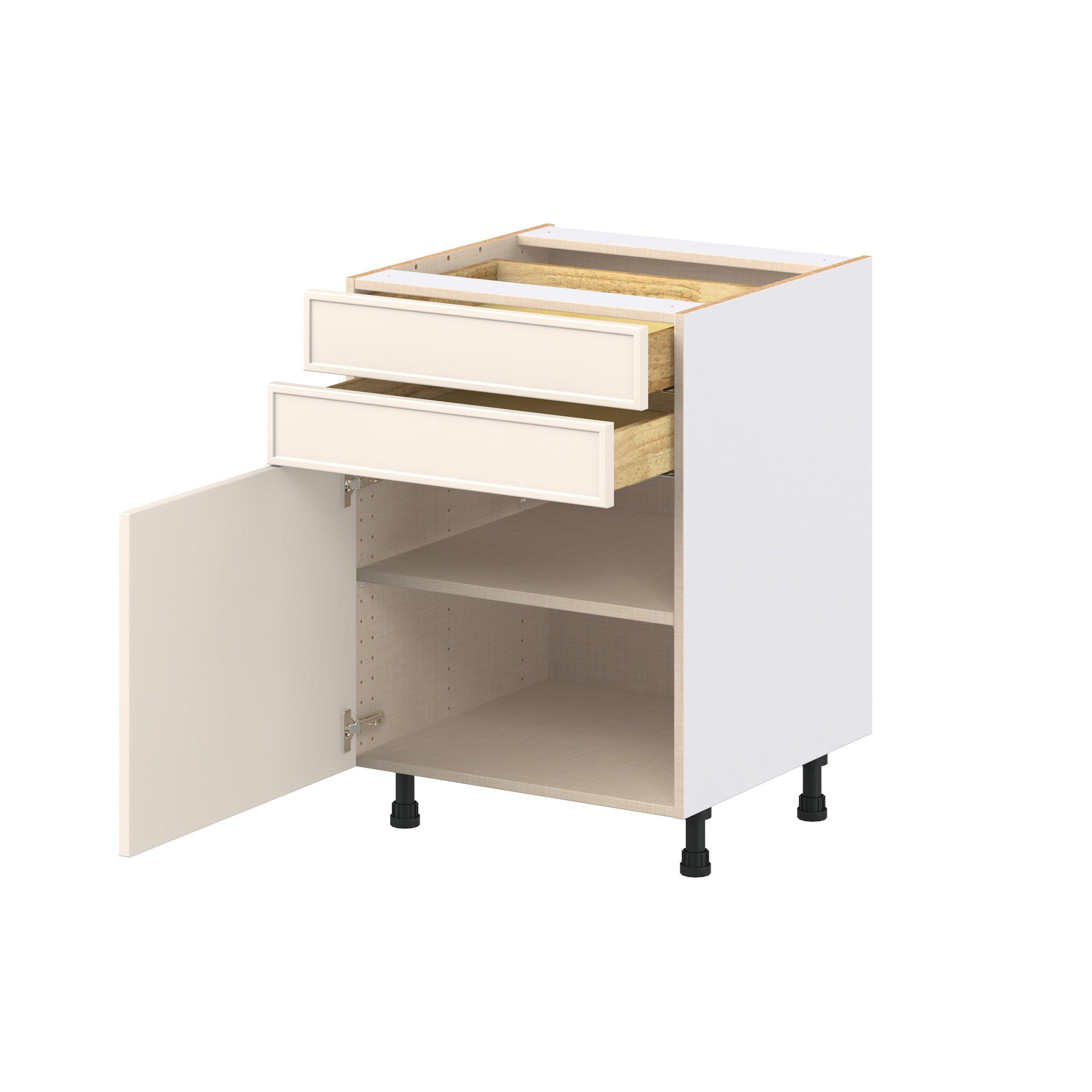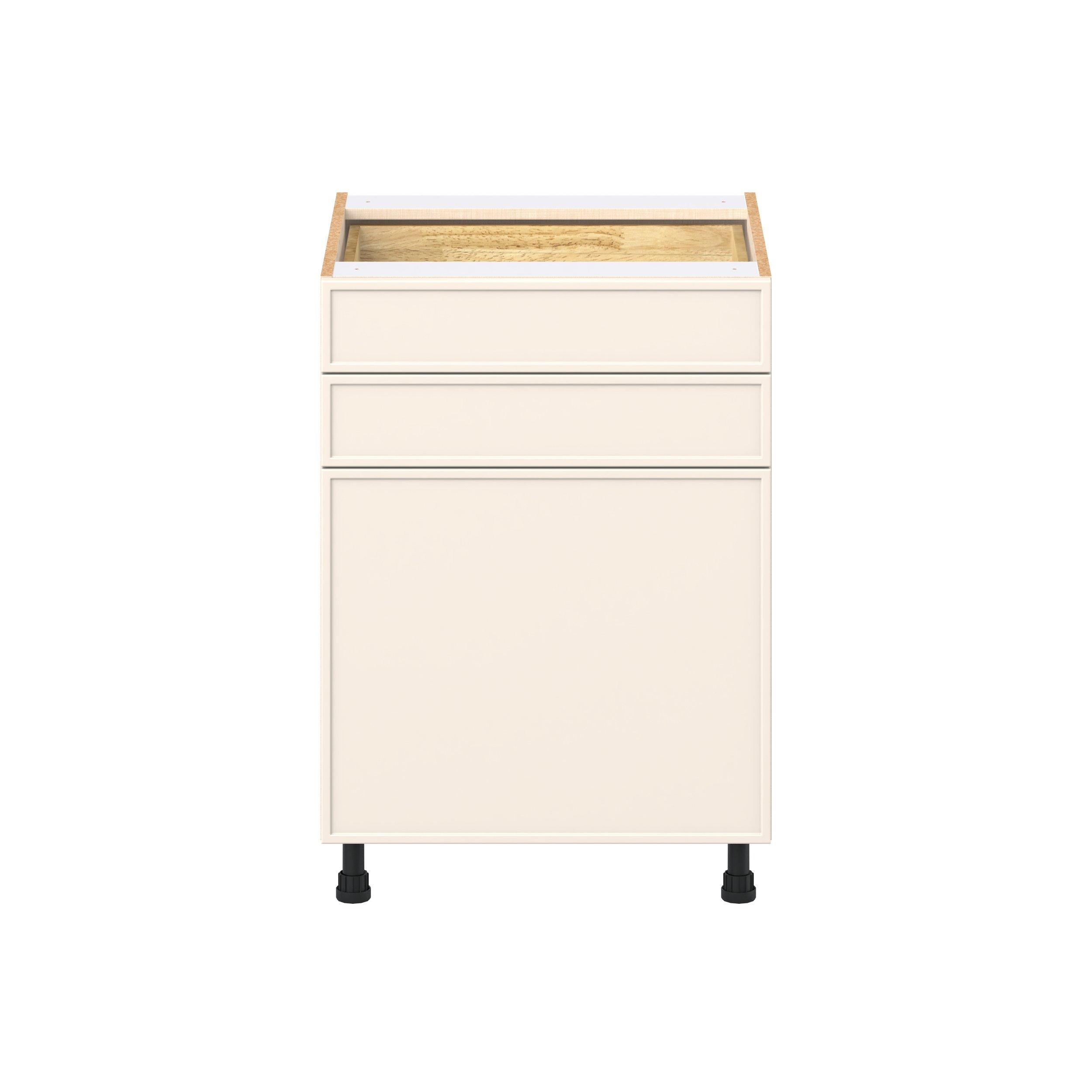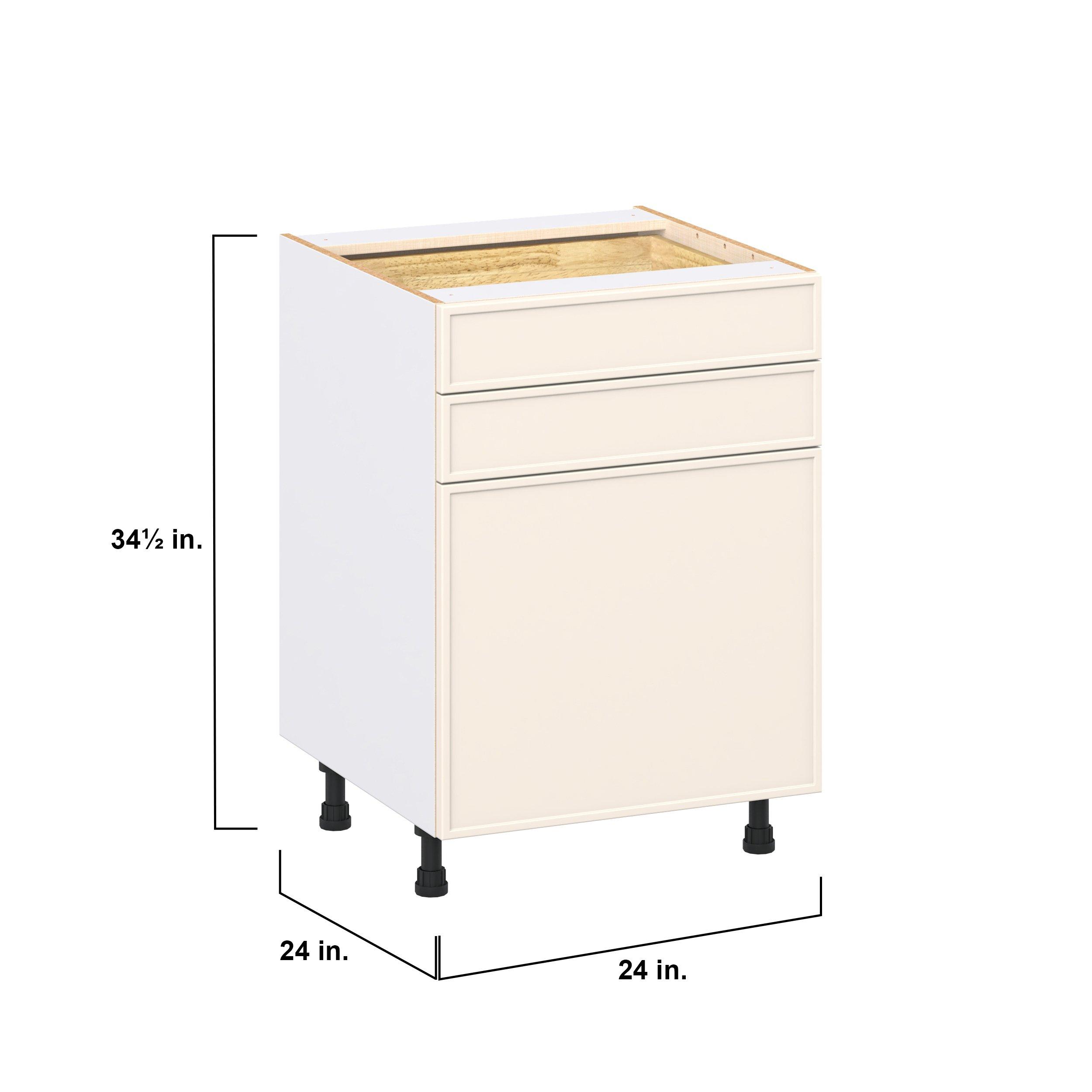 Enjoy a modern twist on a classic with Linden slim shaker cabinets. Available in premium-painted fresh washed linen and earthy moss green finishes, this collection exudes warmth and creates an inviting atmosphere Crafted from one-piece MDF Studio Design Collection Linden 24 in. Painted Washed Linen Door and Drawer Base Cabinet is designed to resist hairline cracks while the easy-to-clean finish stands up to stains and moisture. Featuring 5-piece doors and dovetail drawer joints, these cabinets offer durability and elegance. This collection combines style with everyday storage solutions.