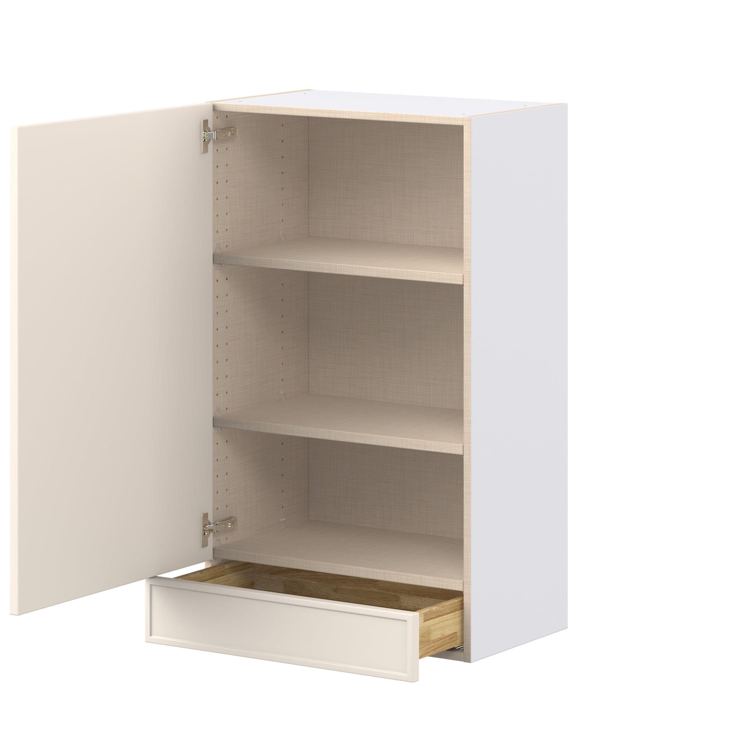 Enjoy a modern twist on a classic with Linden slim shaker cabinets. Available in premium-painted fresh washed linen and earthy moss green finishes, this collection exudes warmth and creates an inviting atmosphere Crafted from one-piece MDF Studio Design Collection Linden 24 in. Painted Washed Linen Door and Drawer Wall Cabinet is designed to resist hairline cracks while the easy-to-clean finish stands up to stains and moisture. Featuring 5-piece doors and dovetail drawer joints, these cabinets offer durability and elegance. This collection combines style with everyday storage solutions.