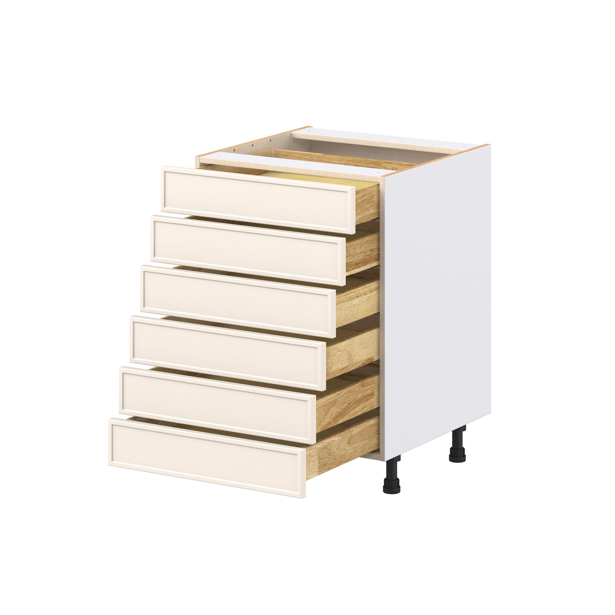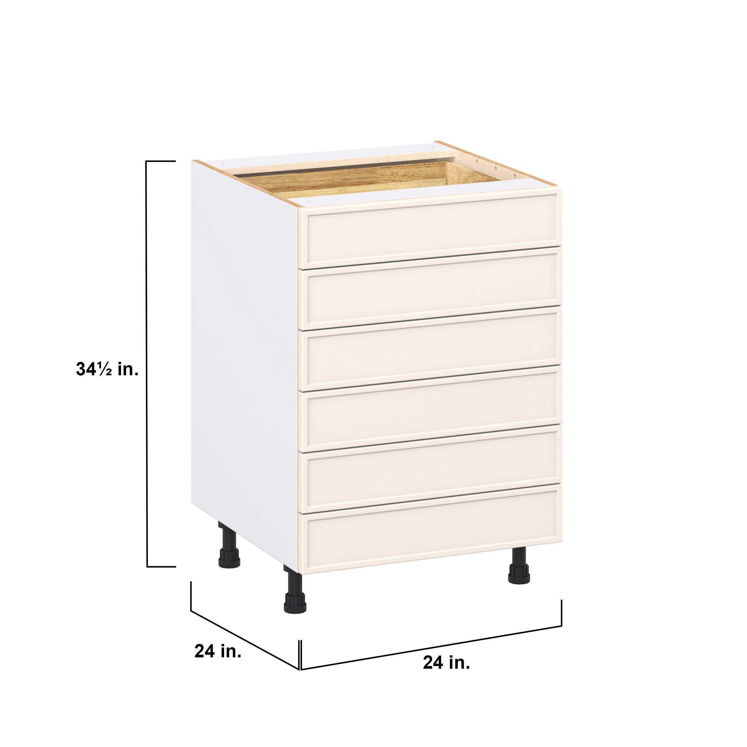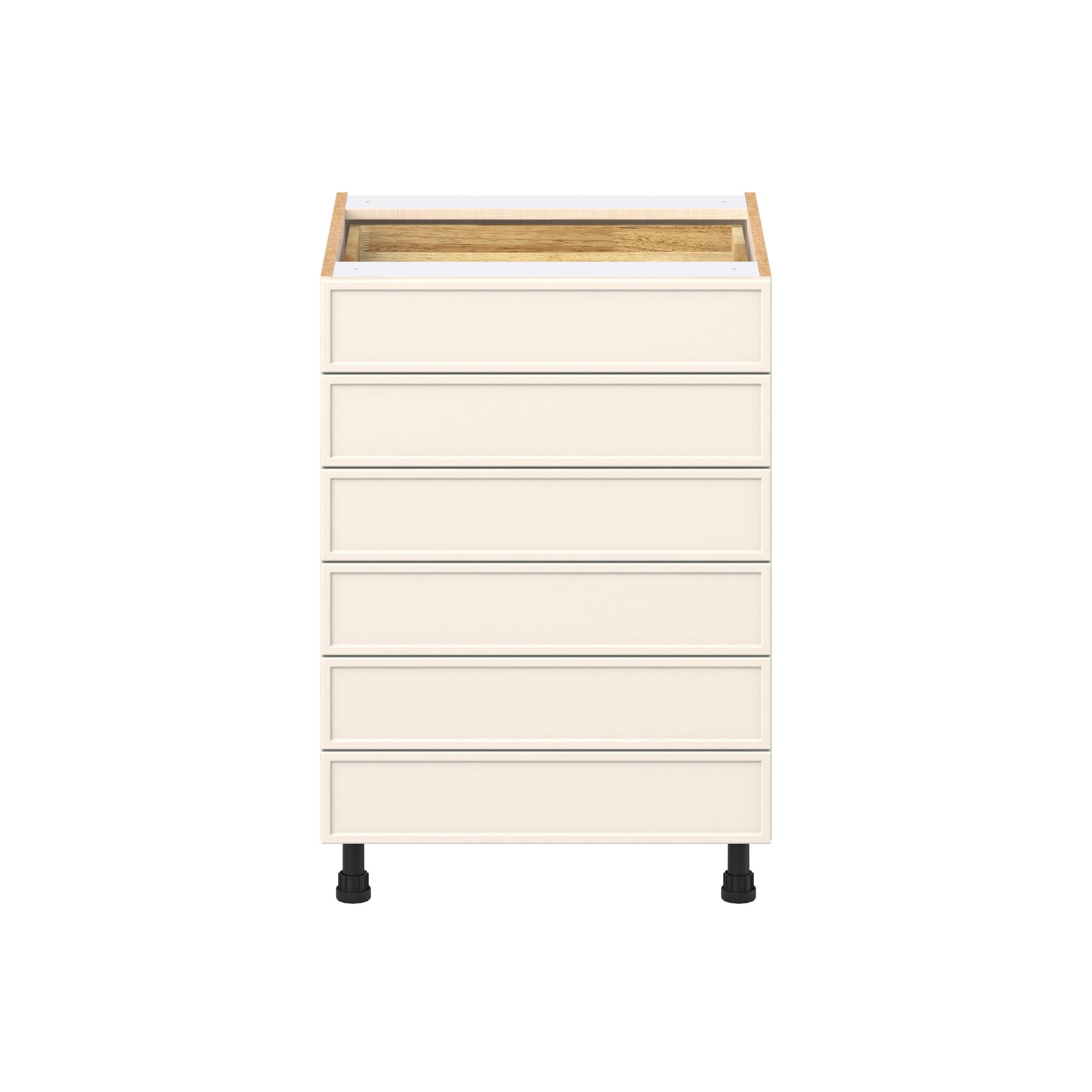 Enjoy a modern twist on a classic with Linden slim shaker cabinets. Available in premium-painted fresh washed linen and earthy moss green finishes, this collection exudes warmth and creates an inviting atmosphere Crafted from one-piece MDF Studio Design Collection Linden 24 in. Painted Washed Linen Drawer Base Cabinet is designed to resist hairline cracks while the easy-to-clean finish stands up to stains and moisture. Featuring 5-piece doors and dovetail drawer joints, these cabinets offer durability and elegance. This collection combines style with everyday storage solutions.