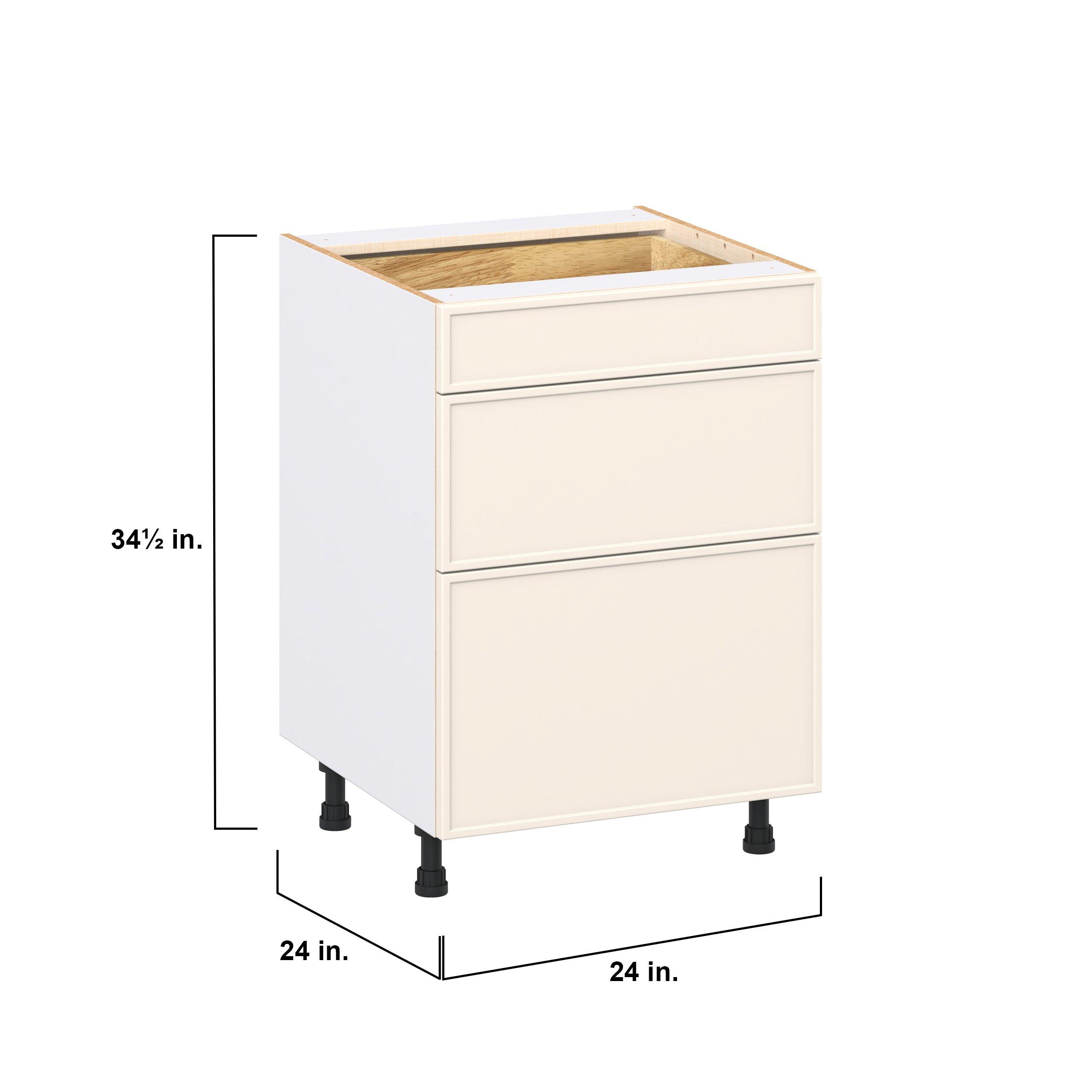 Enjoy a modern twist on a classic with Linden slim shaker cabinets. Available in premium-painted fresh washed linen and earthy moss green finishes, this collection exudes warmth and creates an inviting atmosphere Crafted from one-piece MDF Studio Design Collection Linden 24 in. Painted Washed Linen Drawer Base Cabinet is designed to resist hairline cracks while the easy-to-clean finish stands up to stains and moisture. Featuring 5-piece doors and dovetail drawer joints, these cabinets offer durability and elegance. This collection combines style with everyday storage solutions.