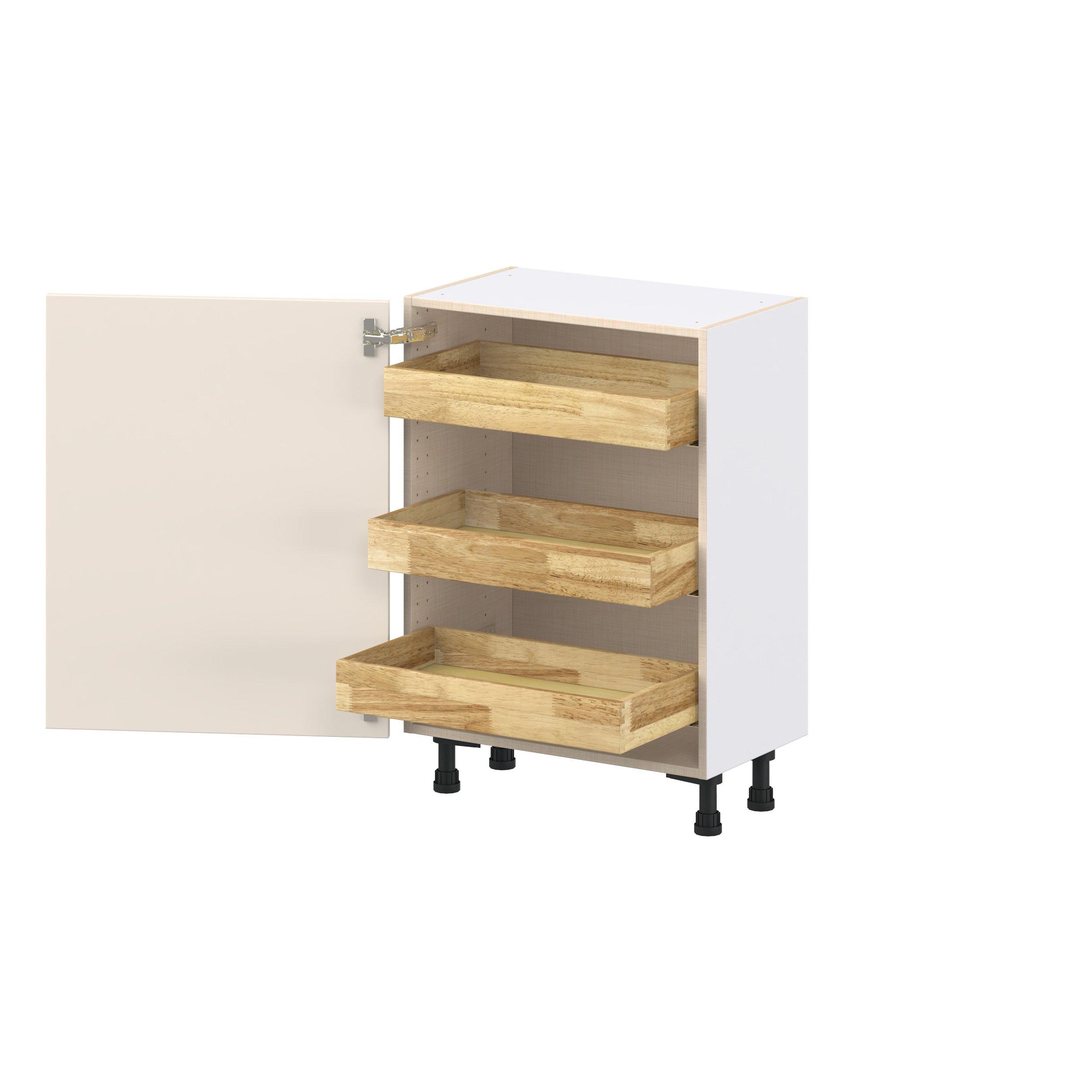 Enjoy a modern twist on a classic with Linden slim shaker cabinets. Available in premium-painted fresh washed linen and earthy moss green finishes, this collection exudes warmth and creates an inviting atmosphere Crafted from one-piece MDF Studio Design Collection Linden 24 in. Painted Washed Linen Shallow Base Cabinet with Inner Pull-Out Drawer is designed to resist hairline cracks while the easy-to-clean finish stands up to stains and moisture. Featuring 5-piece doors and dovetail drawer joints, these cabinets offer durability and elegance. This collection combines style with everyday storage solutions.