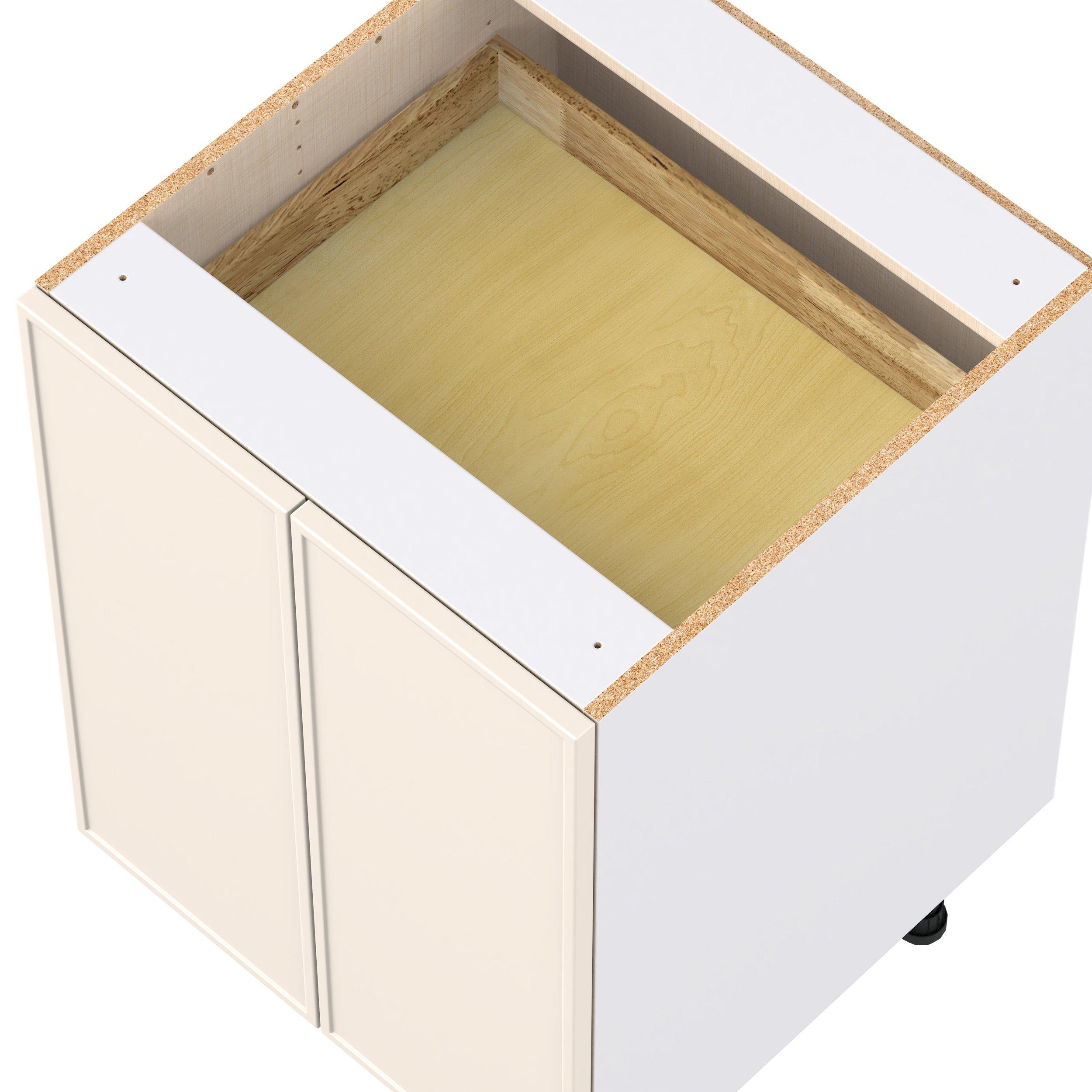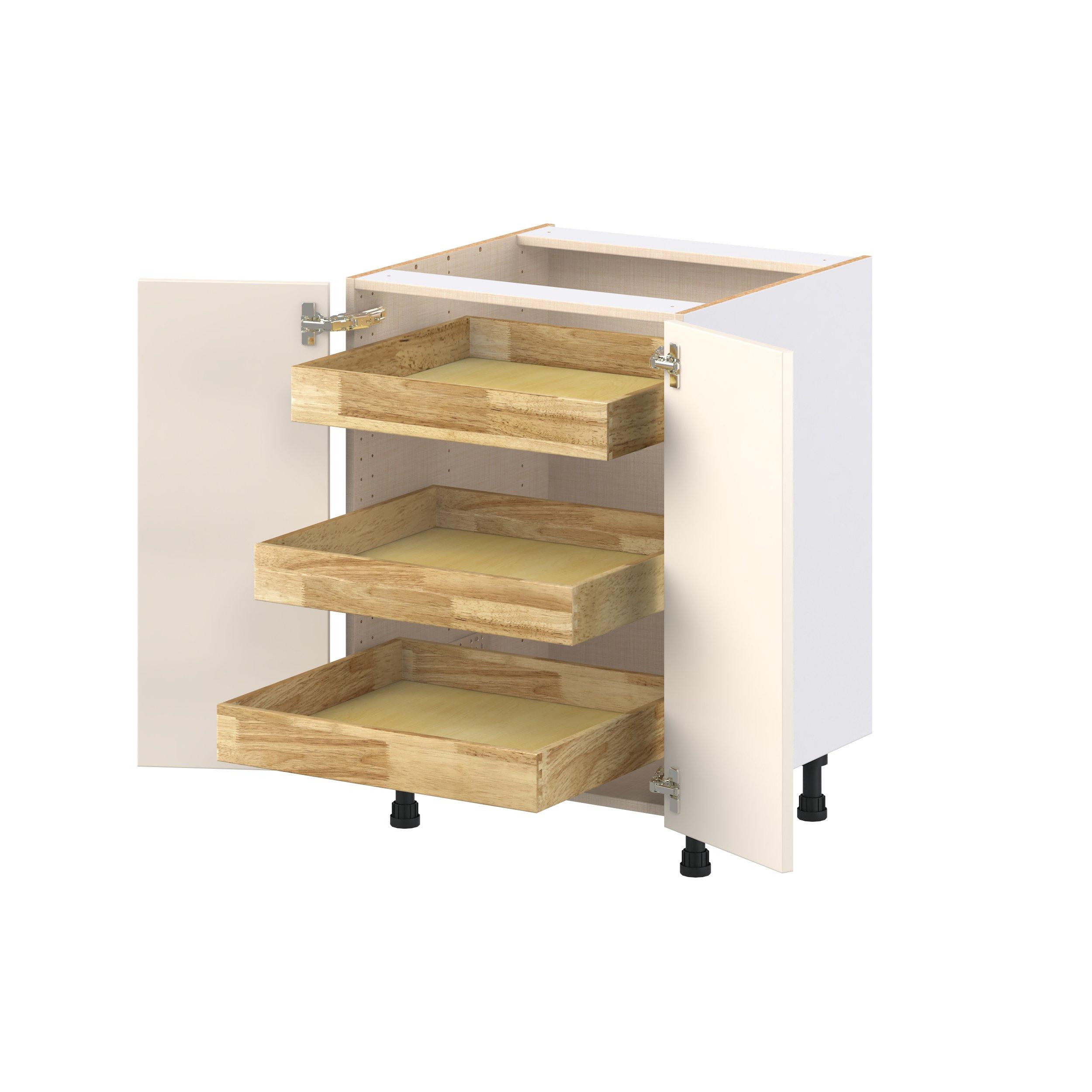 Enjoy a modern twist on a classic with Linden slim shaker cabinets. Available in premium-painted fresh washed linen and earthy moss green finishes, this collection exudes warmth and creates an inviting atmosphere Crafted from one-piece MDF Studio Design Collection Linden 24 in. Painted Washed Linen Shallow Base Cabinet with Inner Pull-Out Drawer is designed to resist hairline cracks while the easy-to-clean finish stands up to stains and moisture. Featuring 5-piece doors and dovetail drawer joints, these cabinets offer durability and elegance. This collection combines style with everyday storage solutions.