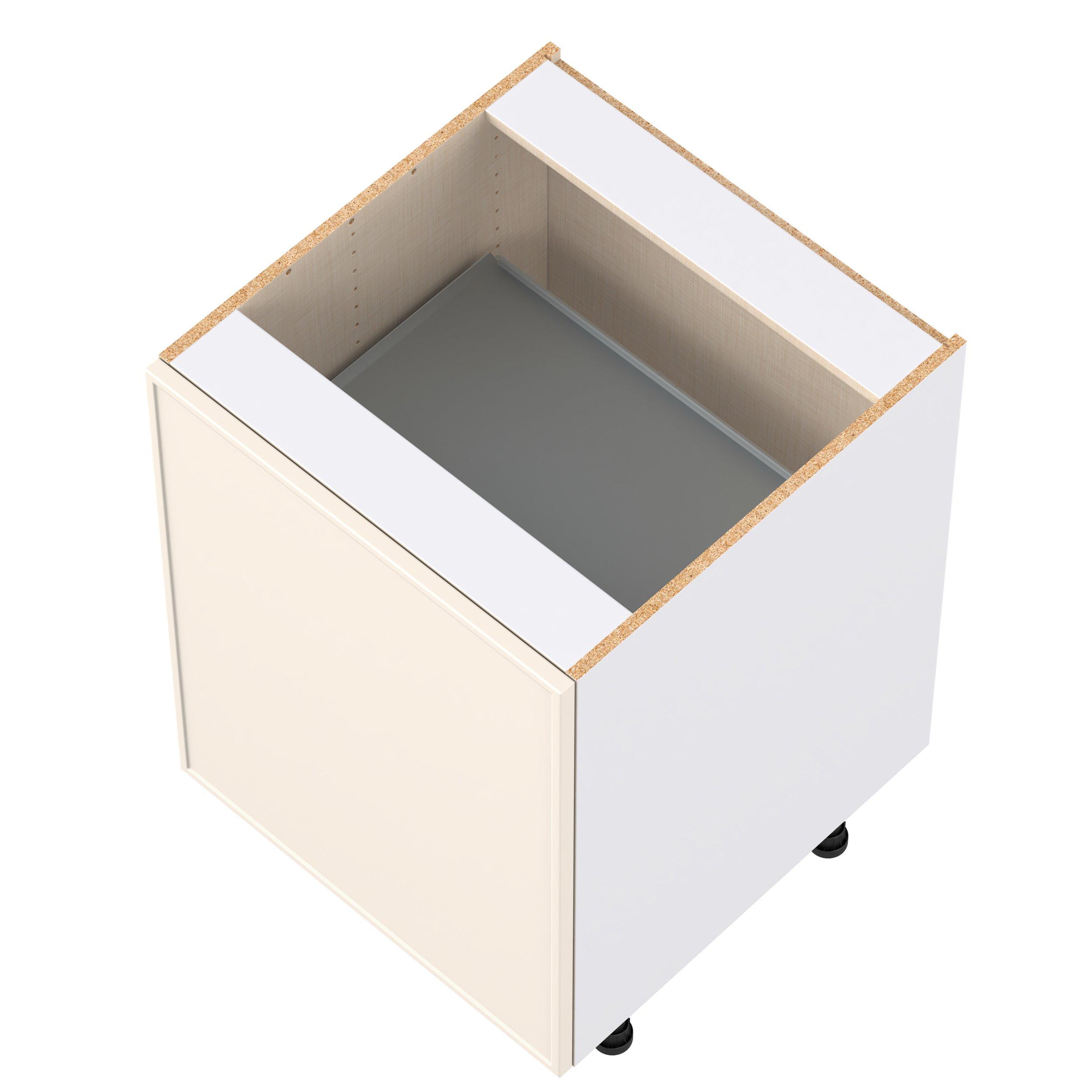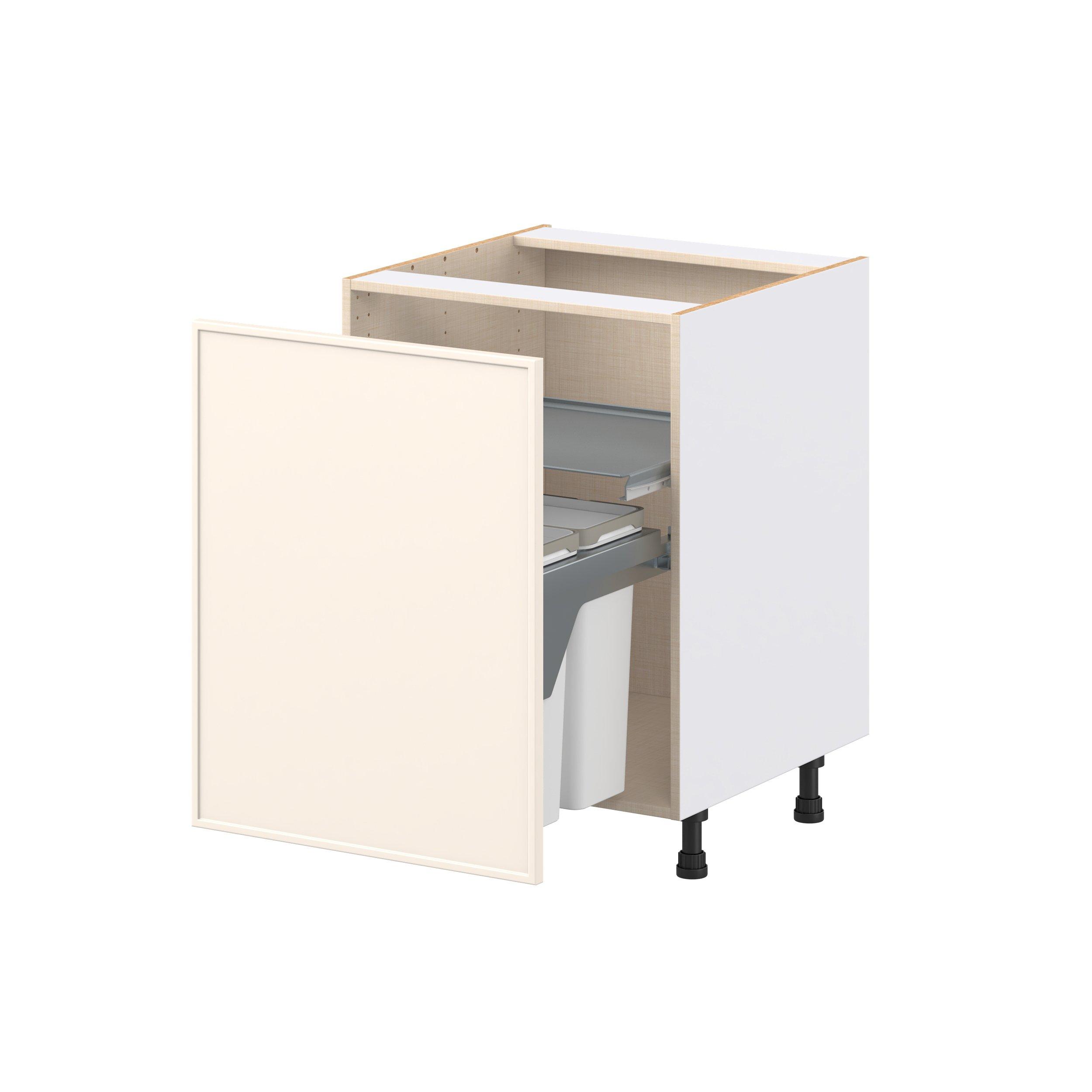 Enjoy a modern twist on a classic with Linden slim shaker cabinets. Available in premium-painted fresh washed linen and earthy moss green finishes, this collection exudes warmth and creates an inviting atmosphere Crafted from one-piece MDF Studio Design Collection Linden 24 in. Painted Washed Linen Trash Can Pull-Out Base Cabinet is designed to resist hairline cracks while the easy-to-clean finish stands up to stains and moisture. Featuring 5-piece doors and dovetail drawer joints, these cabinets offer durability and elegance. This collection combines style with everyday storage solutions.