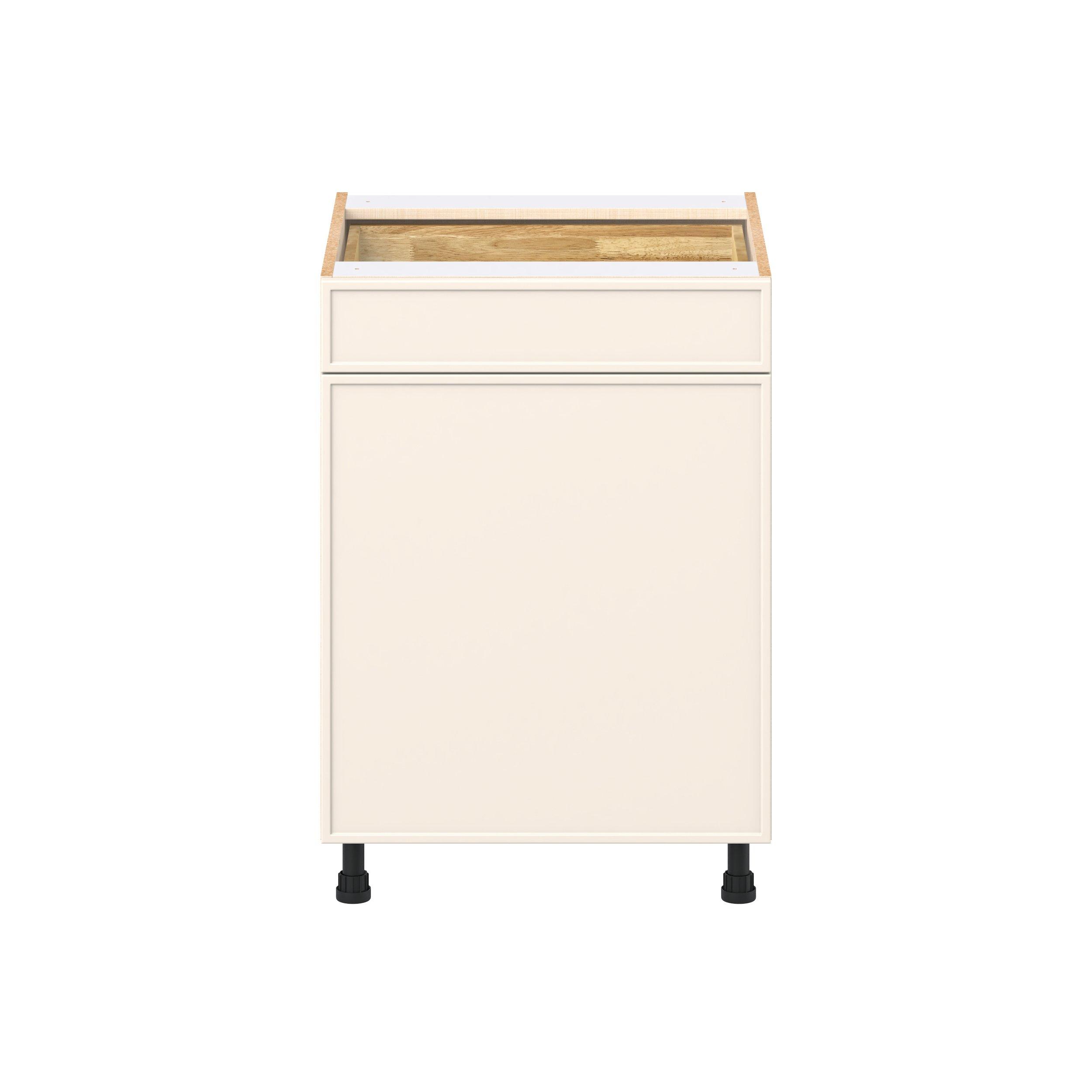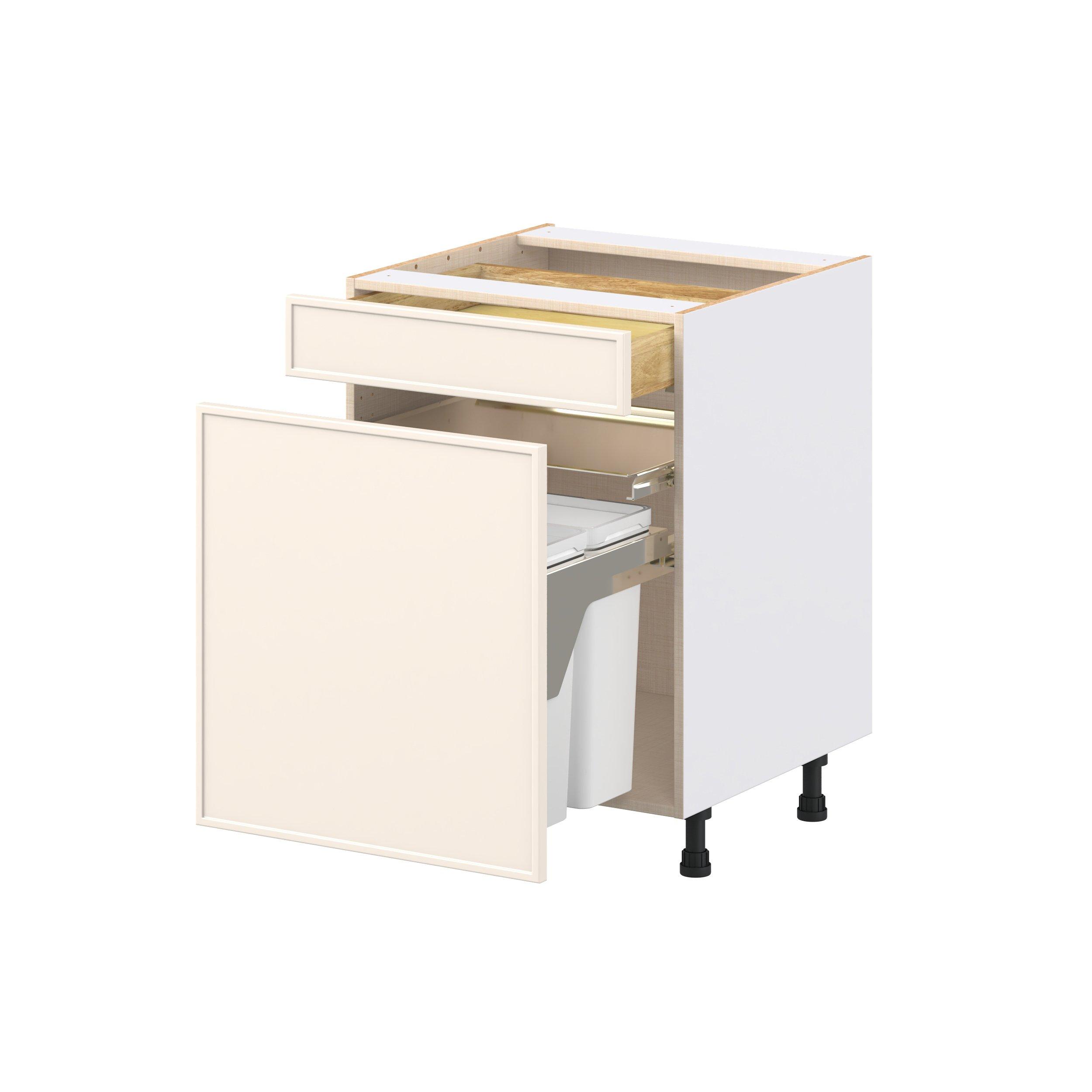 Enjoy a modern twist on a classic with Linden slim shaker cabinets. Available in premium-painted fresh washed linen and earthy moss green finishes, this collection exudes warmth and creates an inviting atmosphere Crafted from one-piece MDF Studio Design Collection Linden 24 in. Painted Washed Linen Trash Can Pull-Out Base Cabinet is designed to resist hairline cracks while the easy-to-clean finish stands up to stains and moisture. Featuring 5-piece doors and dovetail drawer joints, these cabinets offer durability and elegance. This collection combines style with everyday storage solutions.