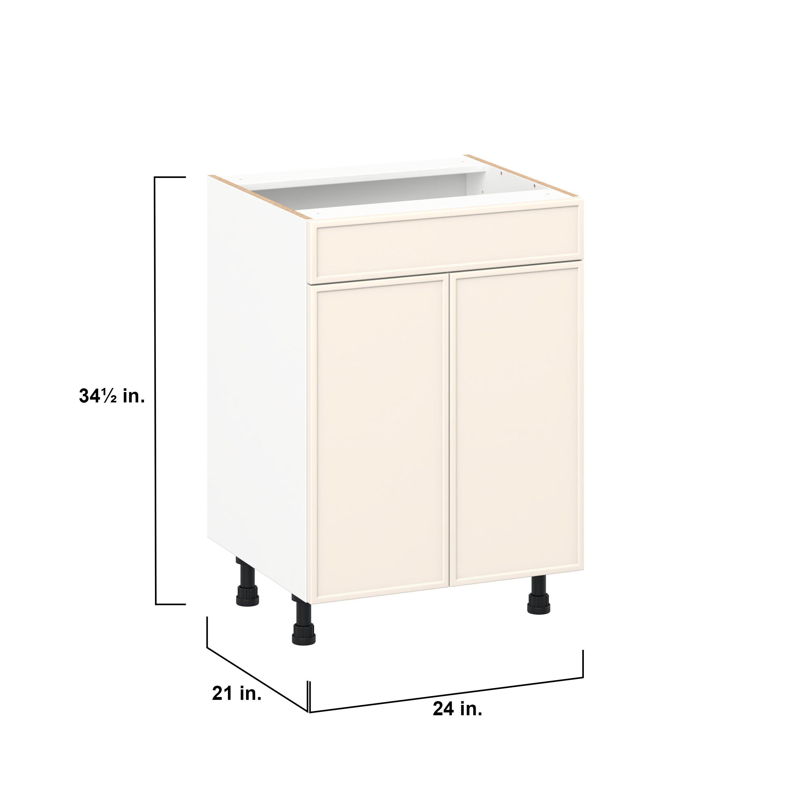 Enjoy a modern twist on a classic with Linden slim shaker cabinets. Available in premium-painted fresh washed linen and earthy moss green finishes, this collection exudes warmth and creates an inviting atmosphere Crafted from one-piece MDF Studio Design Collection Linden 24 in. Painted Washed Linen Vanity Sink Base Cabinet with False Front is designed to resist hairline cracks while the easy-to-clean finish stands up to stains and moisture. Featuring 5-piece doors and dovetail drawer joints, these cabinets offer durability and elegance. This collection combines style with everyday storage solutions.
