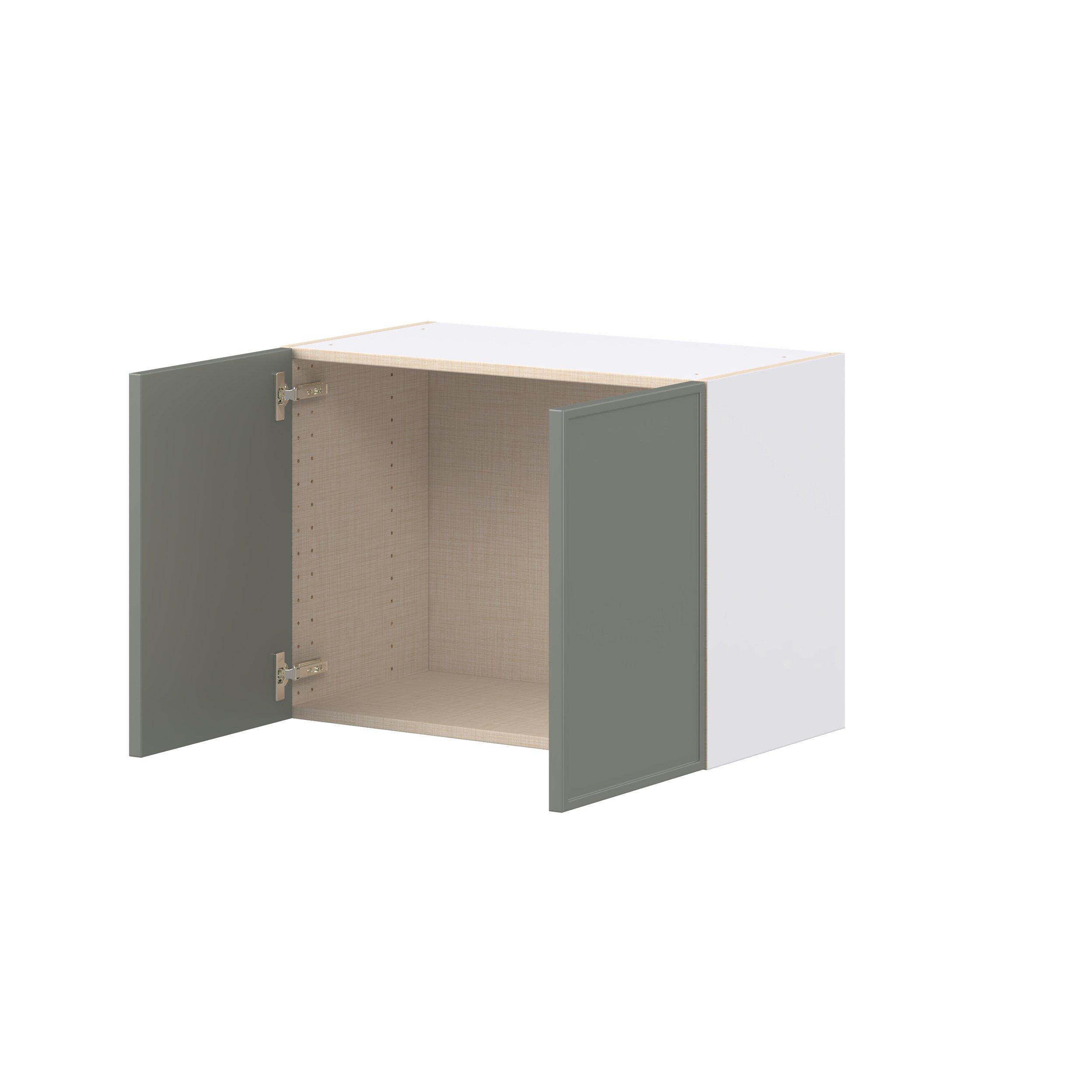 Enjoy a modern twist on a classic with Linden slim shaker cabinets. Available in premium-painted fresh washed linen and earthy moss green finishes, this collection exudes warmth and creates an inviting atmosphere Crafted from one-piece MDF Studio Design Collection Linden 27 in. Painted Moss Green Bridge Wall Cabinet is designed to resist hairline cracks while the easy-to-clean finish stands up to stains and moisture. Featuring 5-piece doors and dovetail drawer joints, these cabinets offer durability and elegance. This collection combines style with everyday storage solutions.